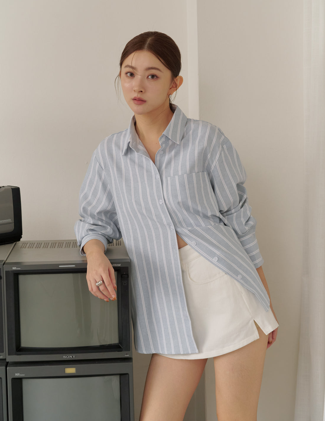 Nikki Pinstripe Oversized Shirt in Grey Blue
