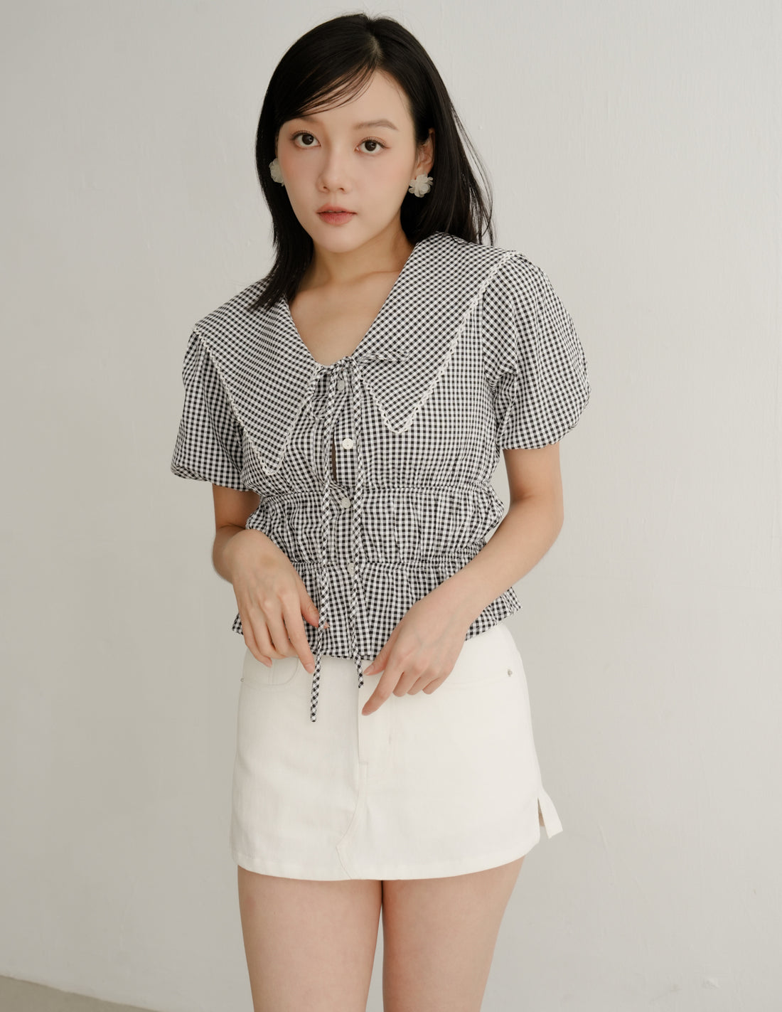 Aveline Peterpan Collar Blouse in Gingham