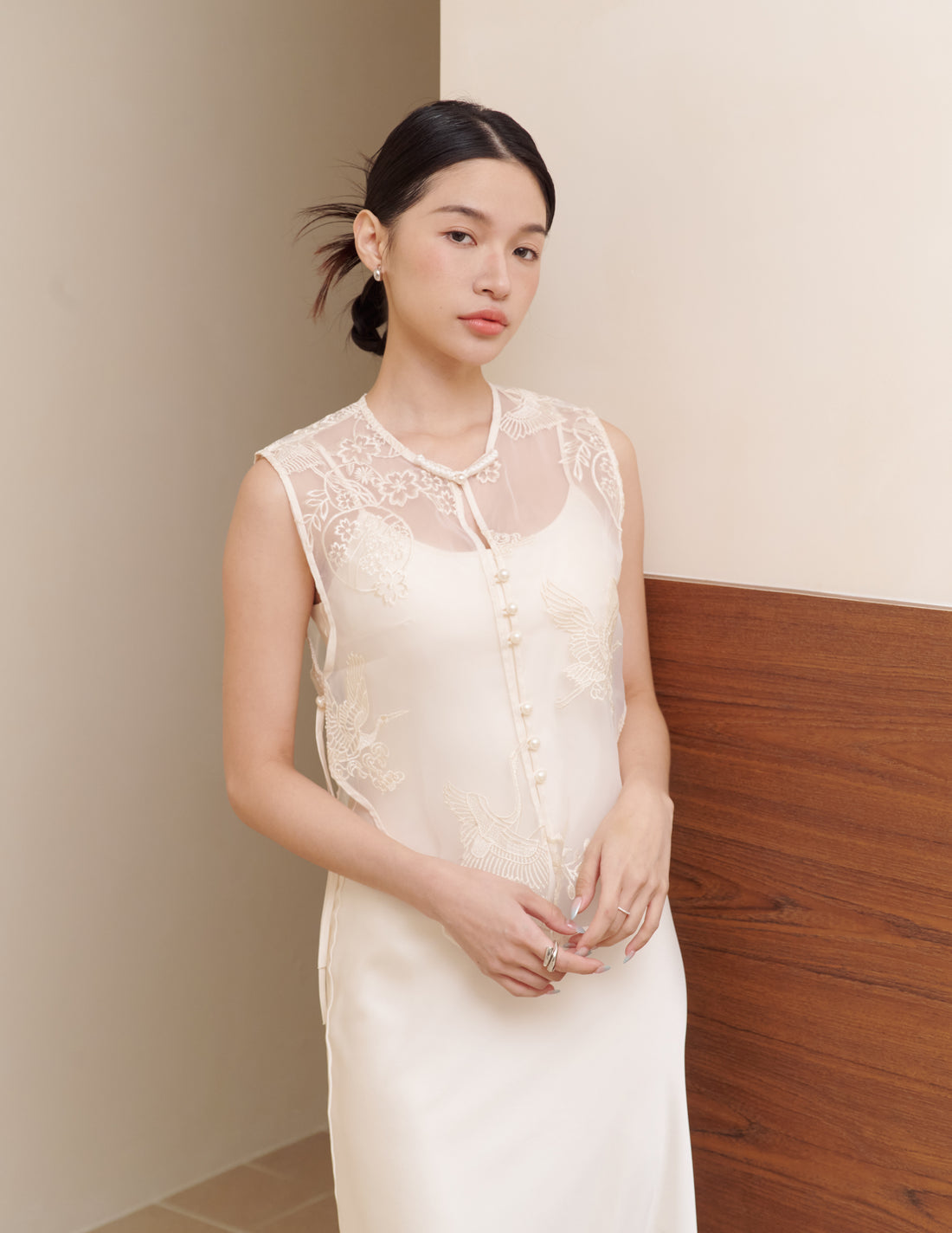 Yun Embroidered Overlay Top in Eternal Crane