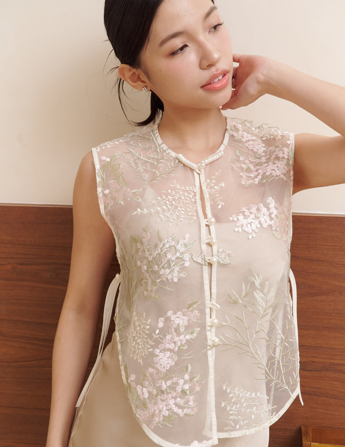 Qian Embroidered Overlay Top in Botanique