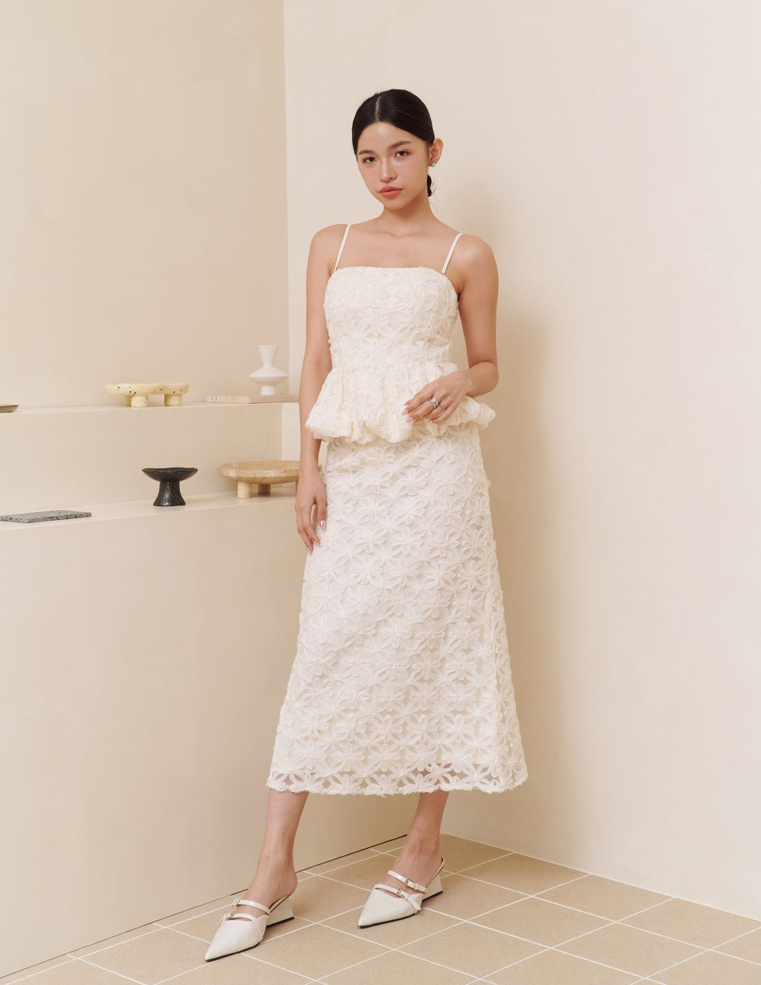 Everly Petal Midi Skirt in Ivory