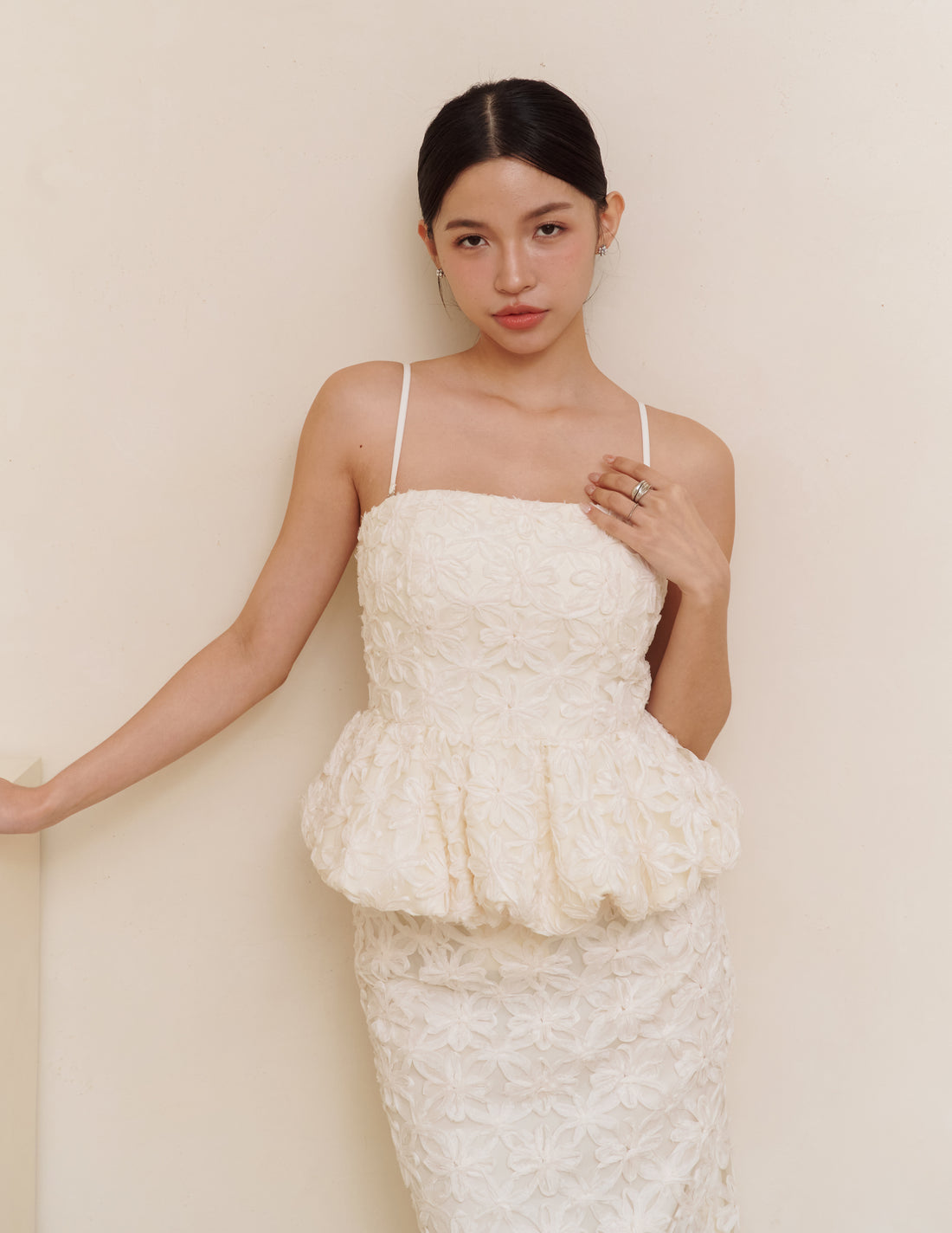 Claudine Petal Peplum Top in Ivory