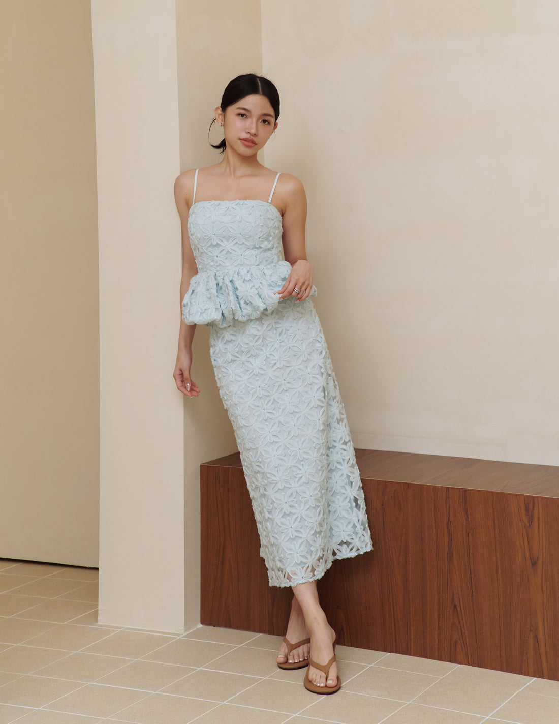 Claudine Petal Peplum Top in Blue