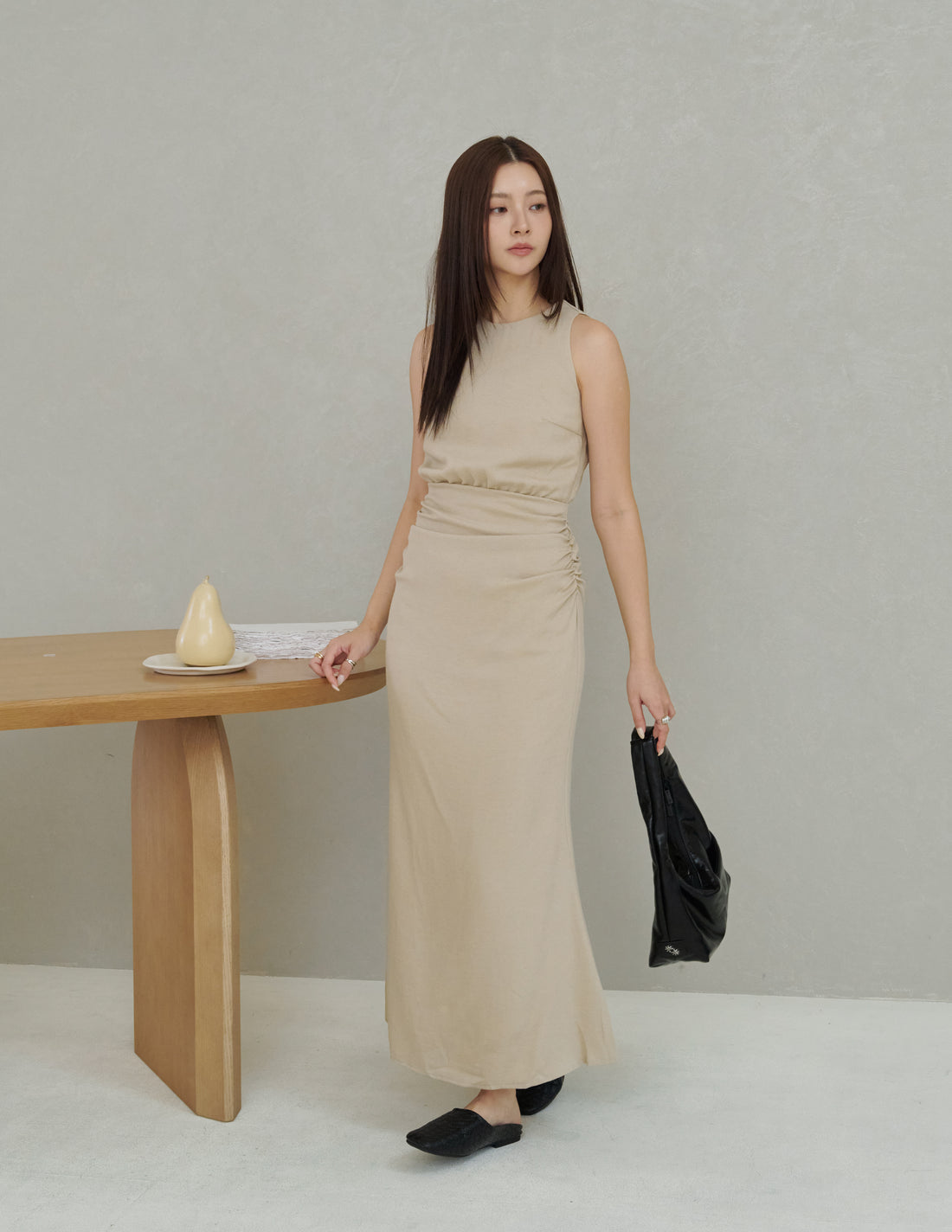 Cameron Ruched Dress in Beige