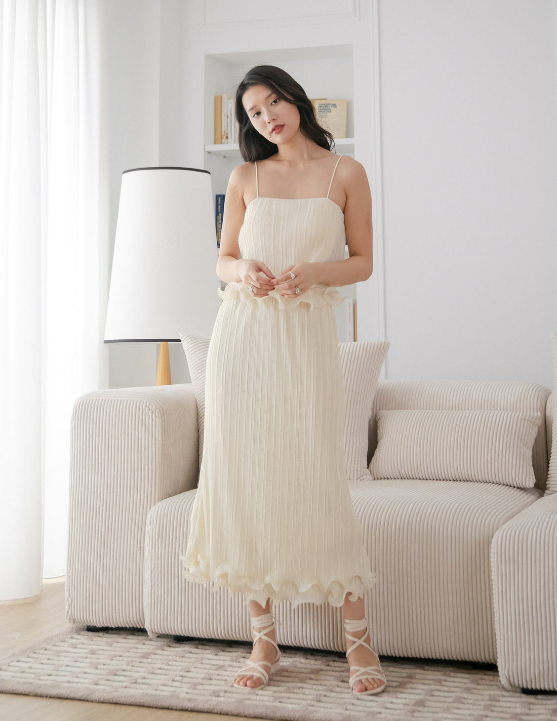 Brena Pleated Midi Skirt in Cream