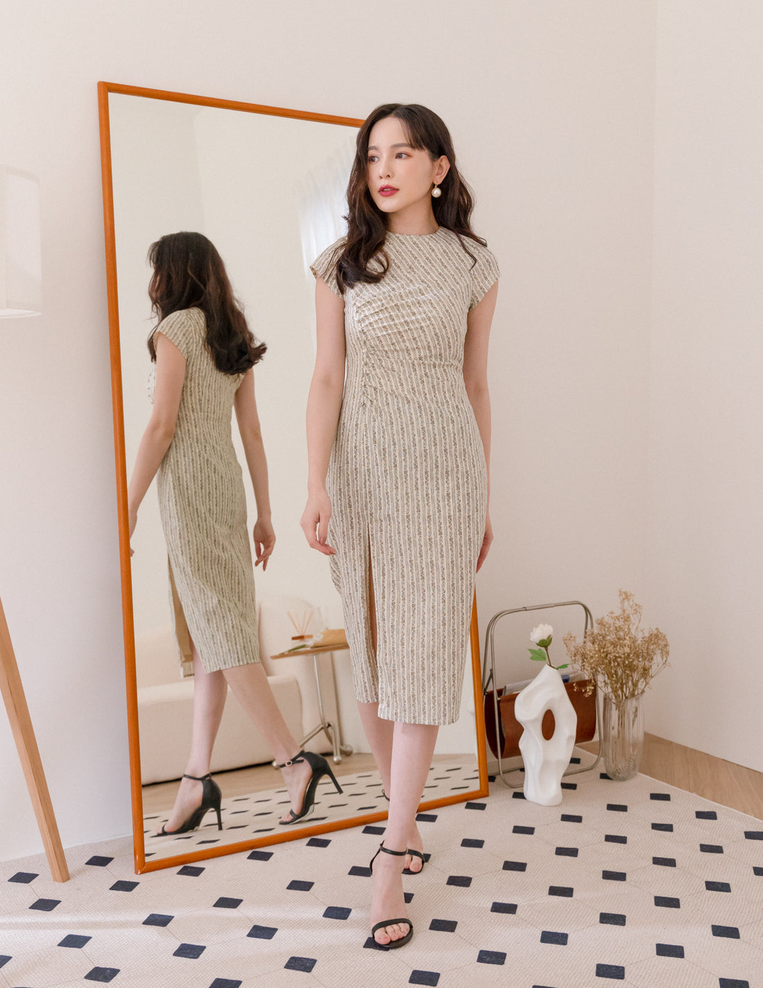 Information Lined Adjustable strap Concealed back zip Also available in Lilac Grey Composition 100% Cotton Wearing Model...