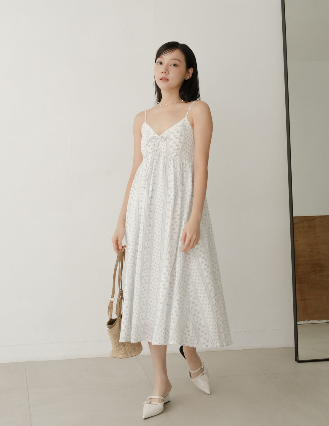 Thalia Lace Ribbon Midi Dress in Eyelet
