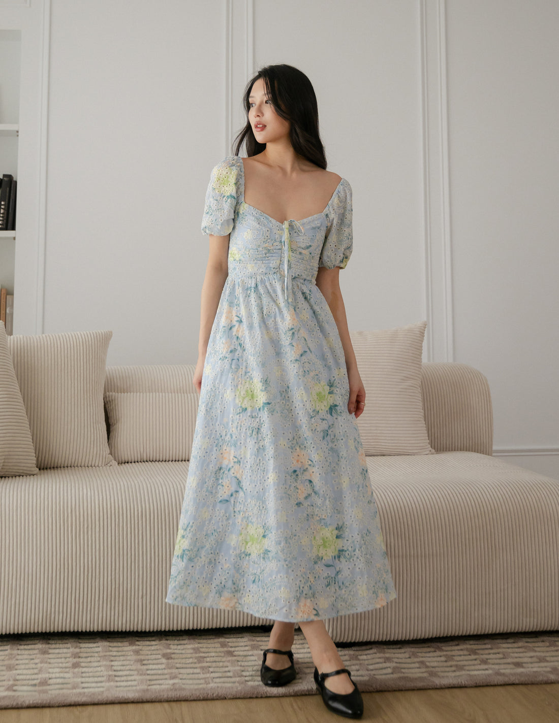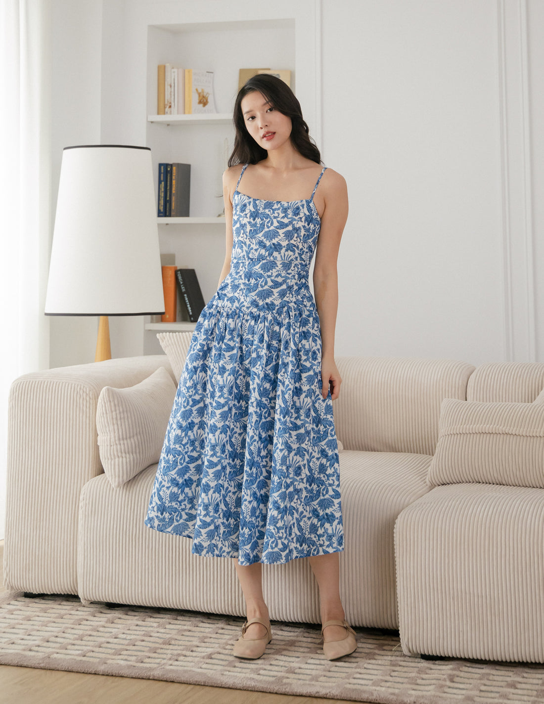 Lyndsey Padded Maxi Dress in Vintage Floral