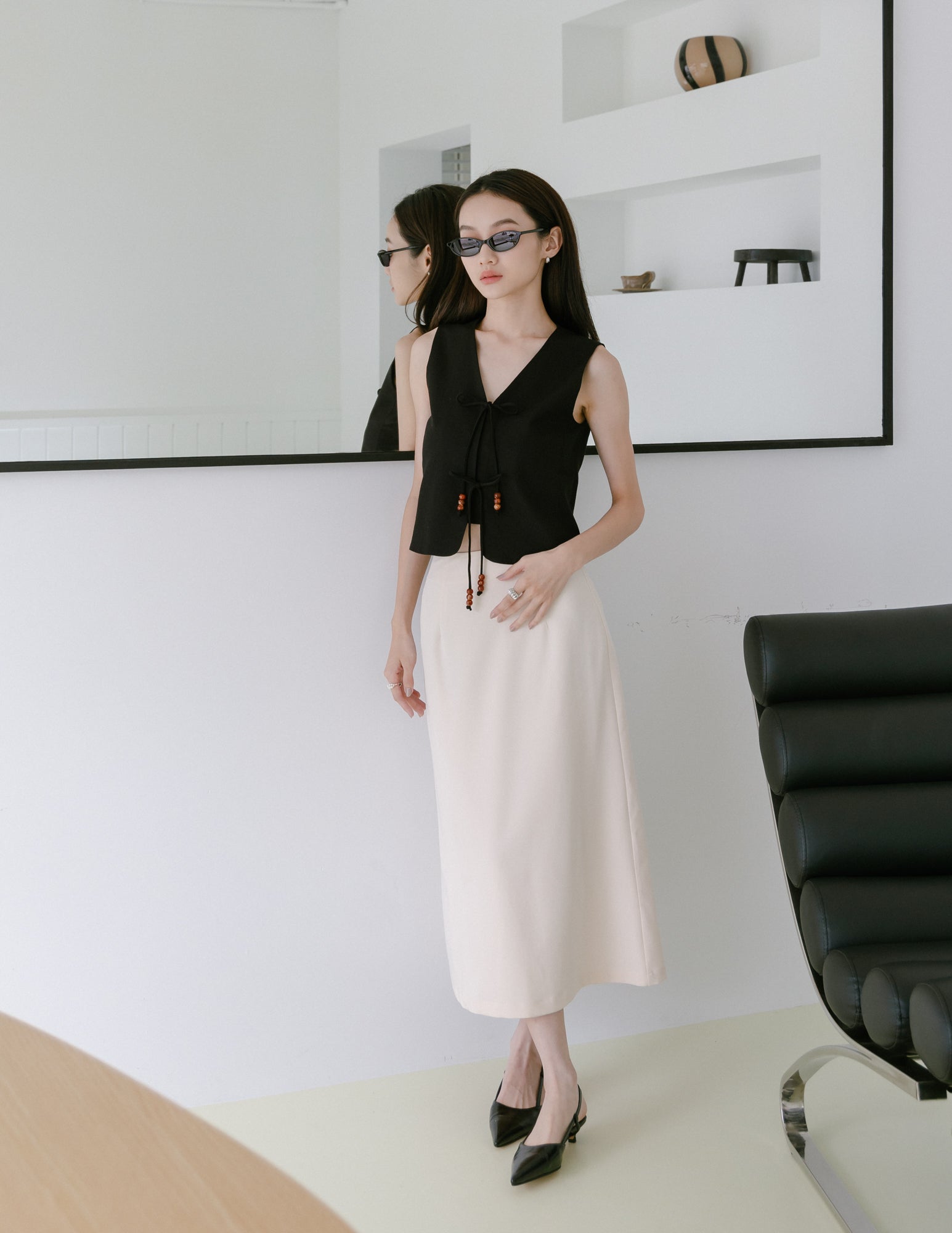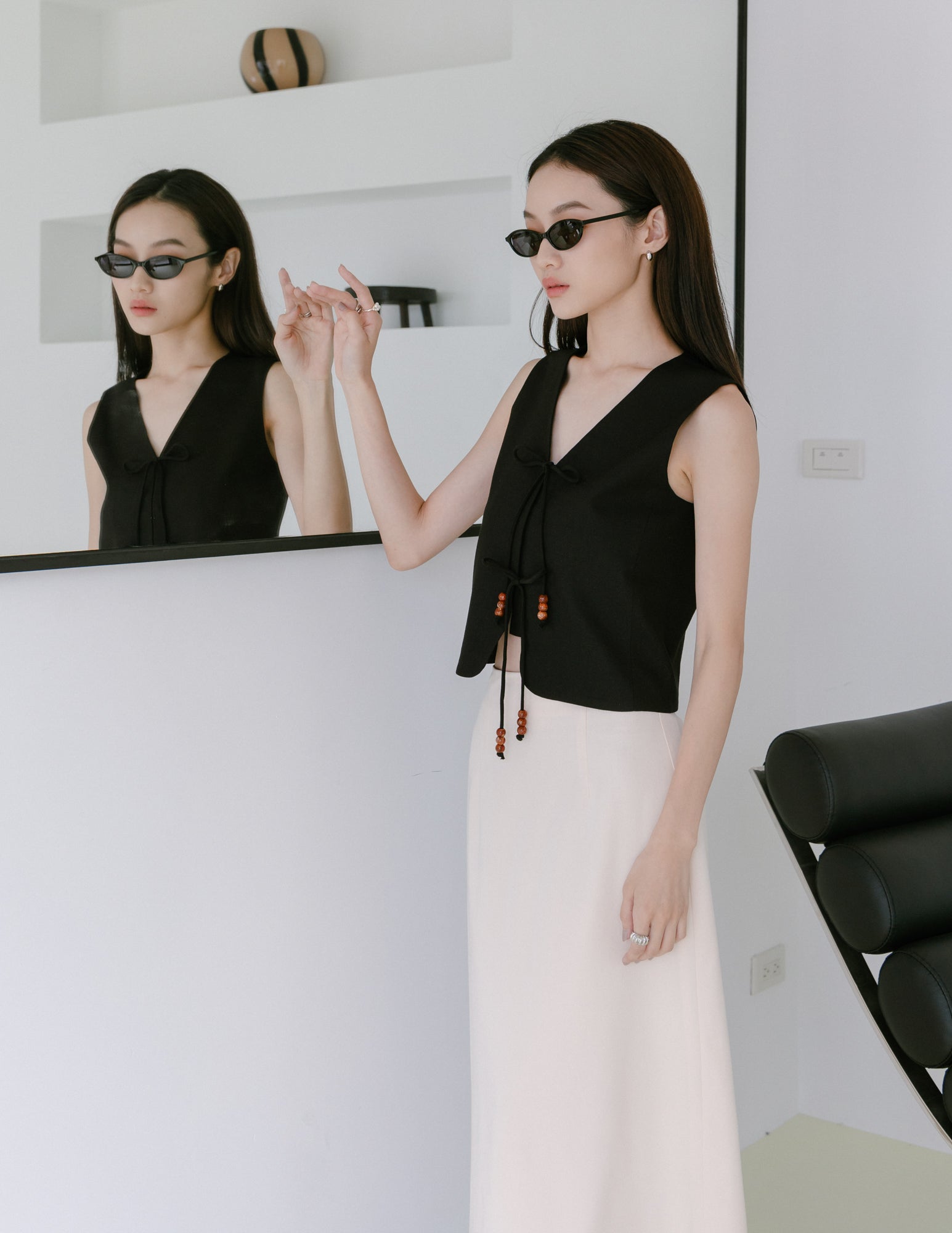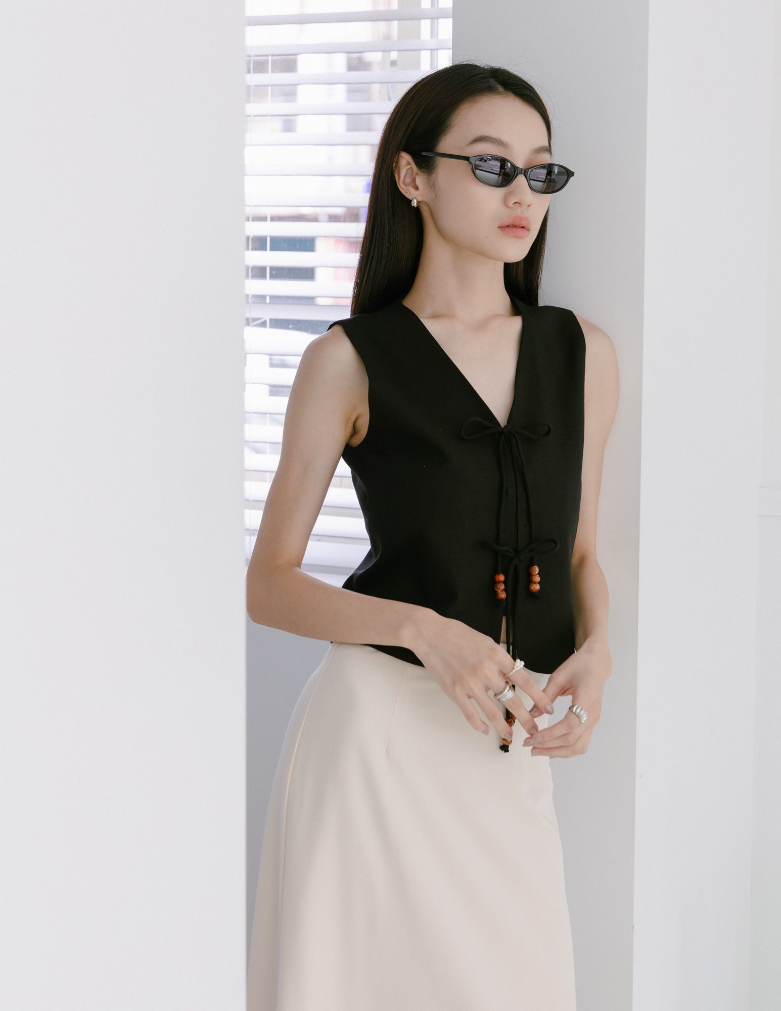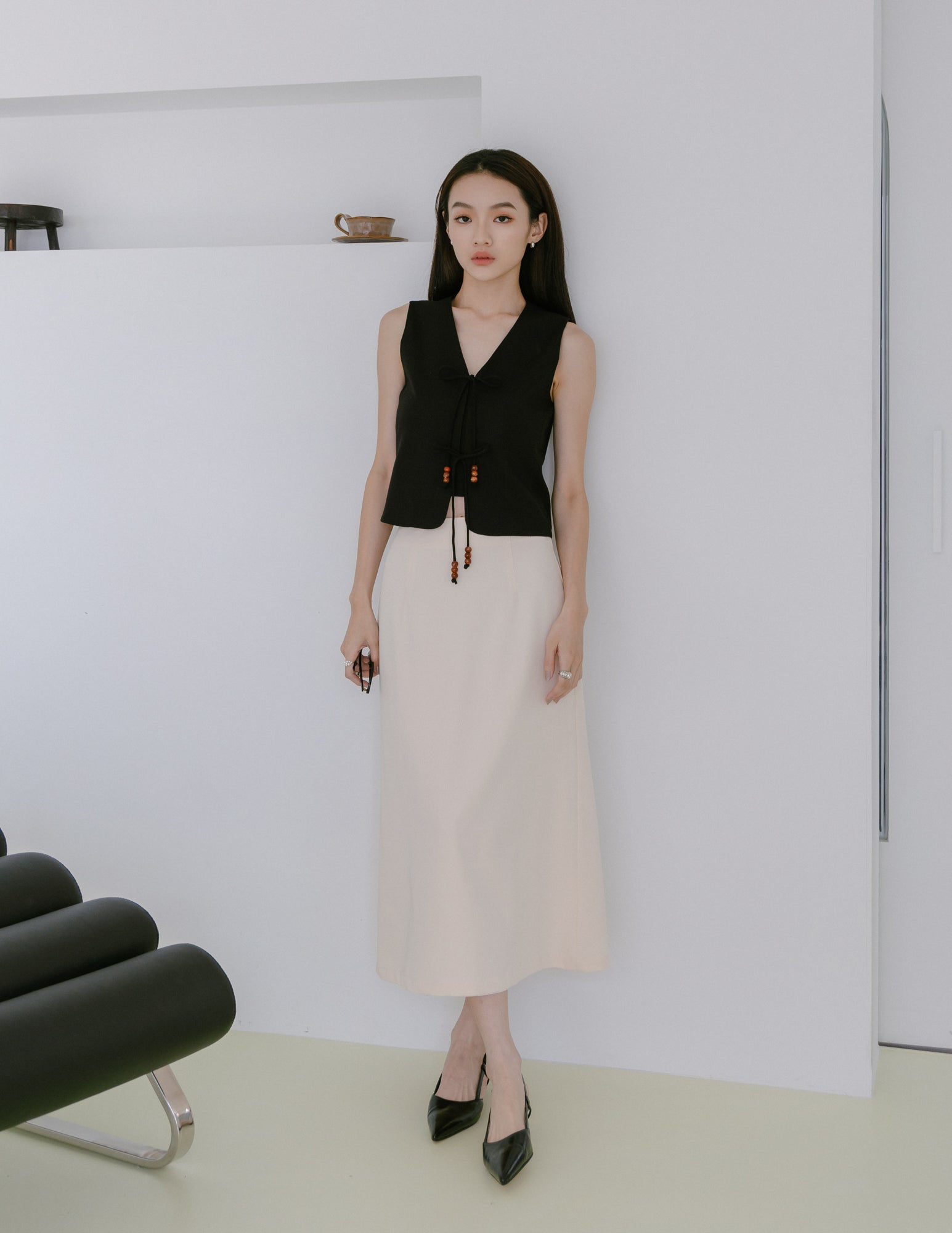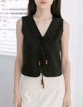 Abby Tie-Front Linen Vest in Black