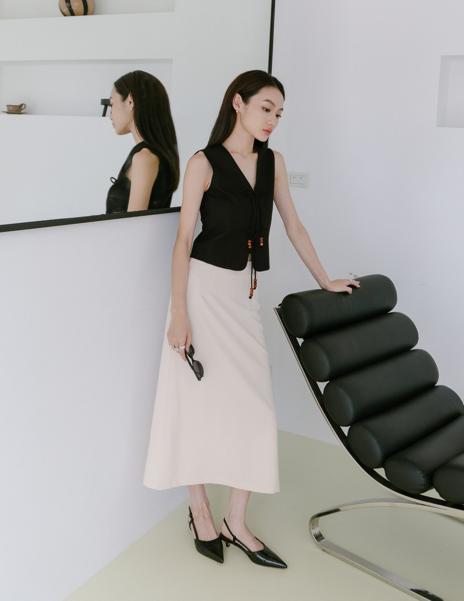 -Â Ching Ru 157cm (15.5" PTP, 12.5" Waist, 17.0" Hip)Â wears Size XS