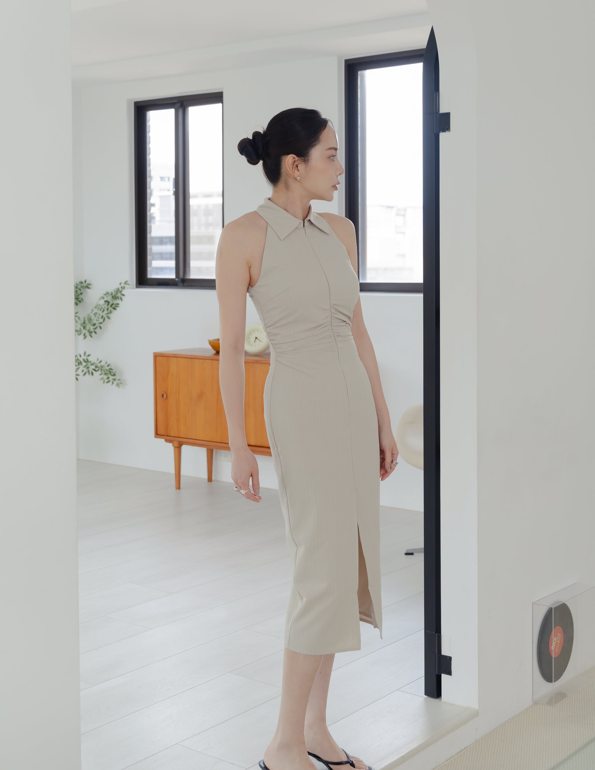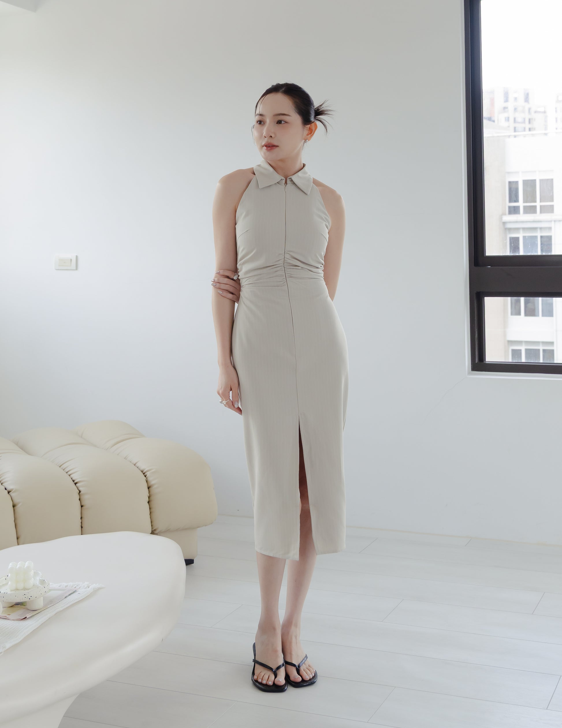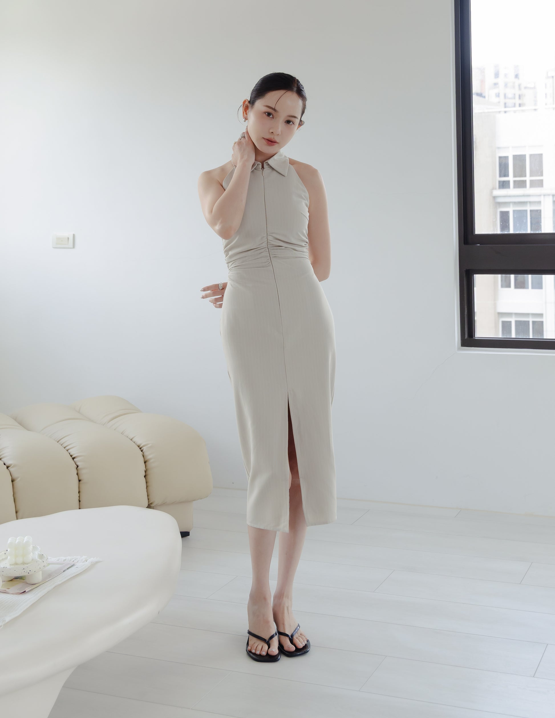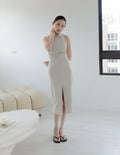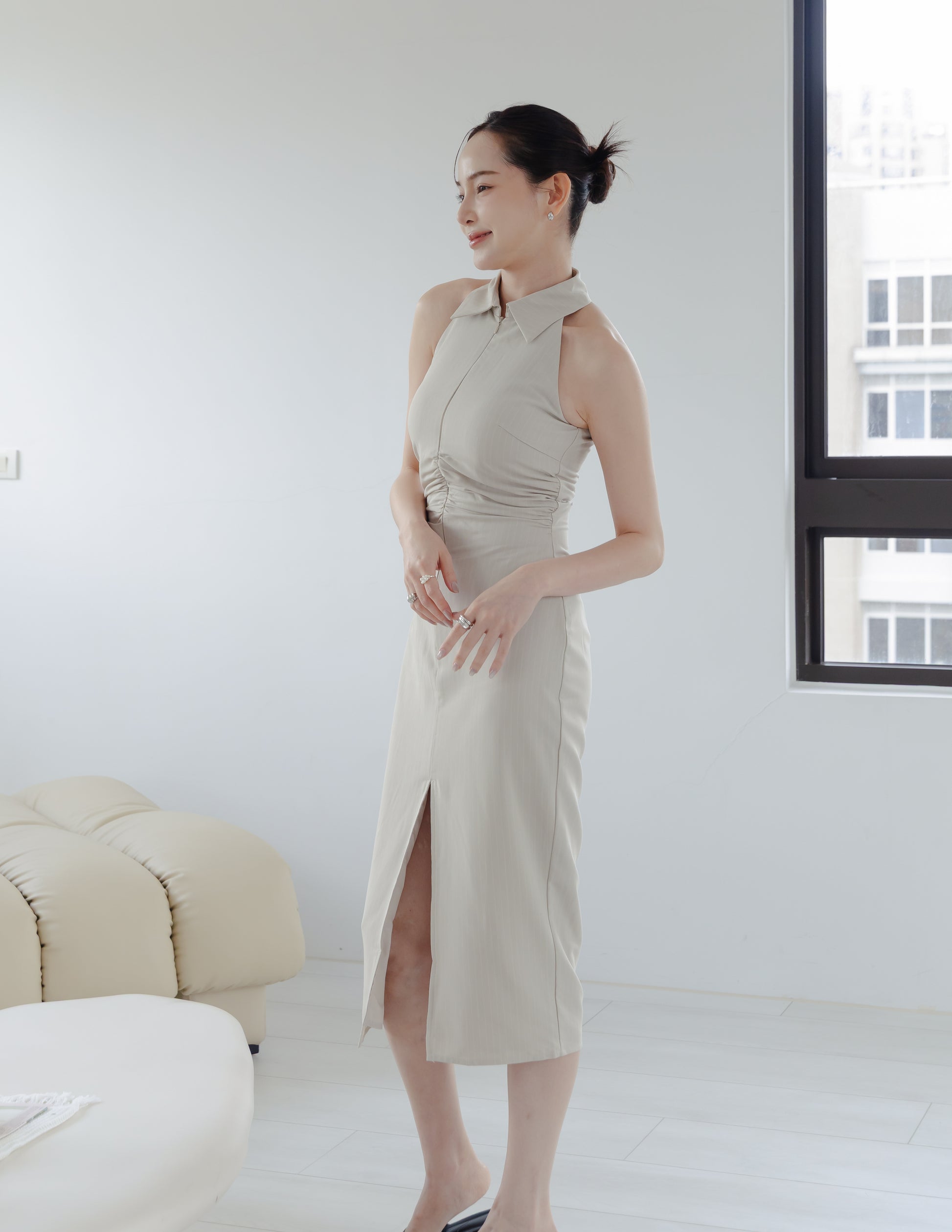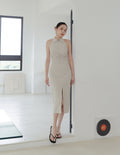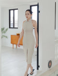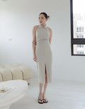 Annie Pinstripe Midi Dress in Beige
