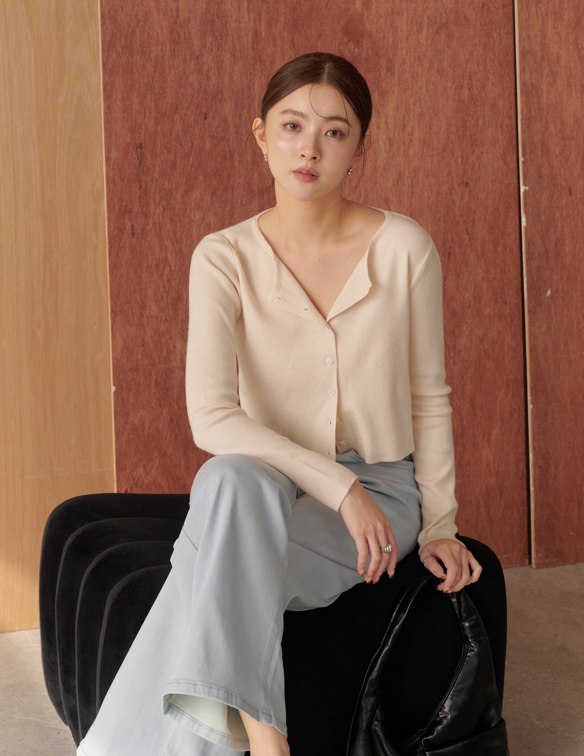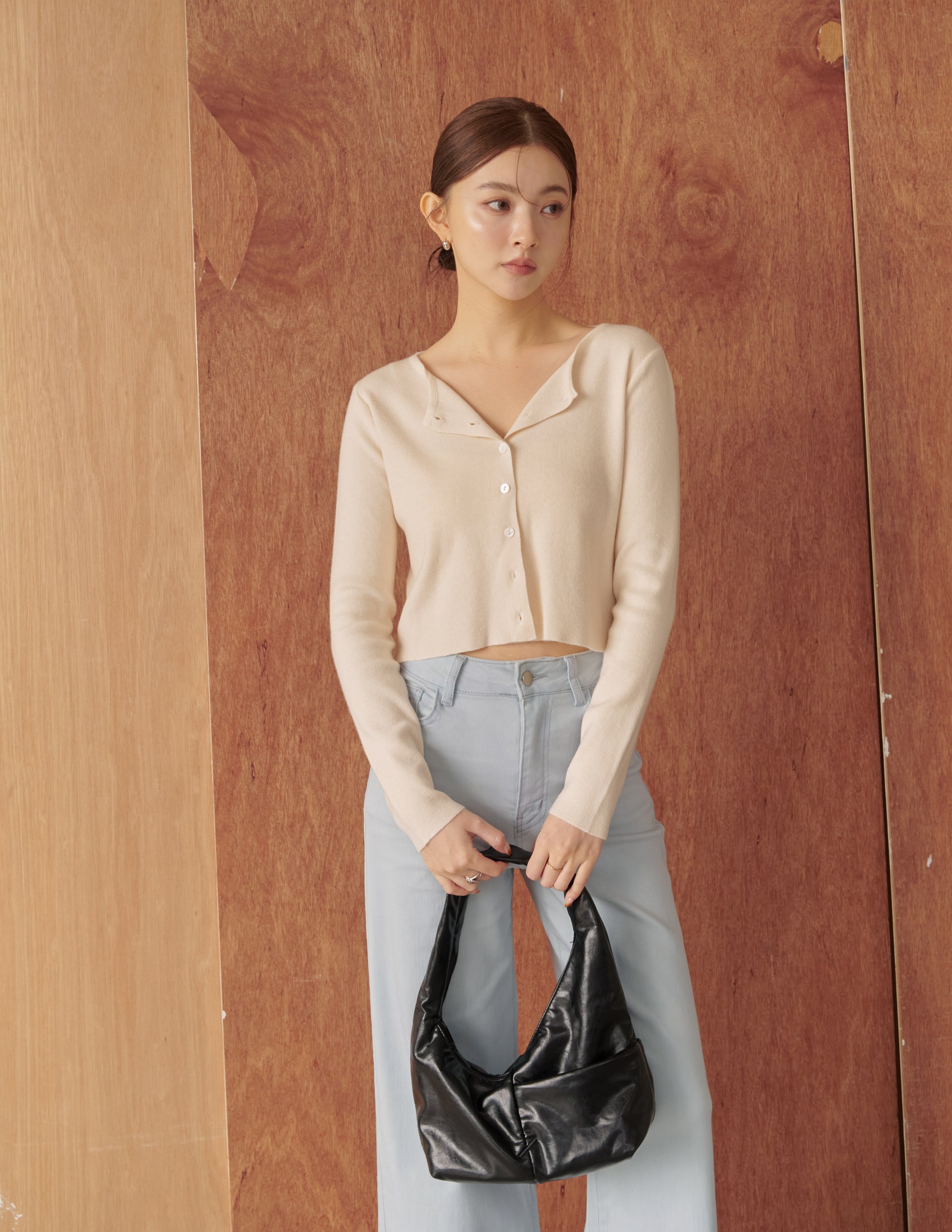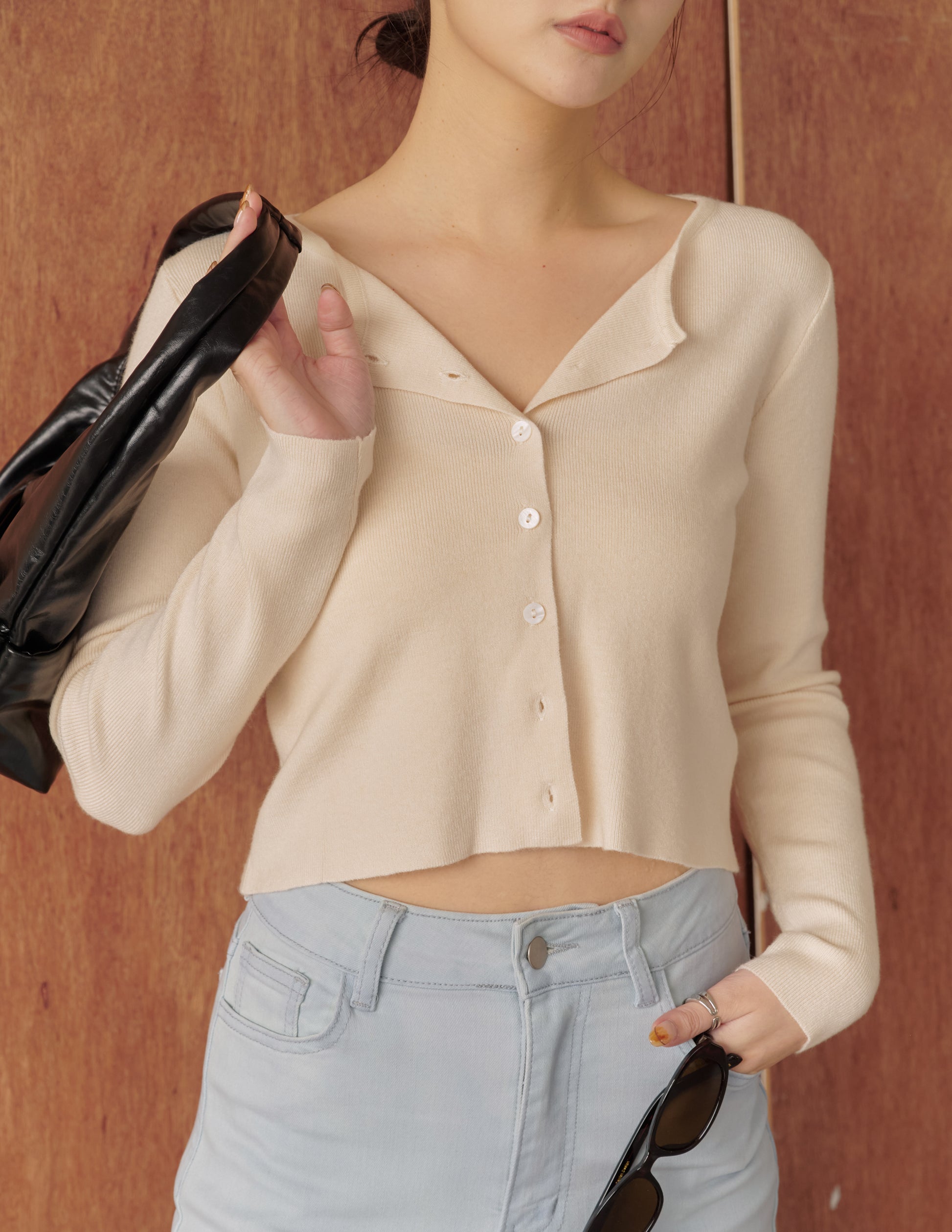 Avery Knit Crop Cardigan in Beige