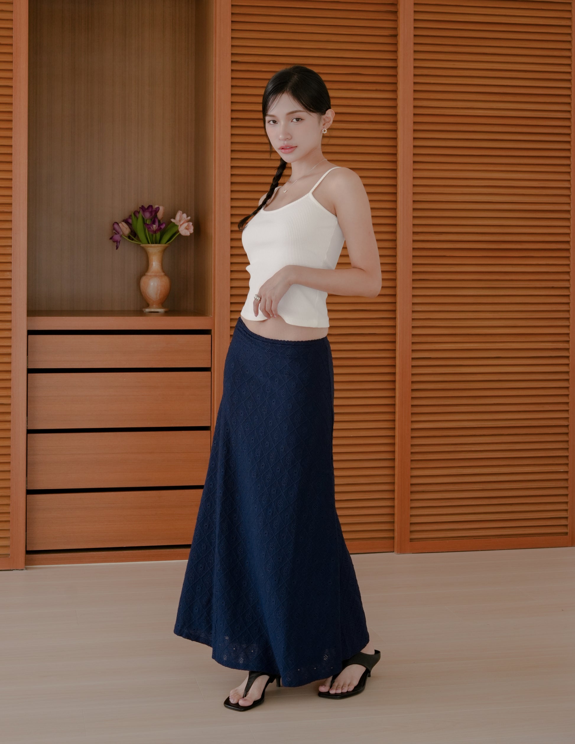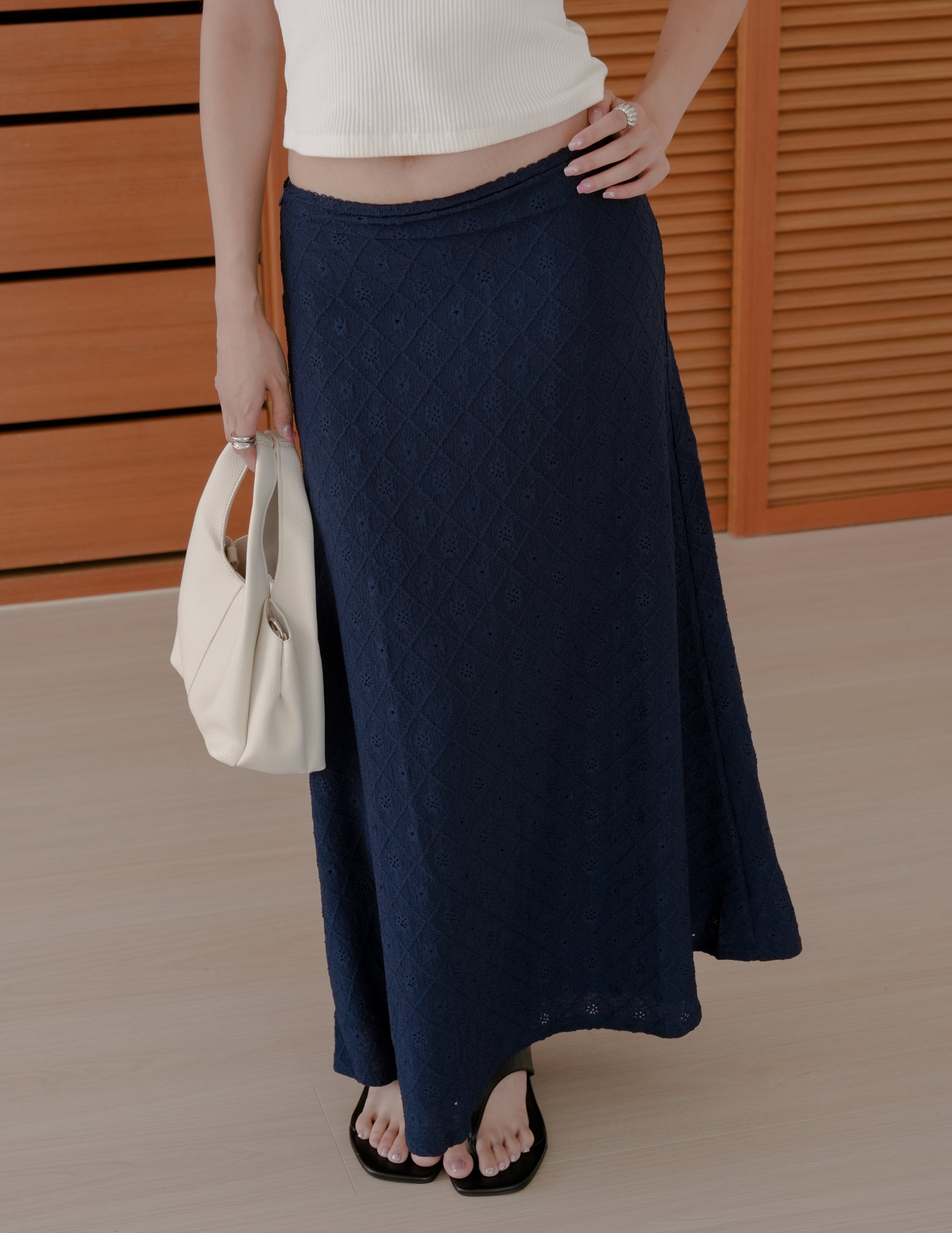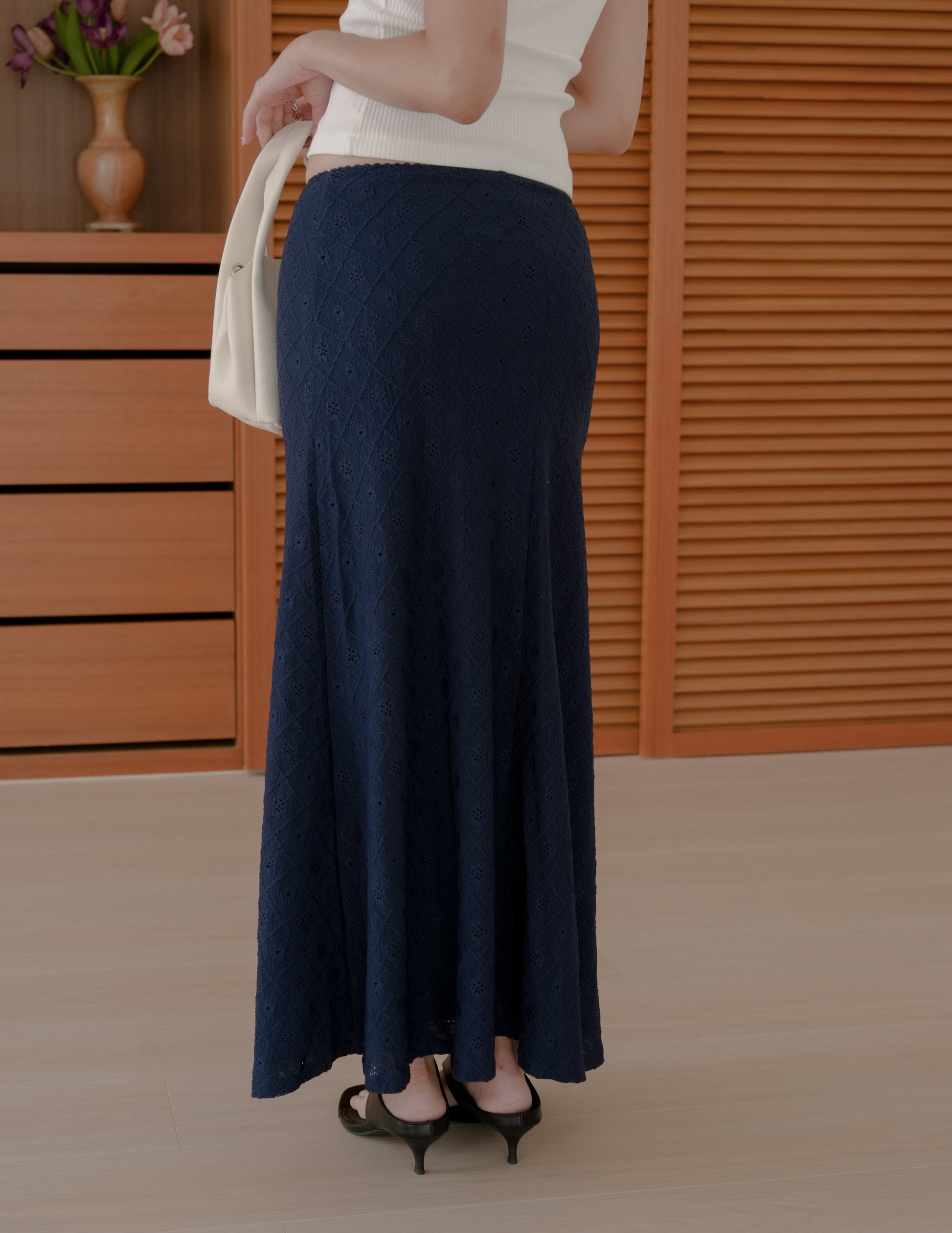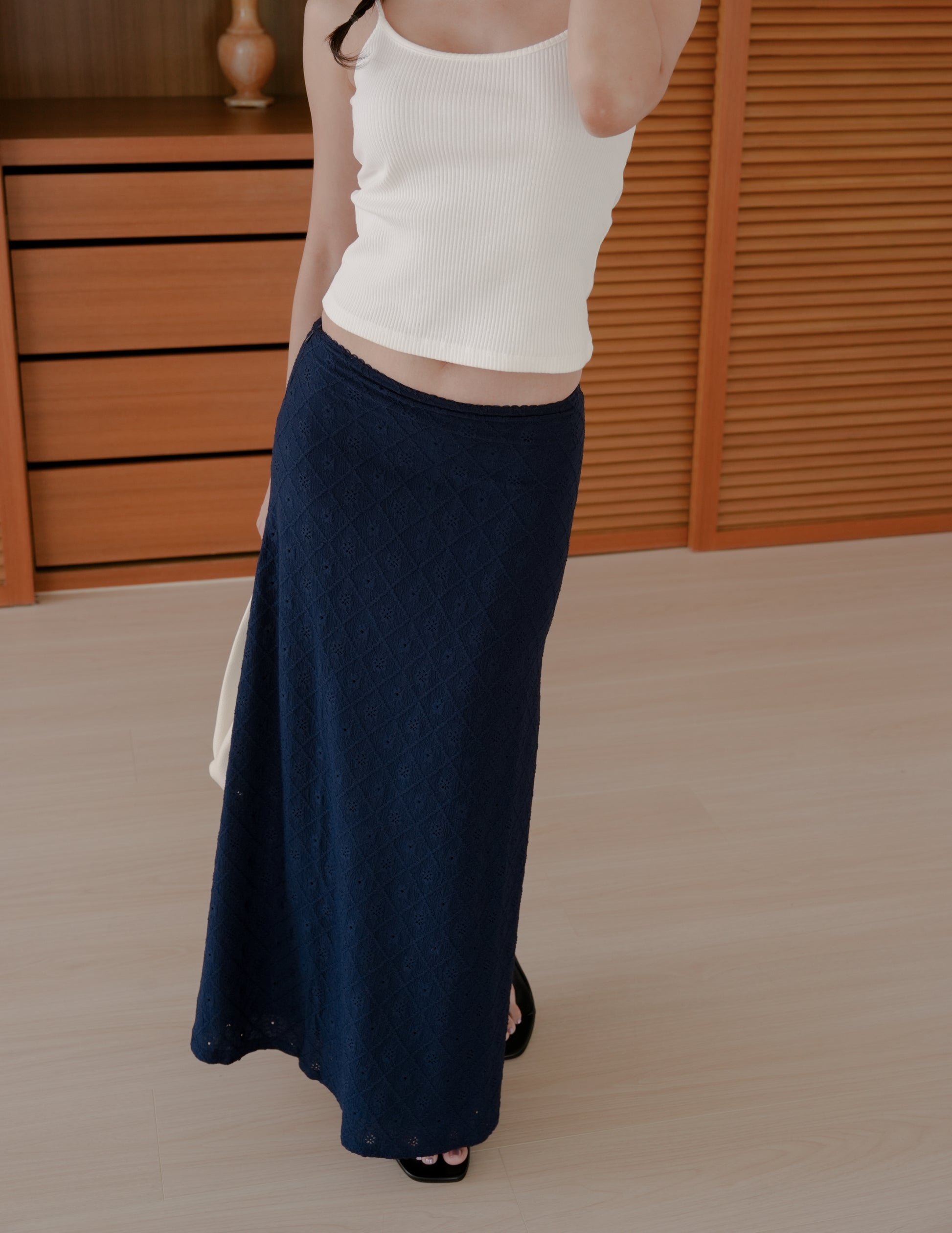 Clarisse Long Lace Skirt in Navy