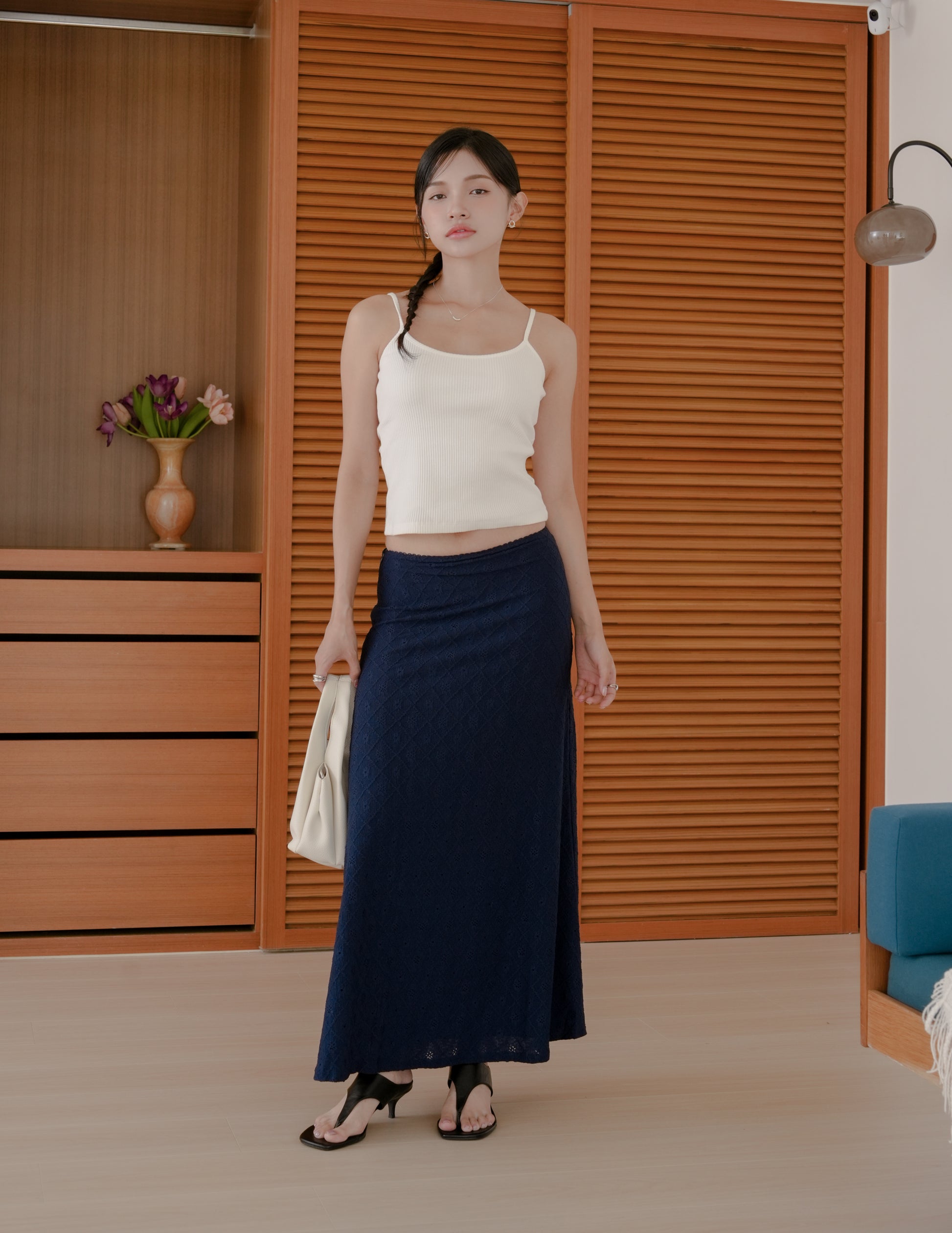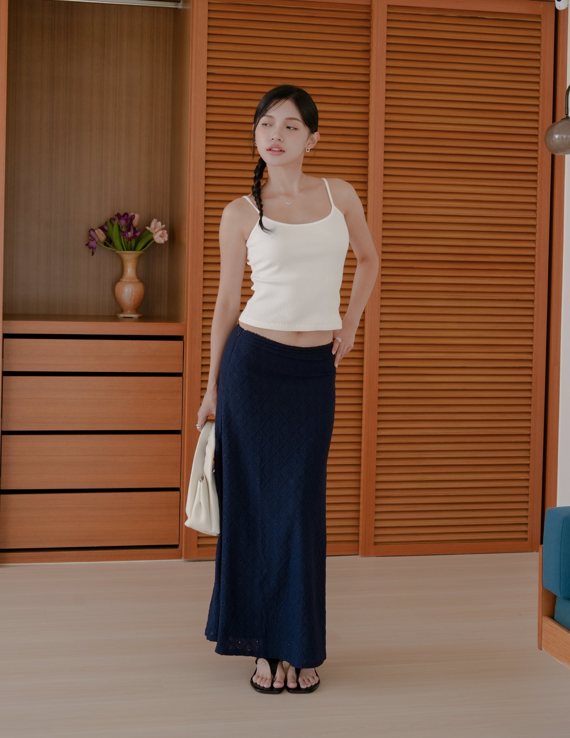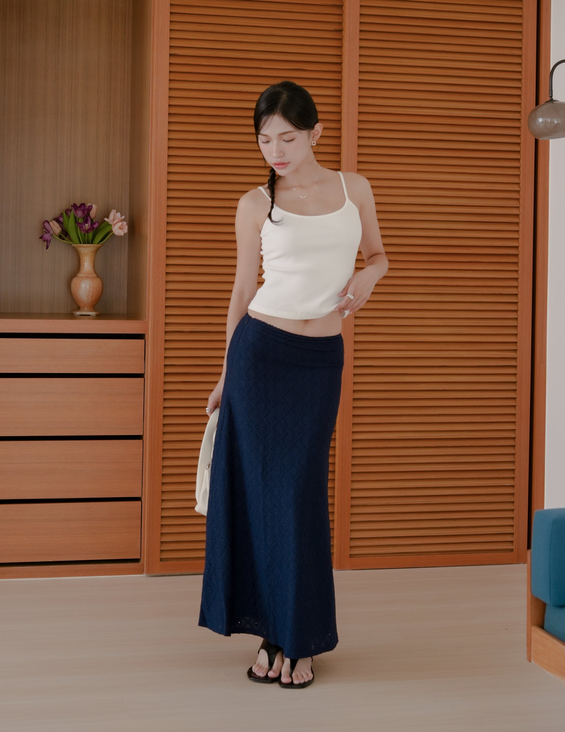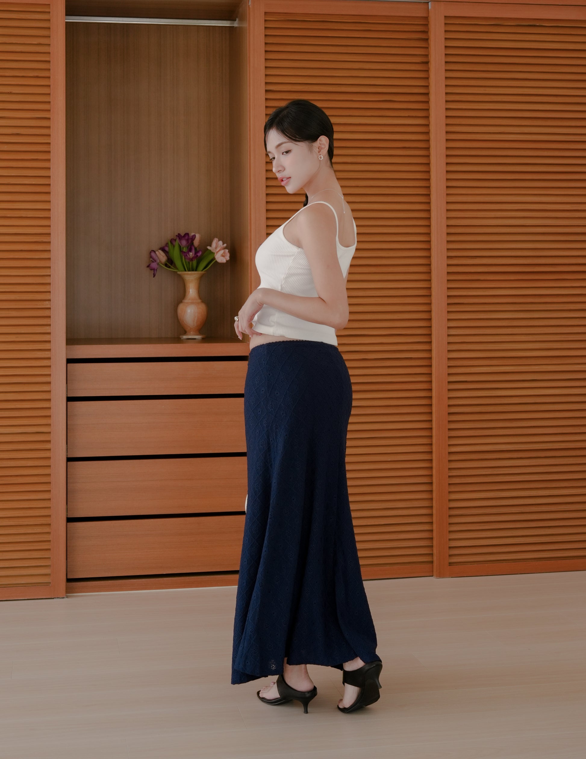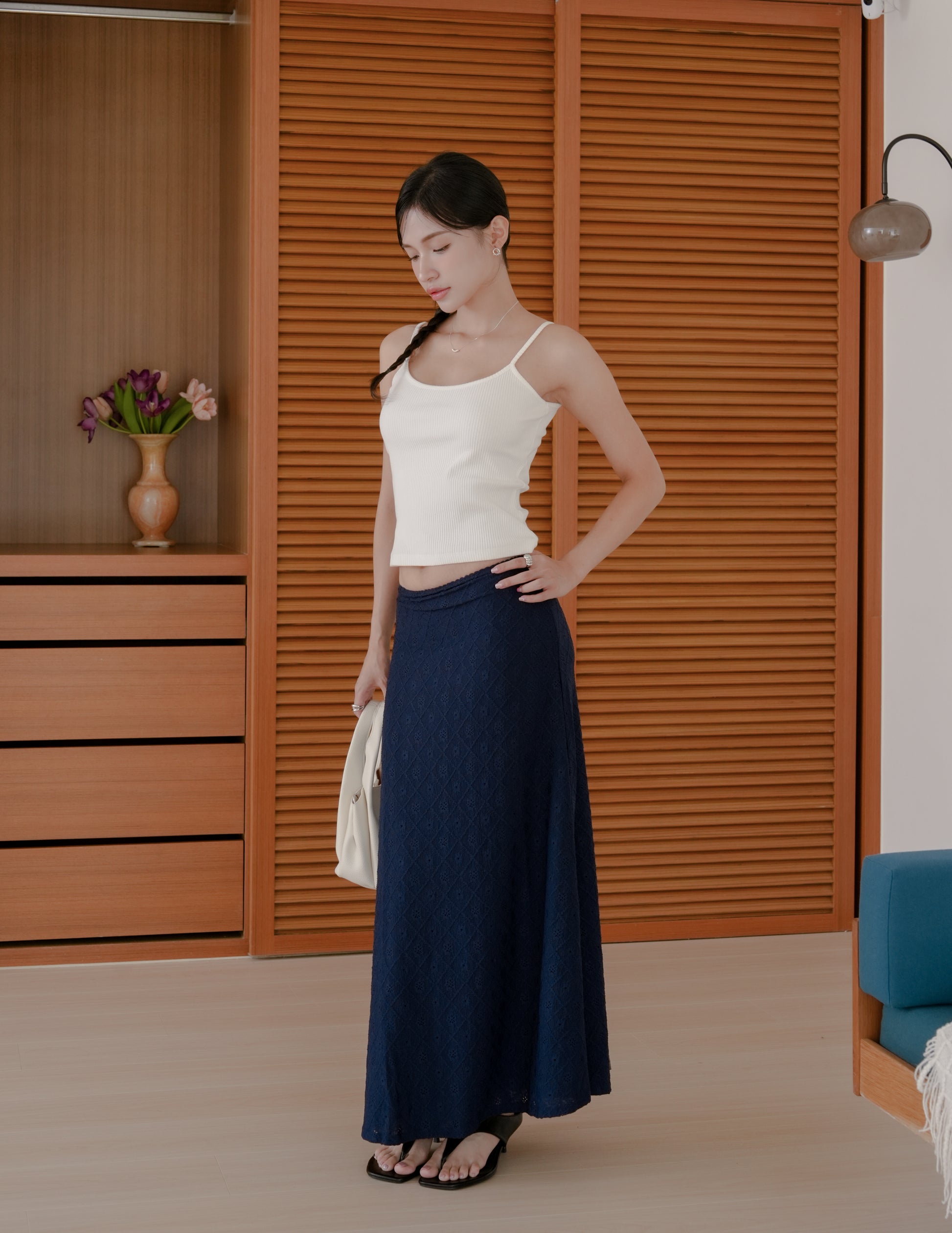 Clarisse Long Lace Skirt in Navy