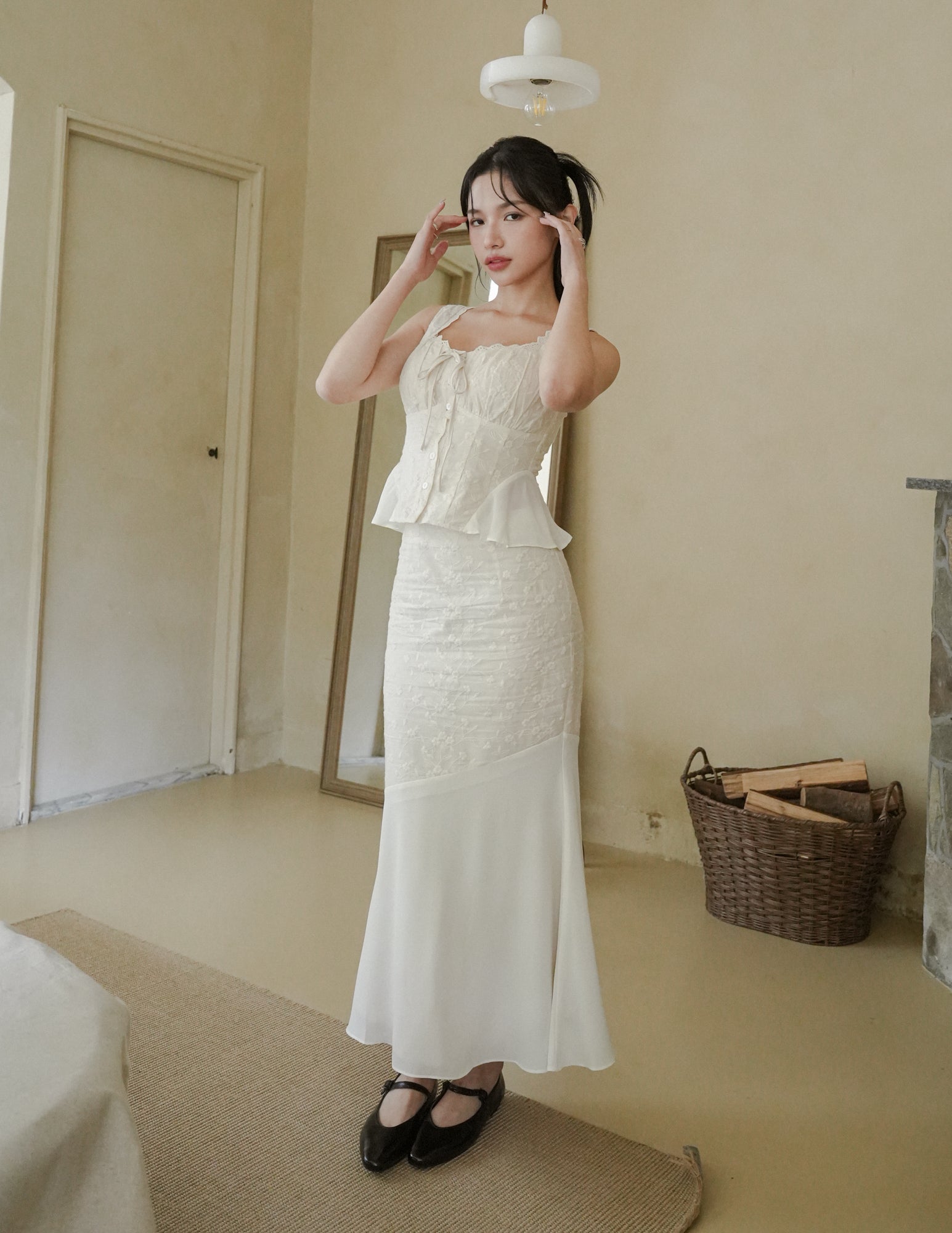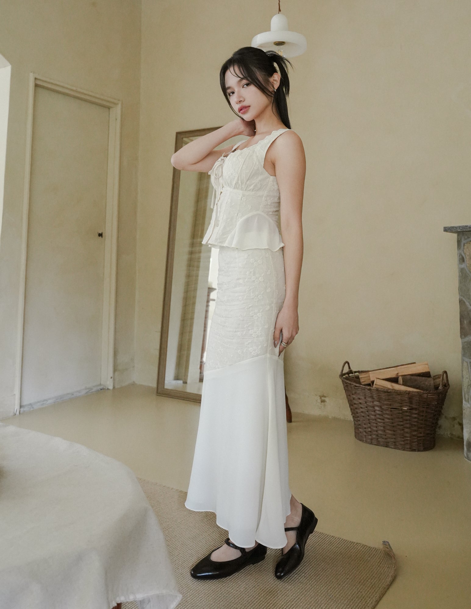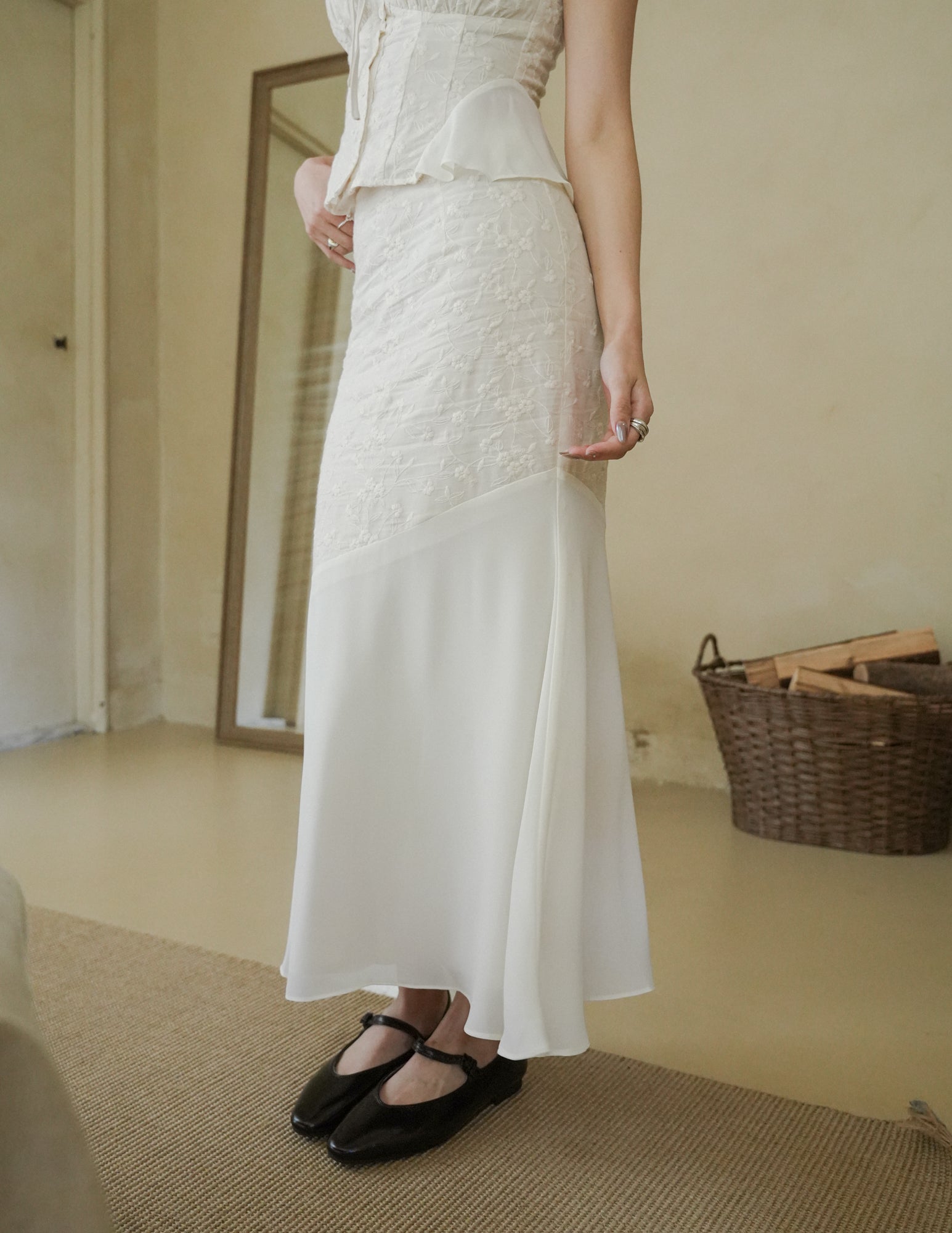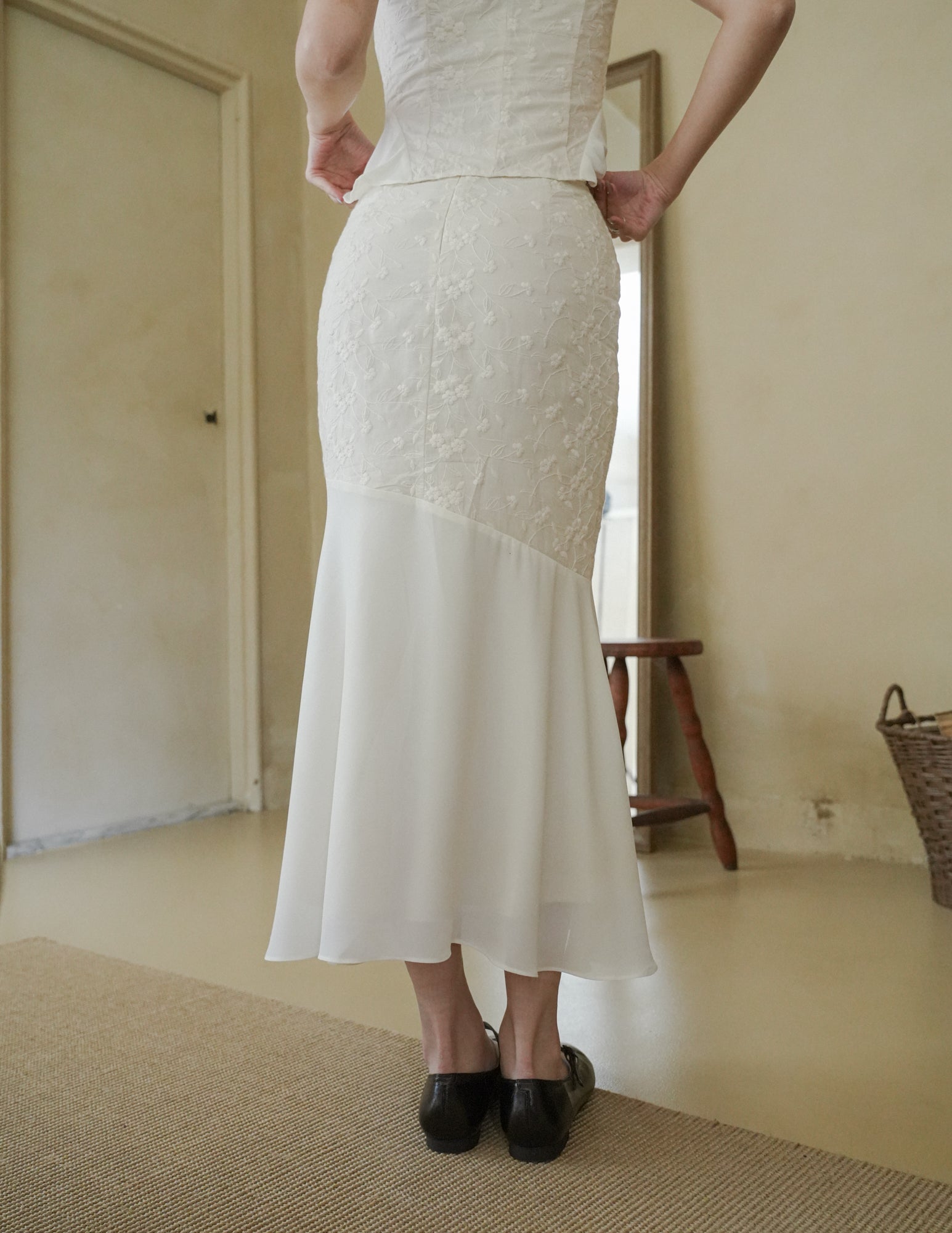 Dakota Mesh Midi Skirt in Eyelet