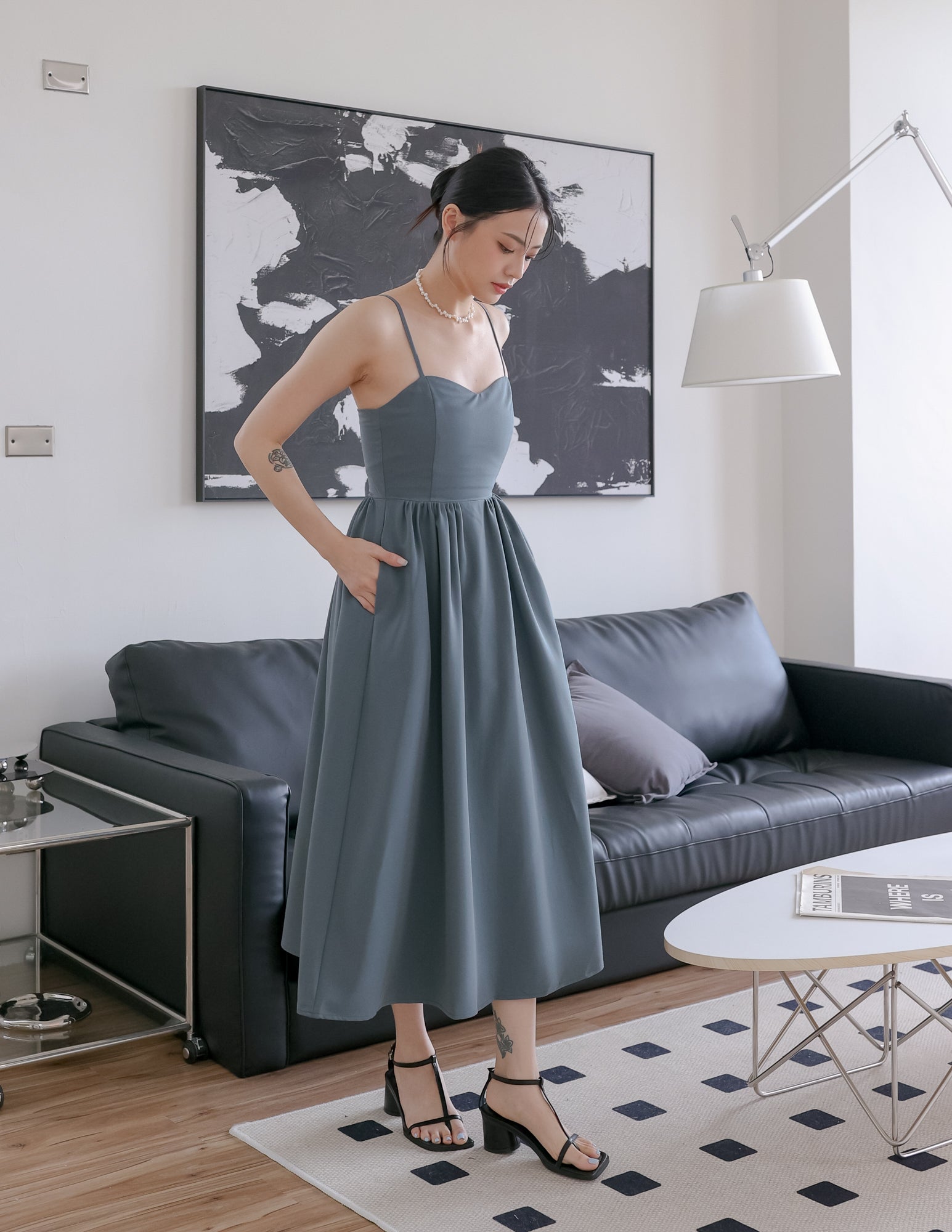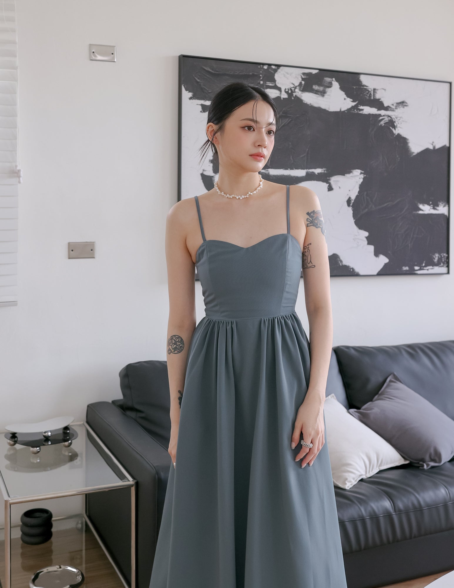 Model is 1.63m, (15.5" PTP, 12.0" Waist, 17.0" Hip), wearing size XS
