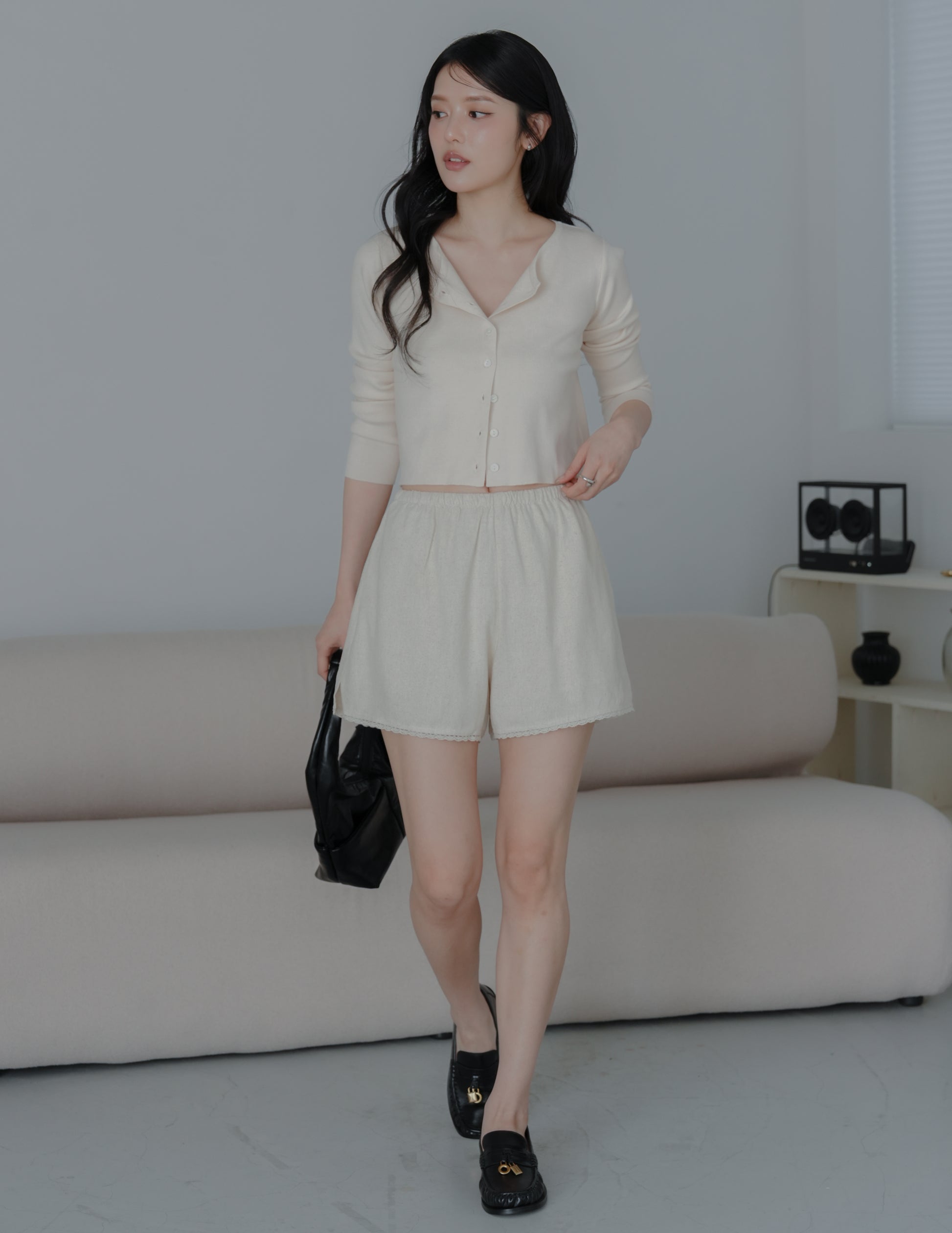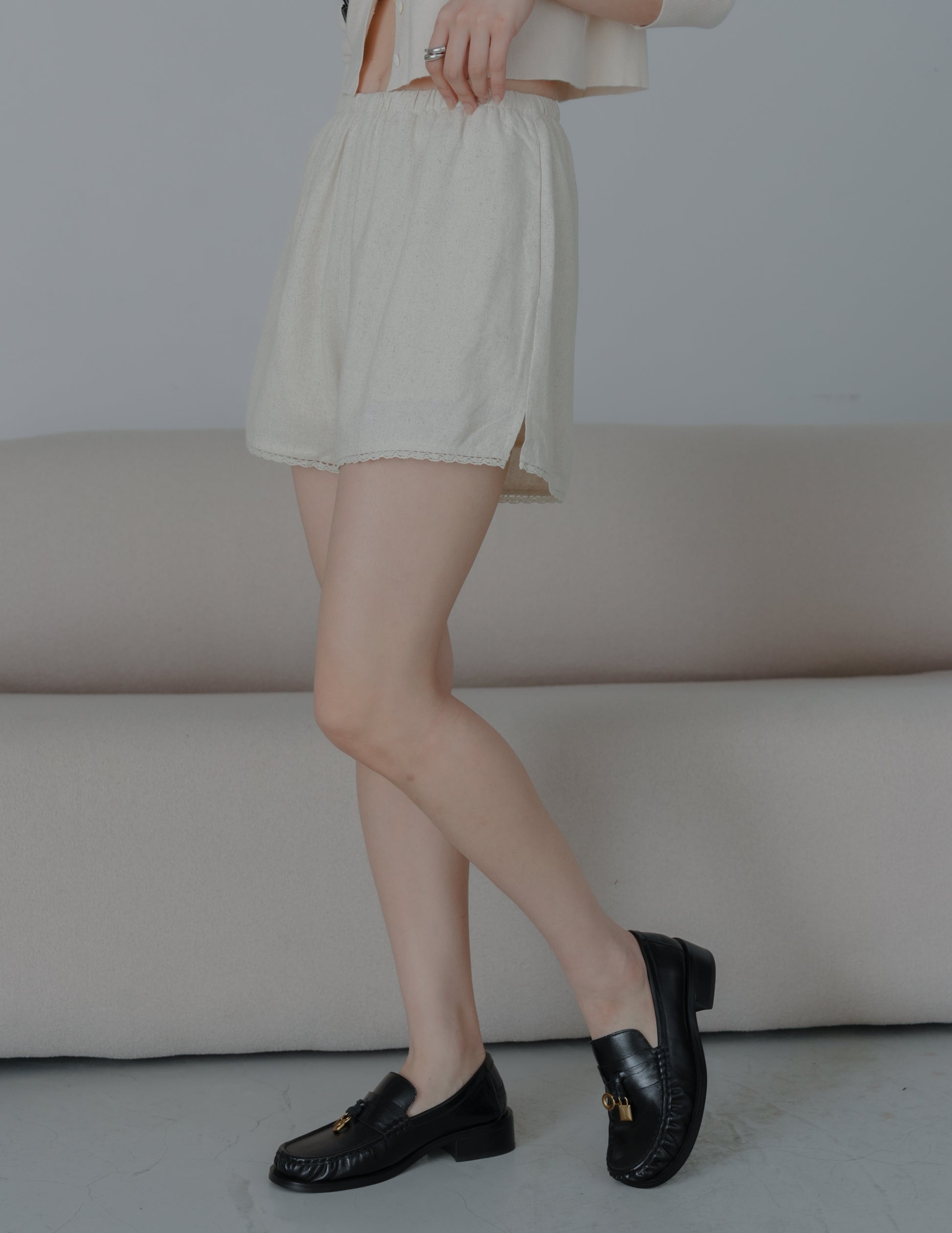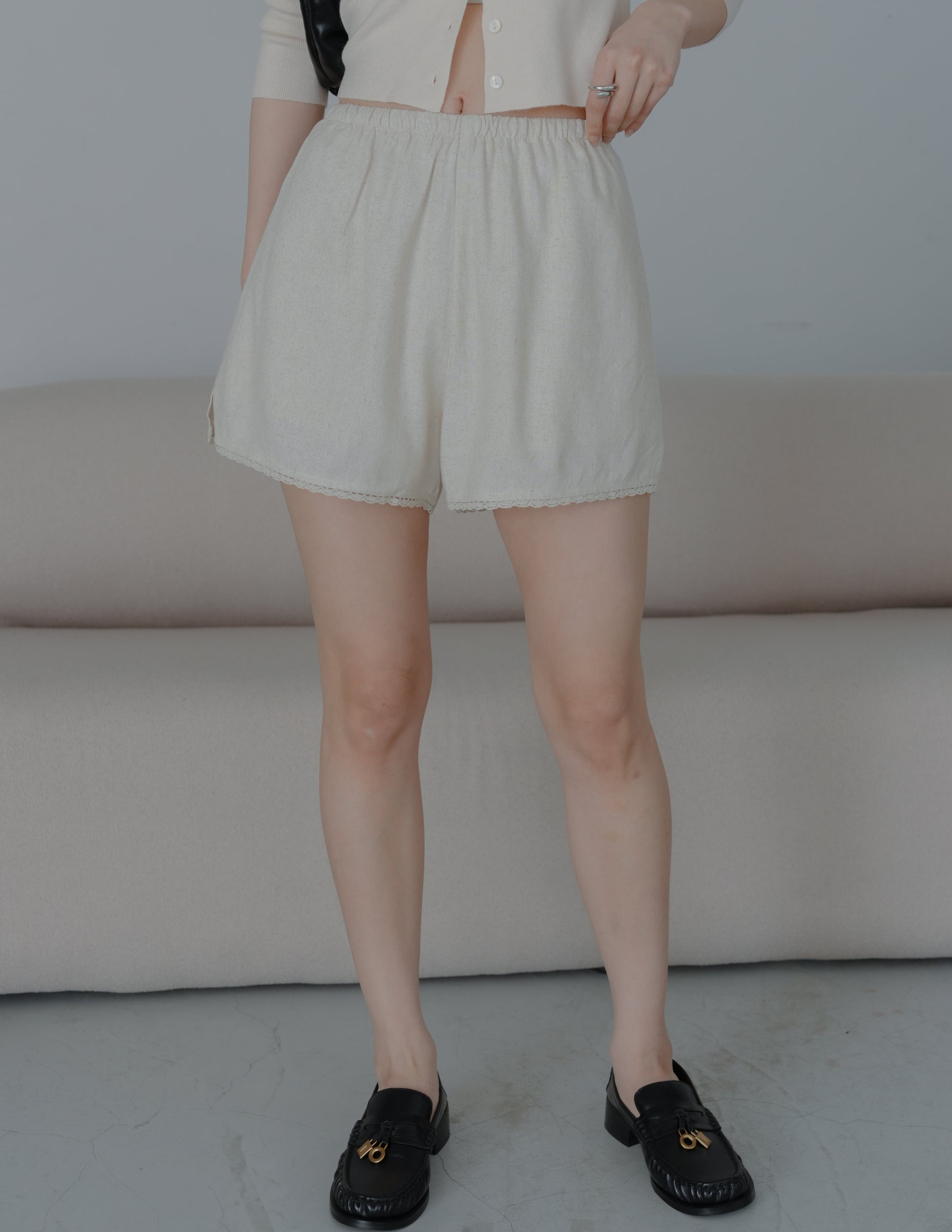 Ellis Lace Trim Linen Shorts in Sand