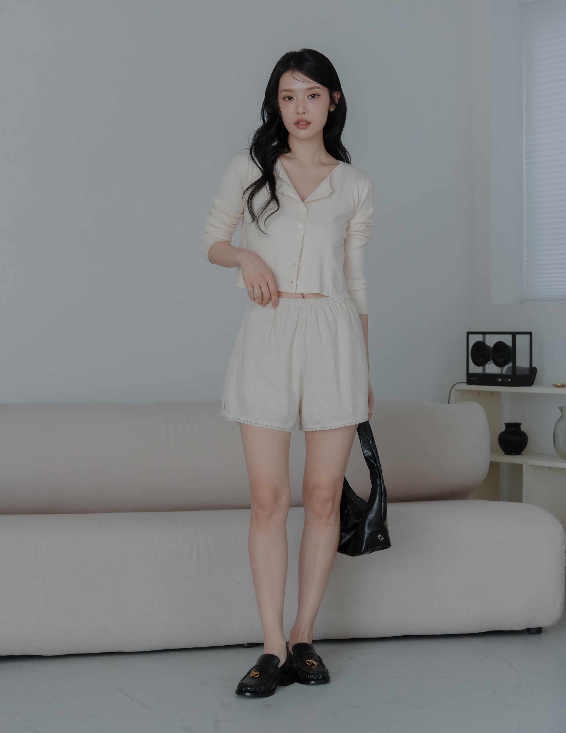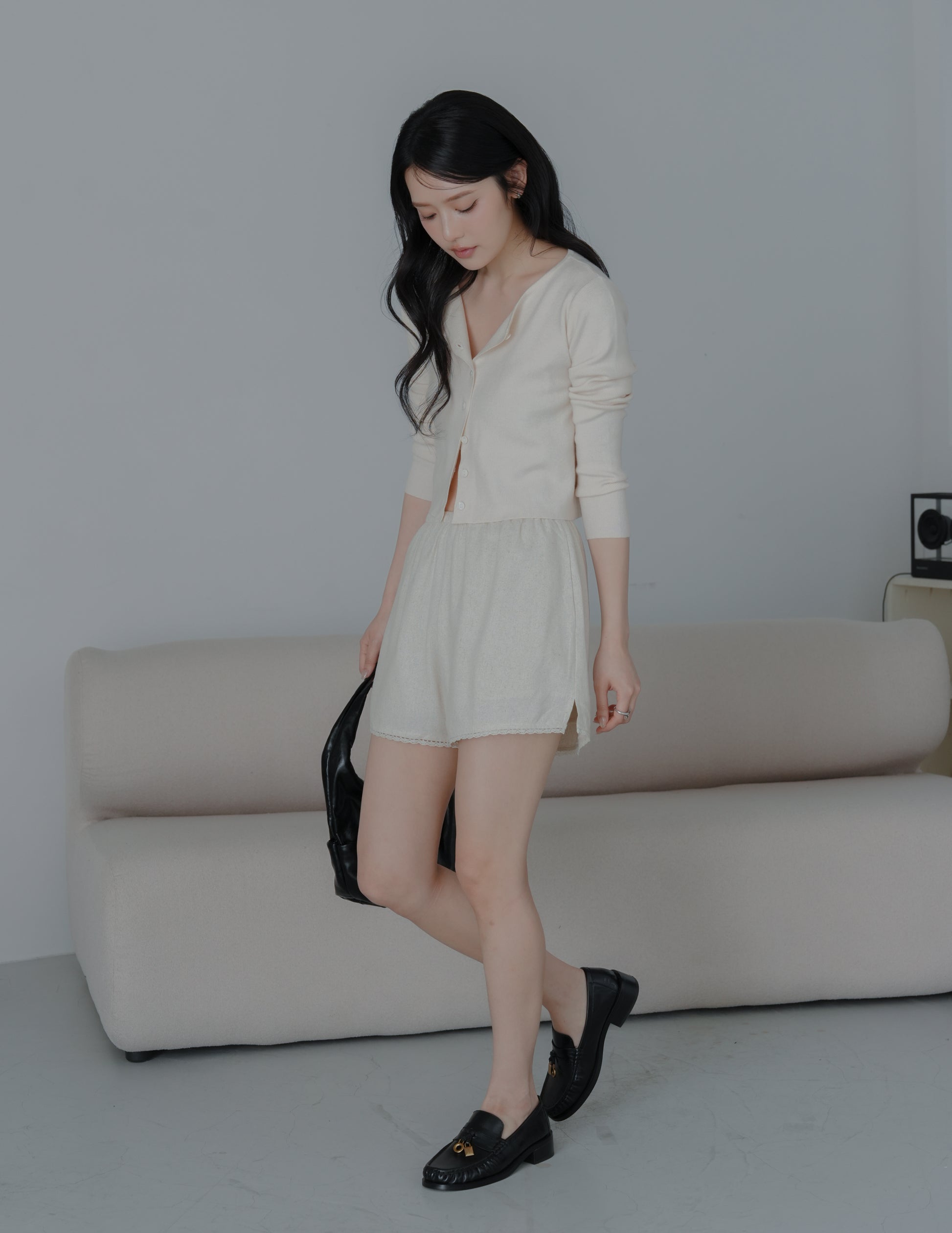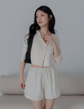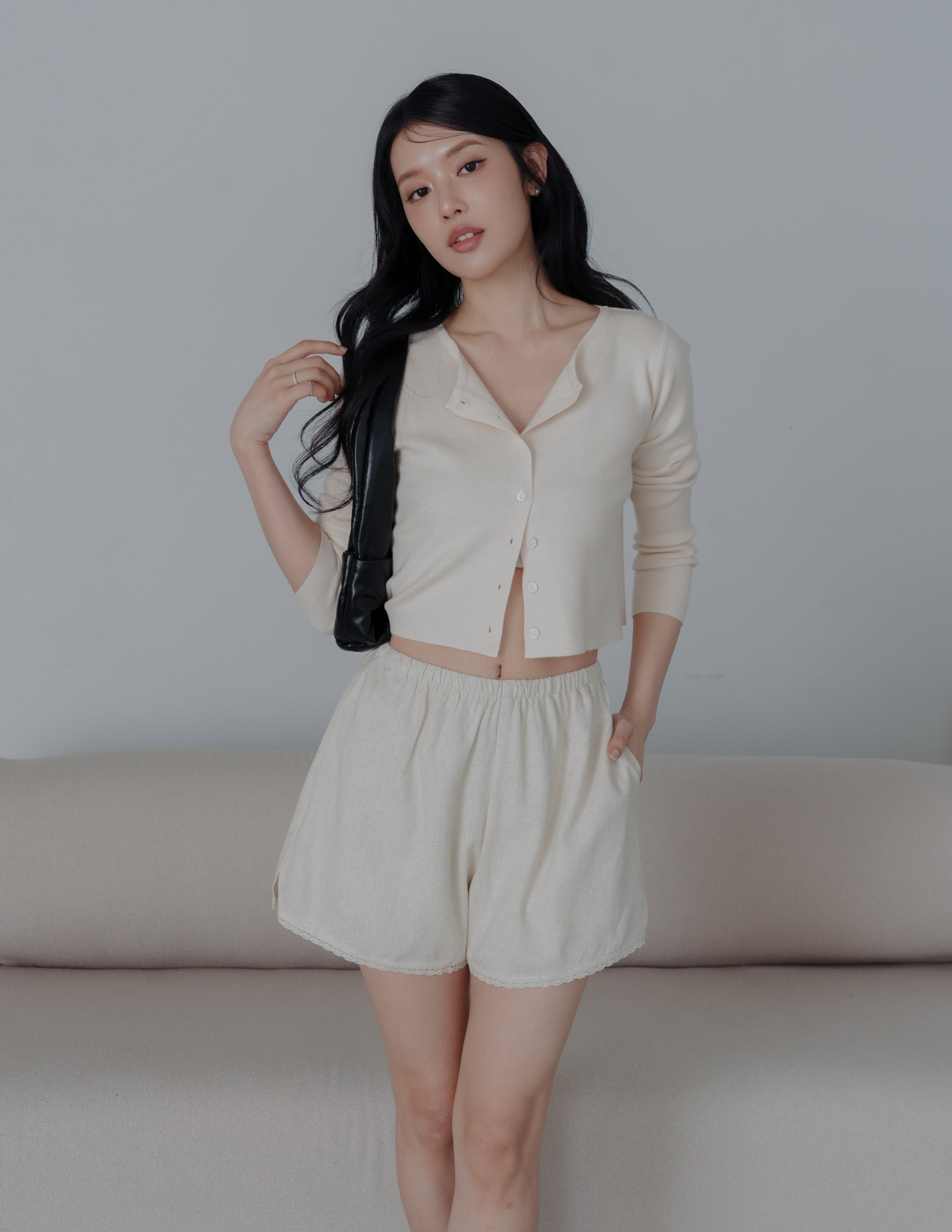 Ellis Lace Trim Linen Shorts in Sand