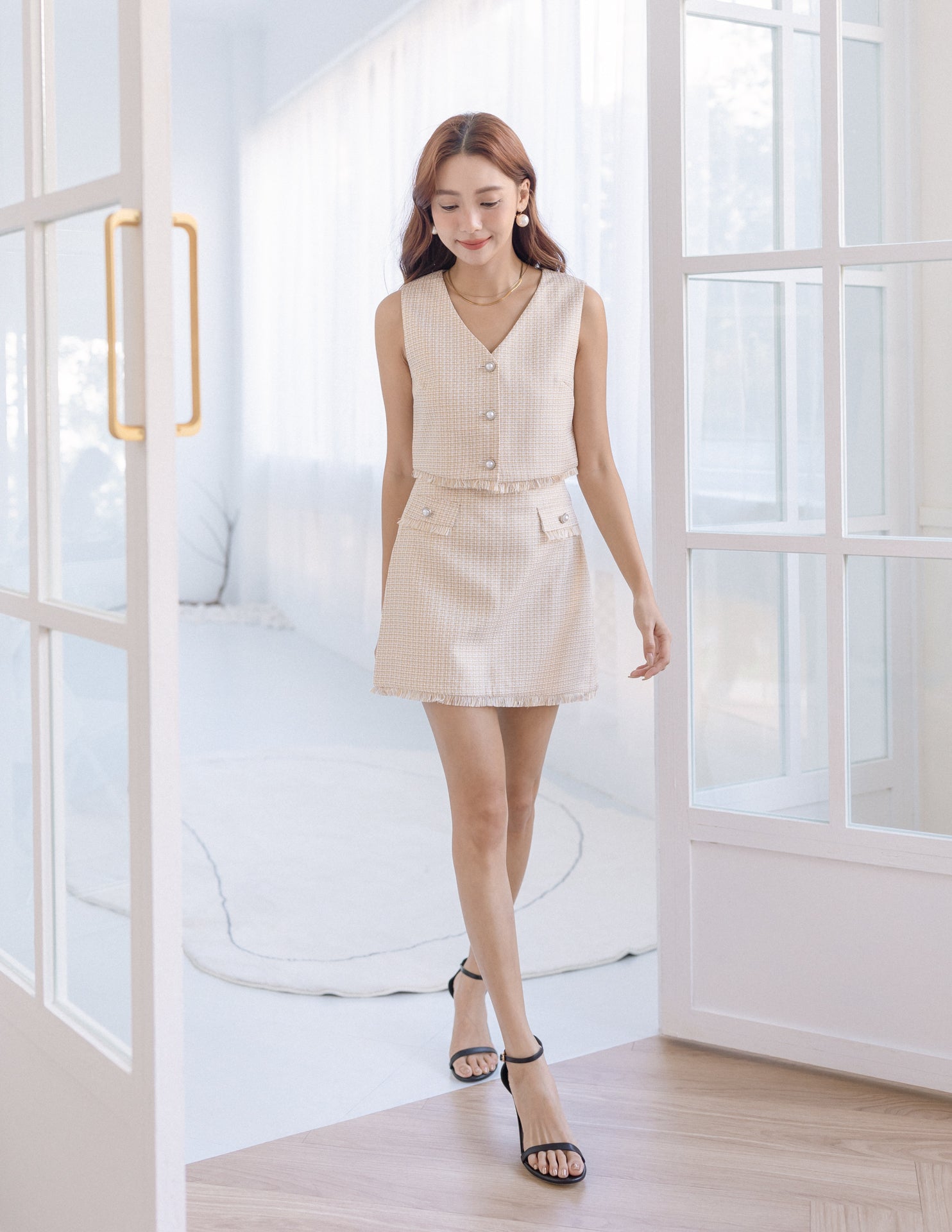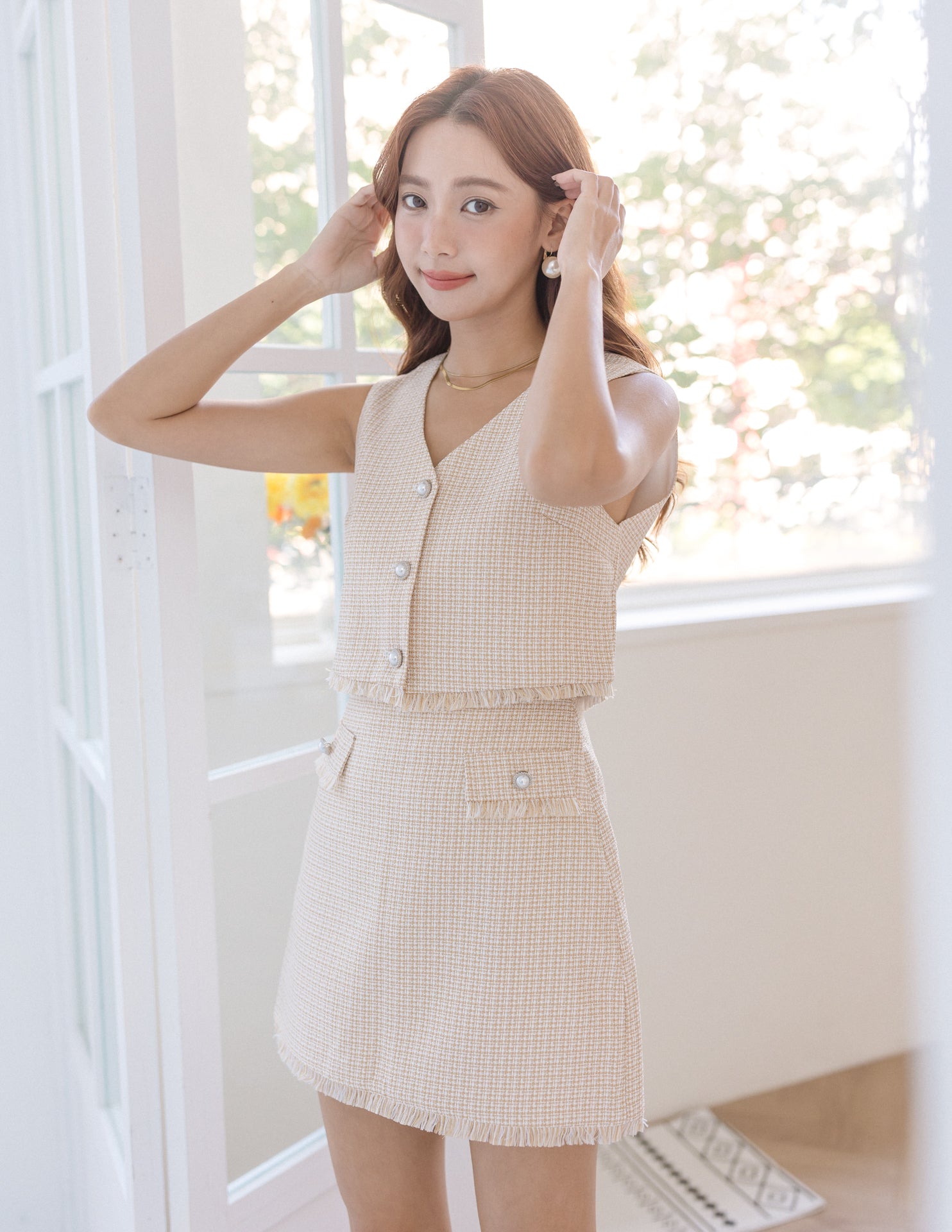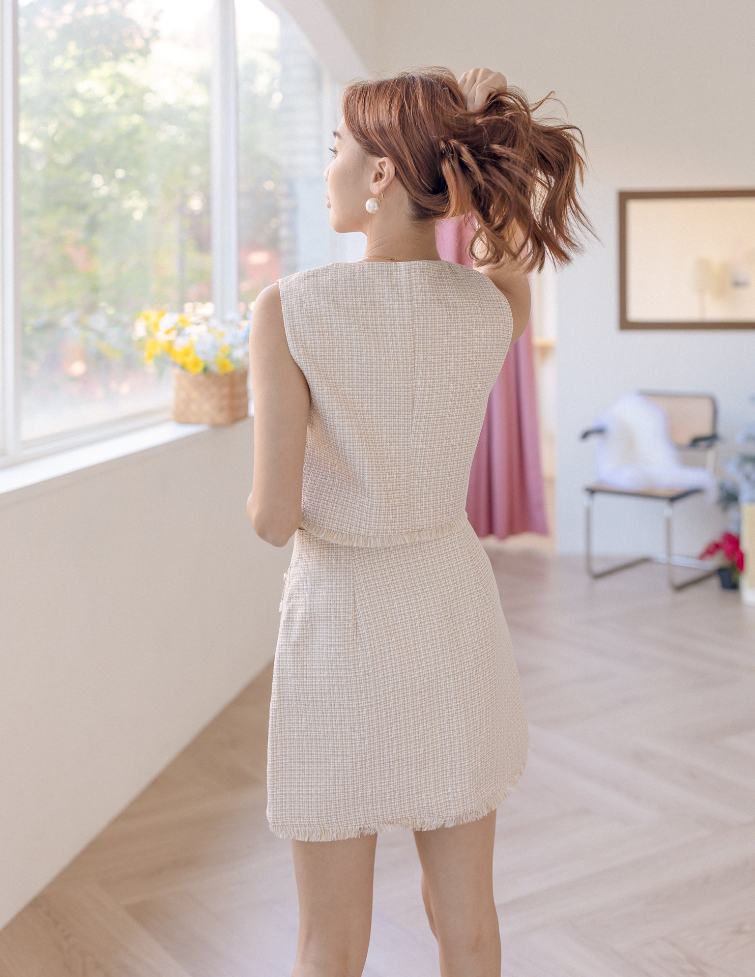Model is 1.57m (15.0" PTP, 12.0" Waist, 16.5" Hip), wearing Size XS