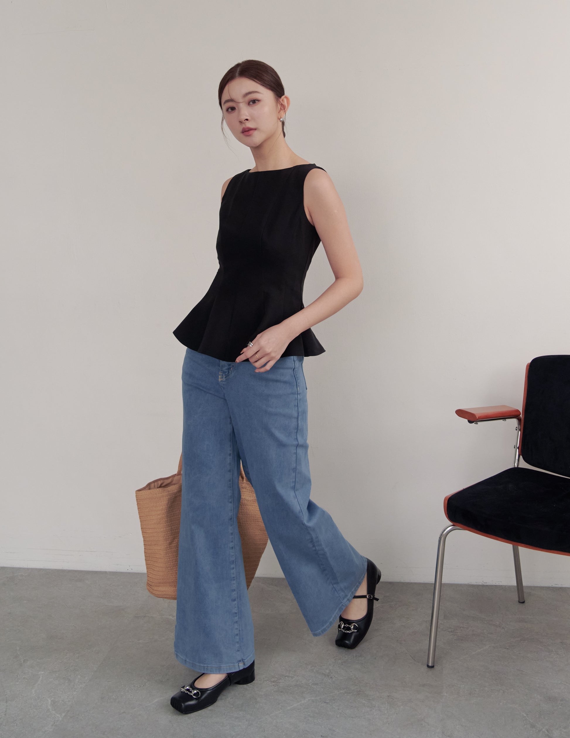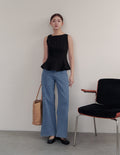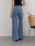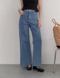 Gemma Stretchy Wide Straight Jeans in Mid Wash