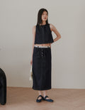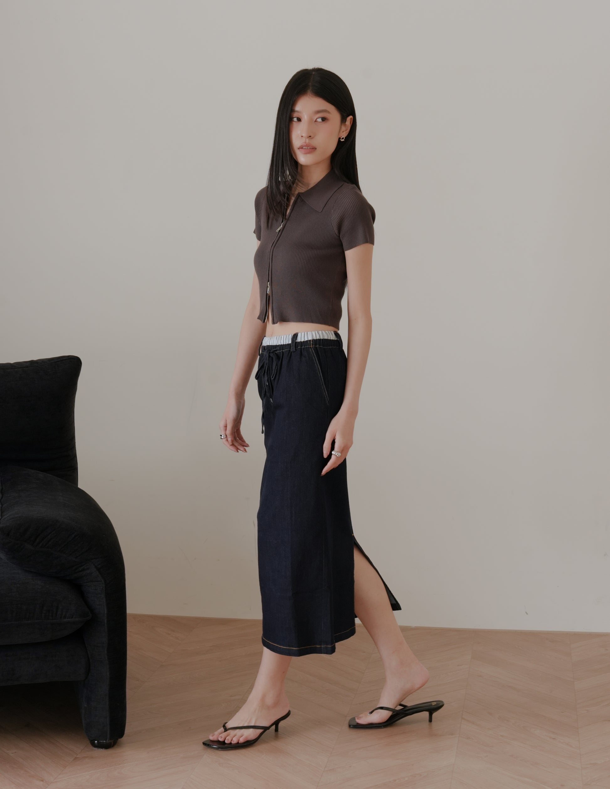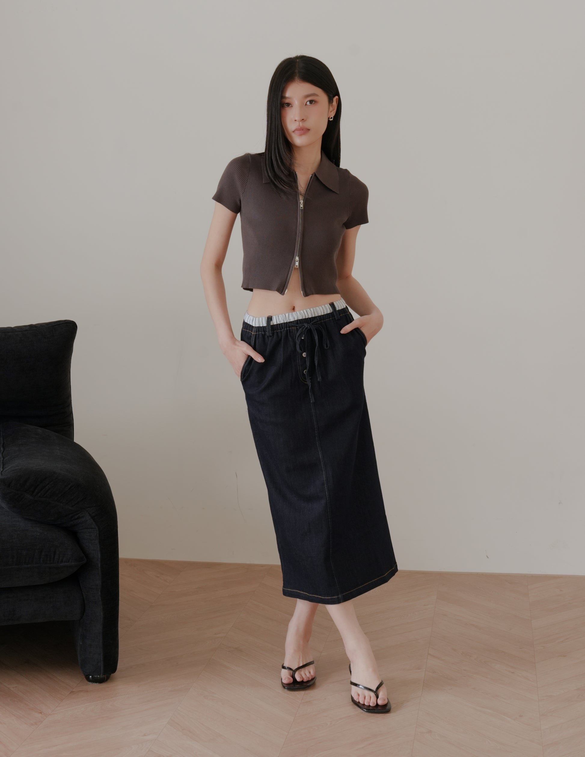 Ivy Contrast Waist Denim Skirt in Dark Wash