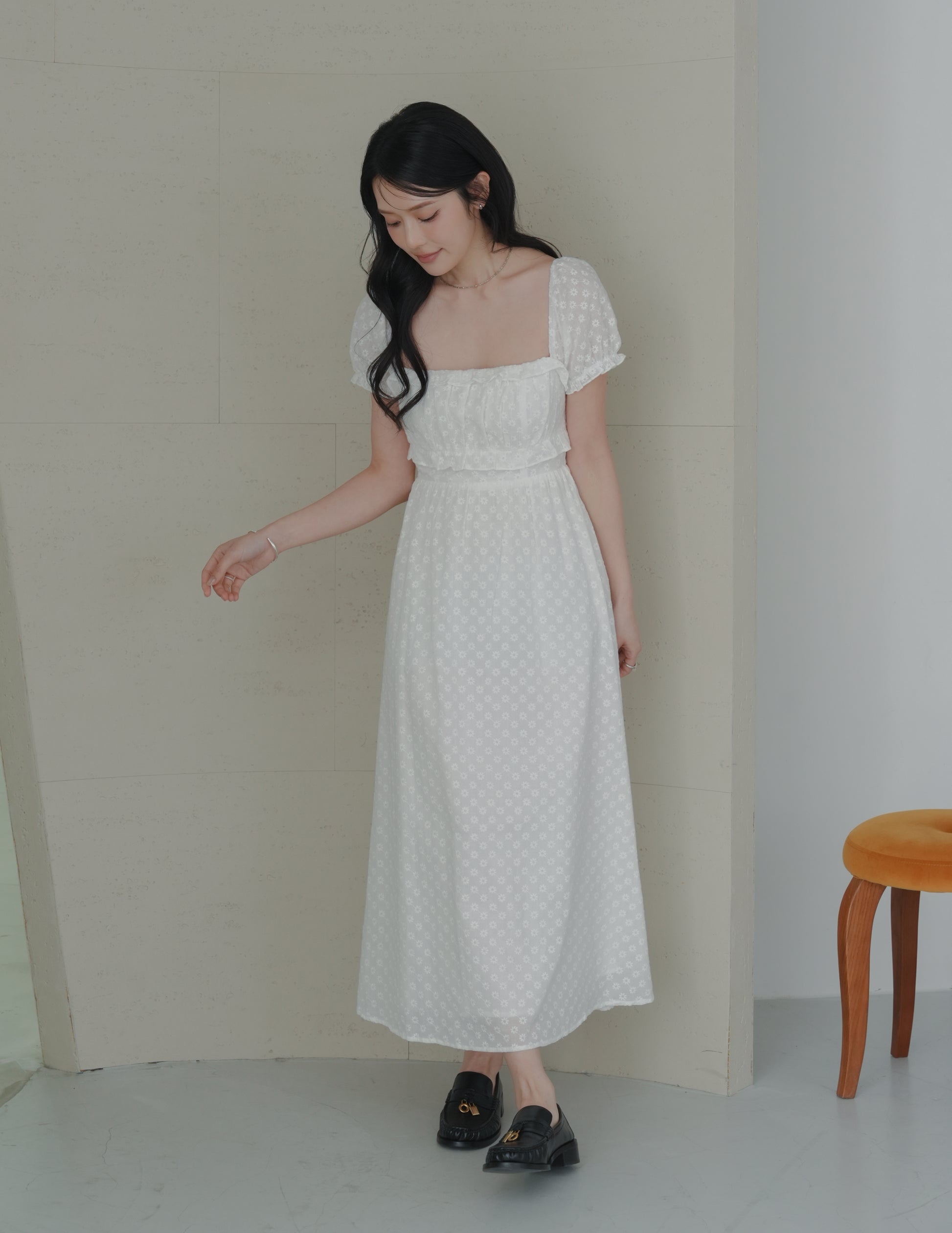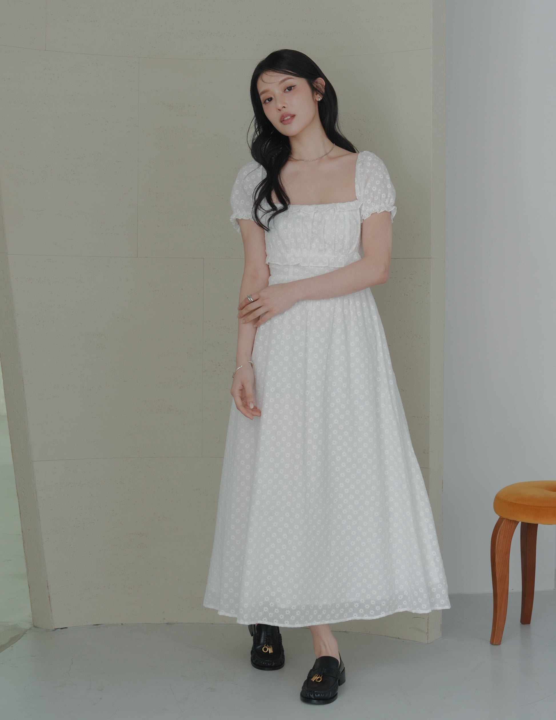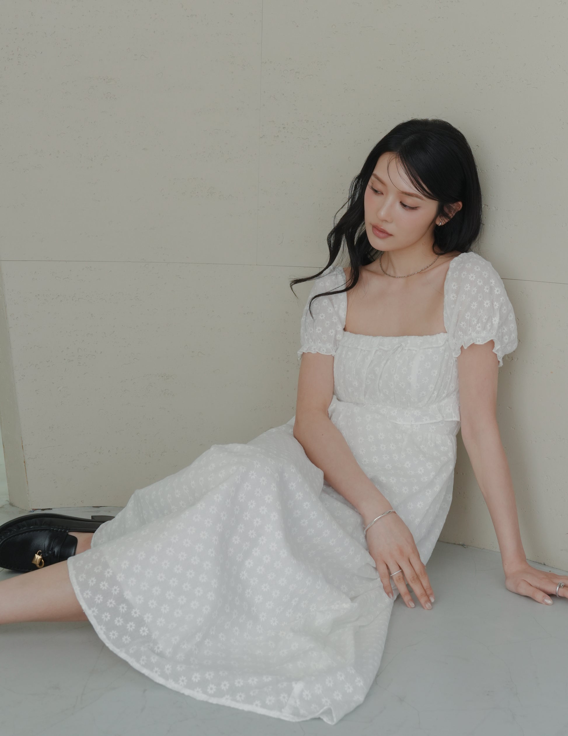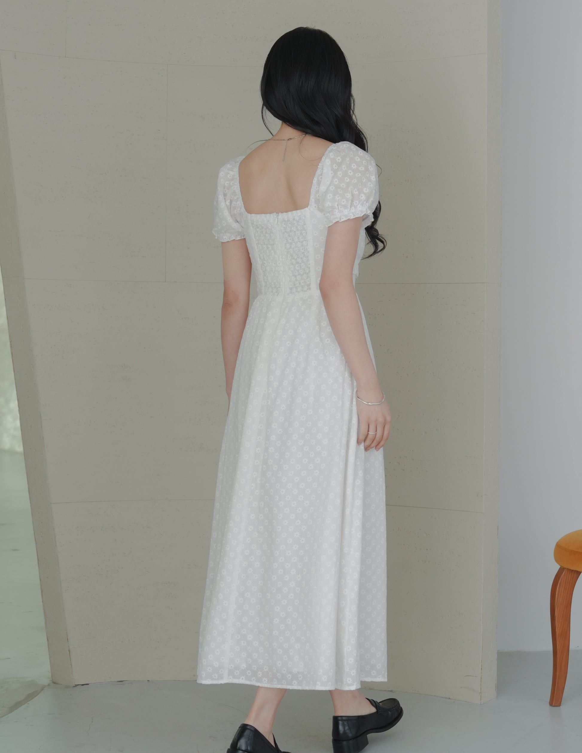 Jasmine Padded Maxi Dress in Daisy Eyelet