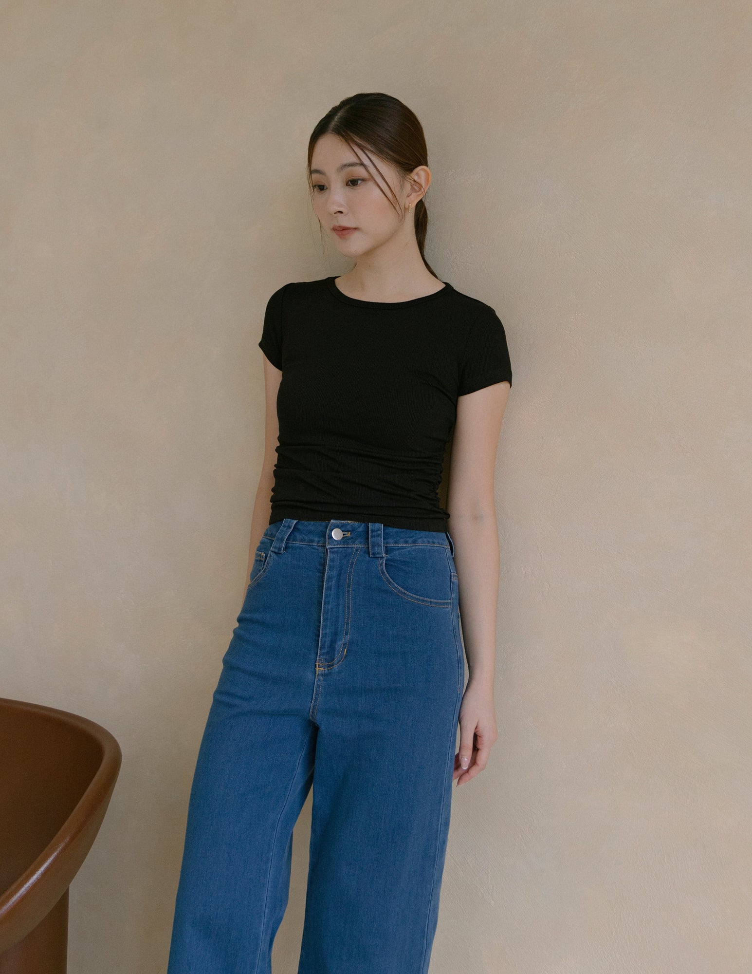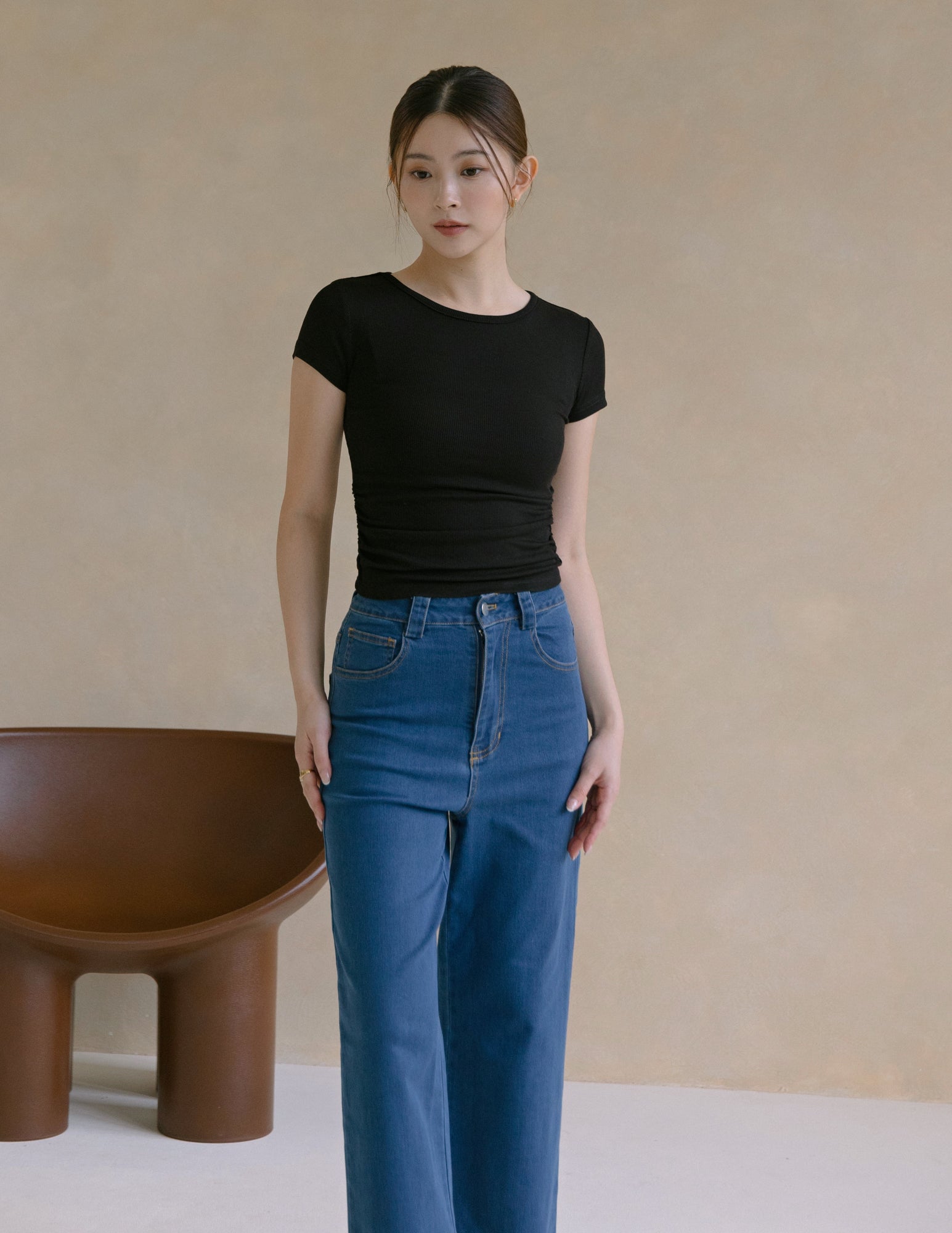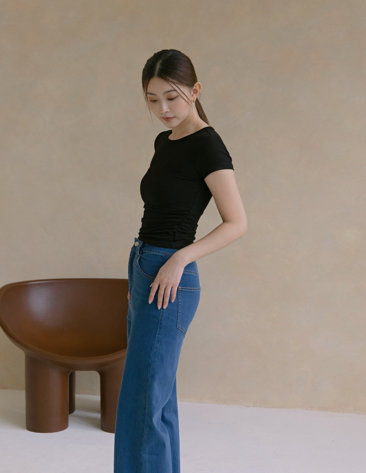 Kace Ruched Tee in Black