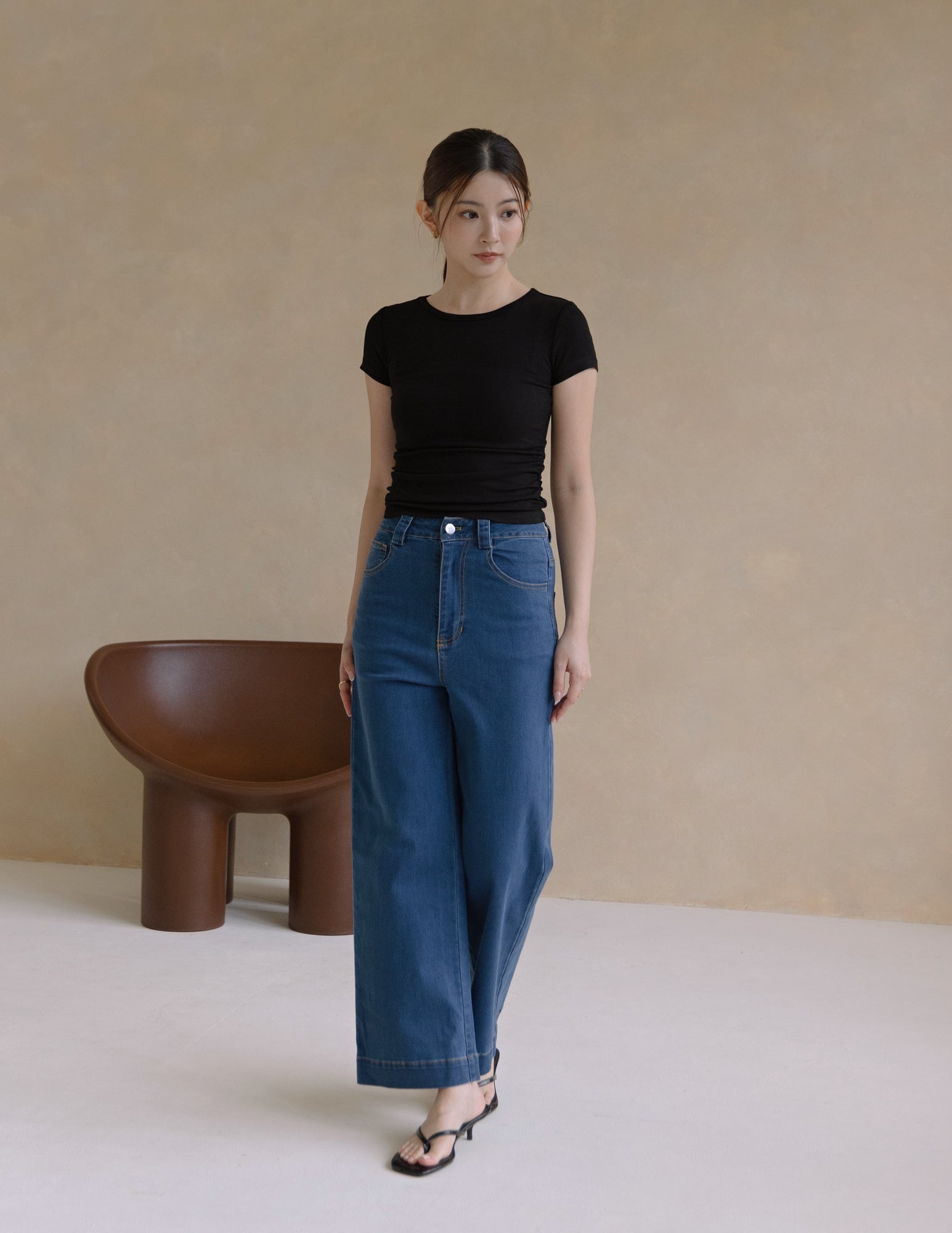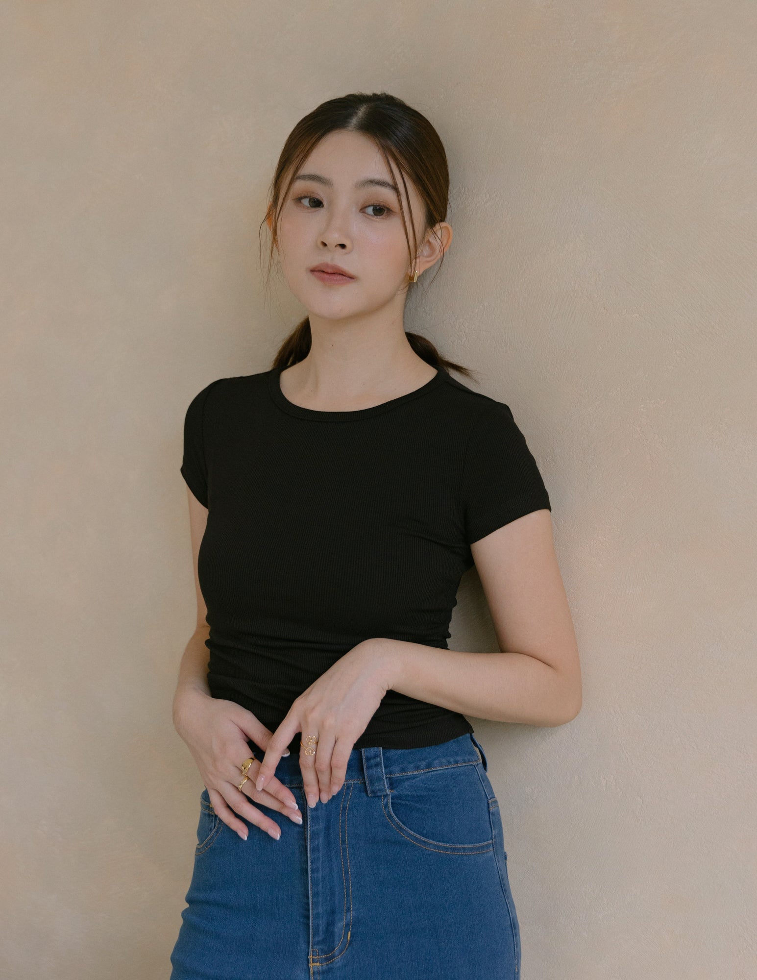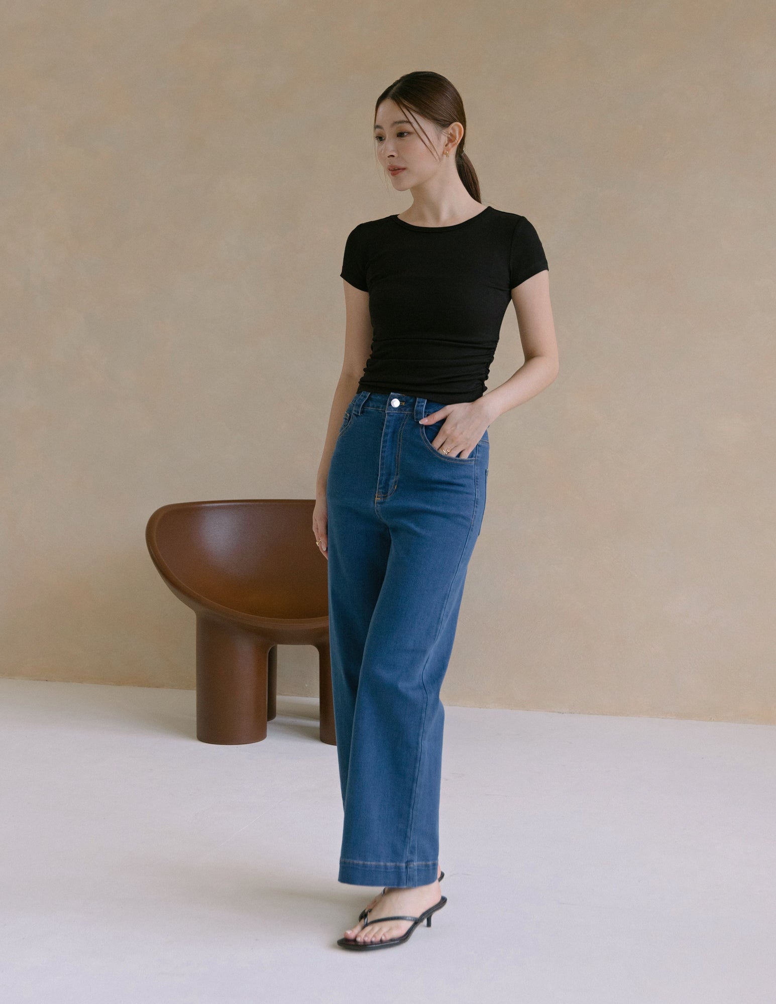 Kace Ruched Tee in Black