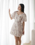 Katie Floral Bubble Dress in Lilac Grey