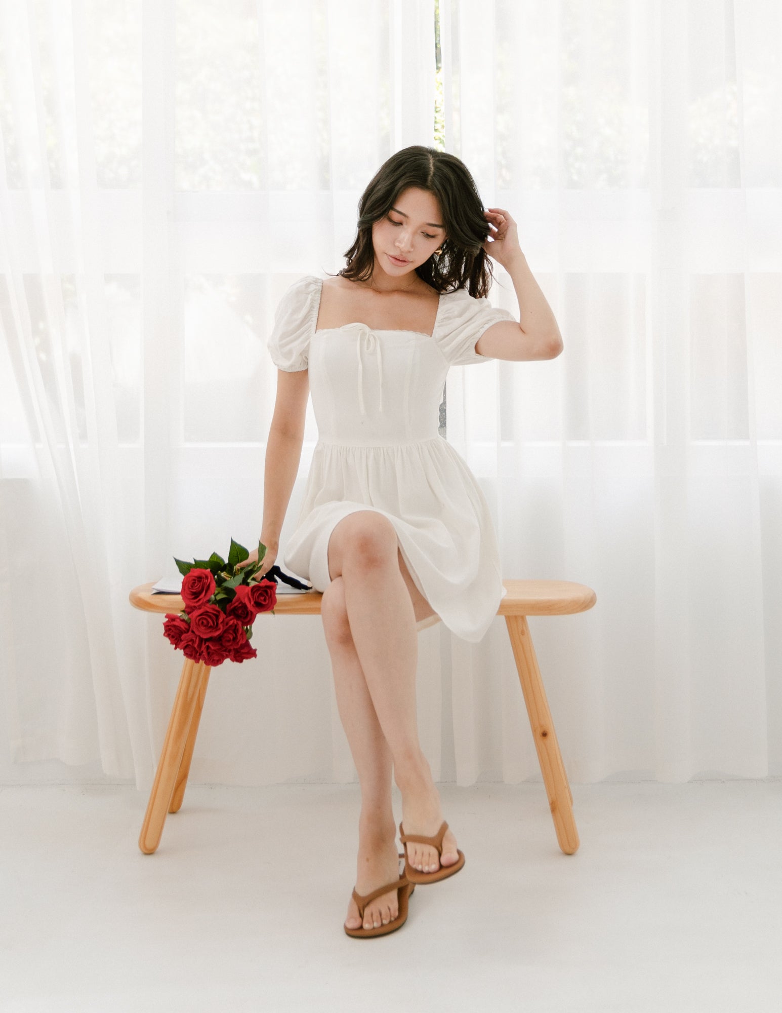 Model is 1.62m, (15.0" PTP, 12.0" Waist, 17.0" Hip), wearing size XS