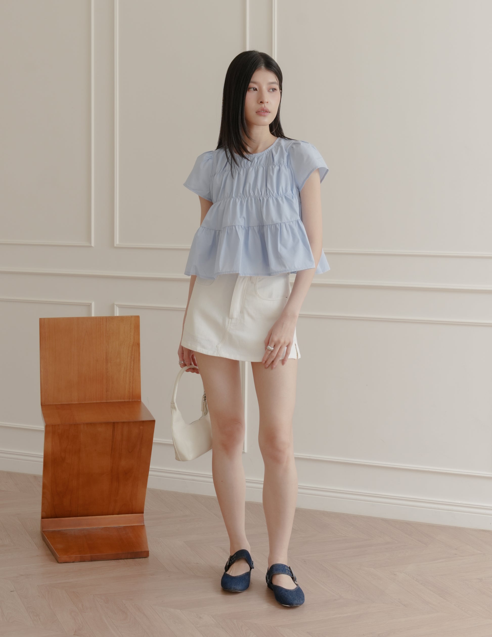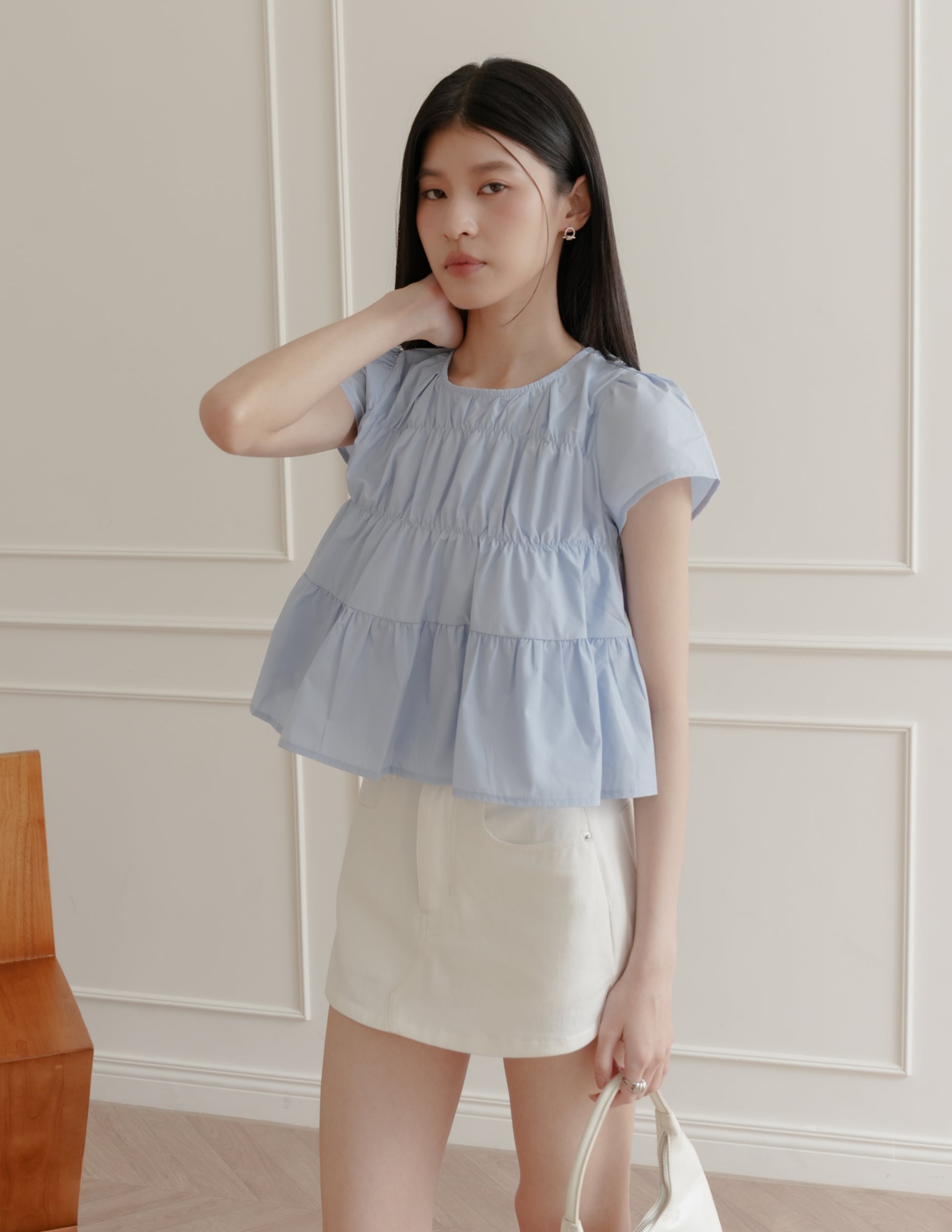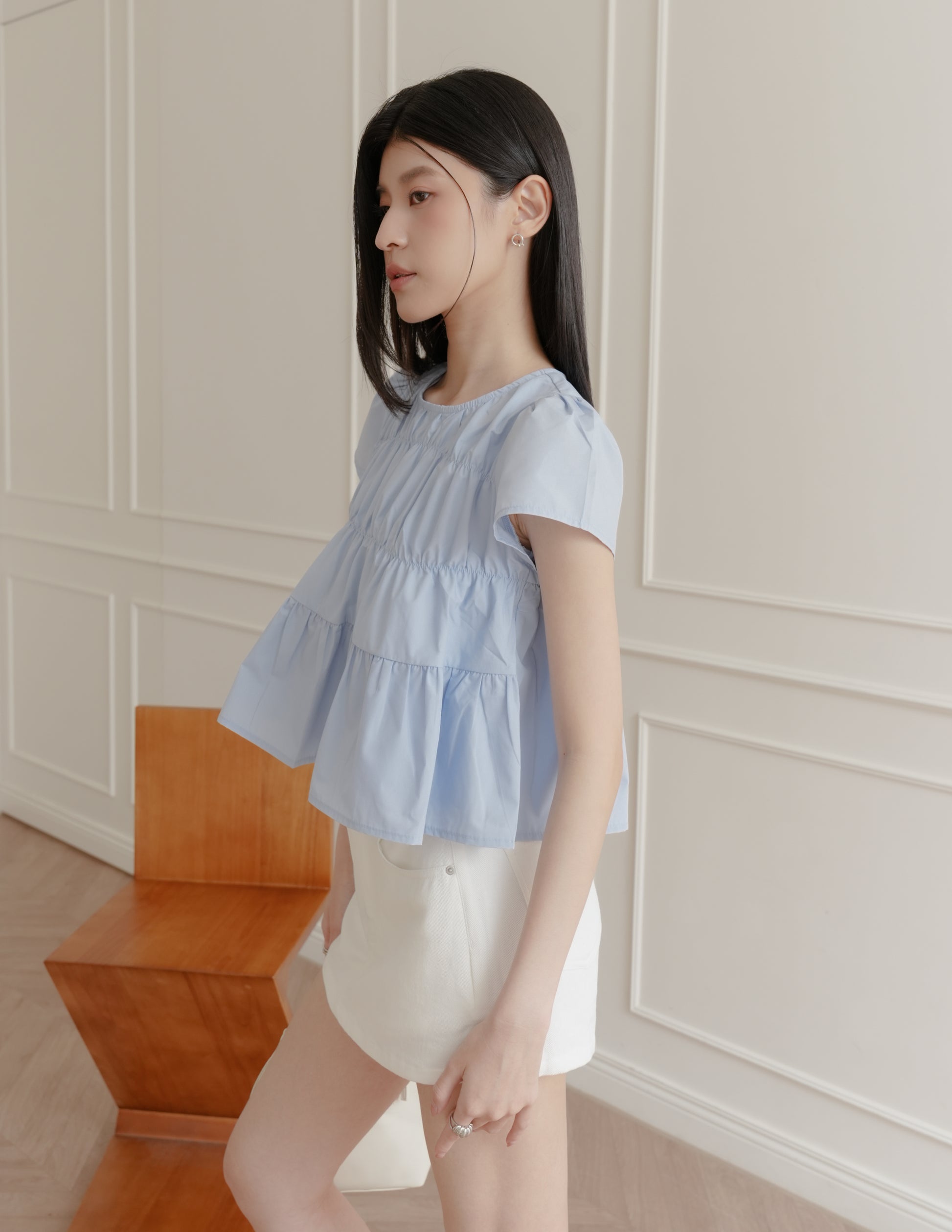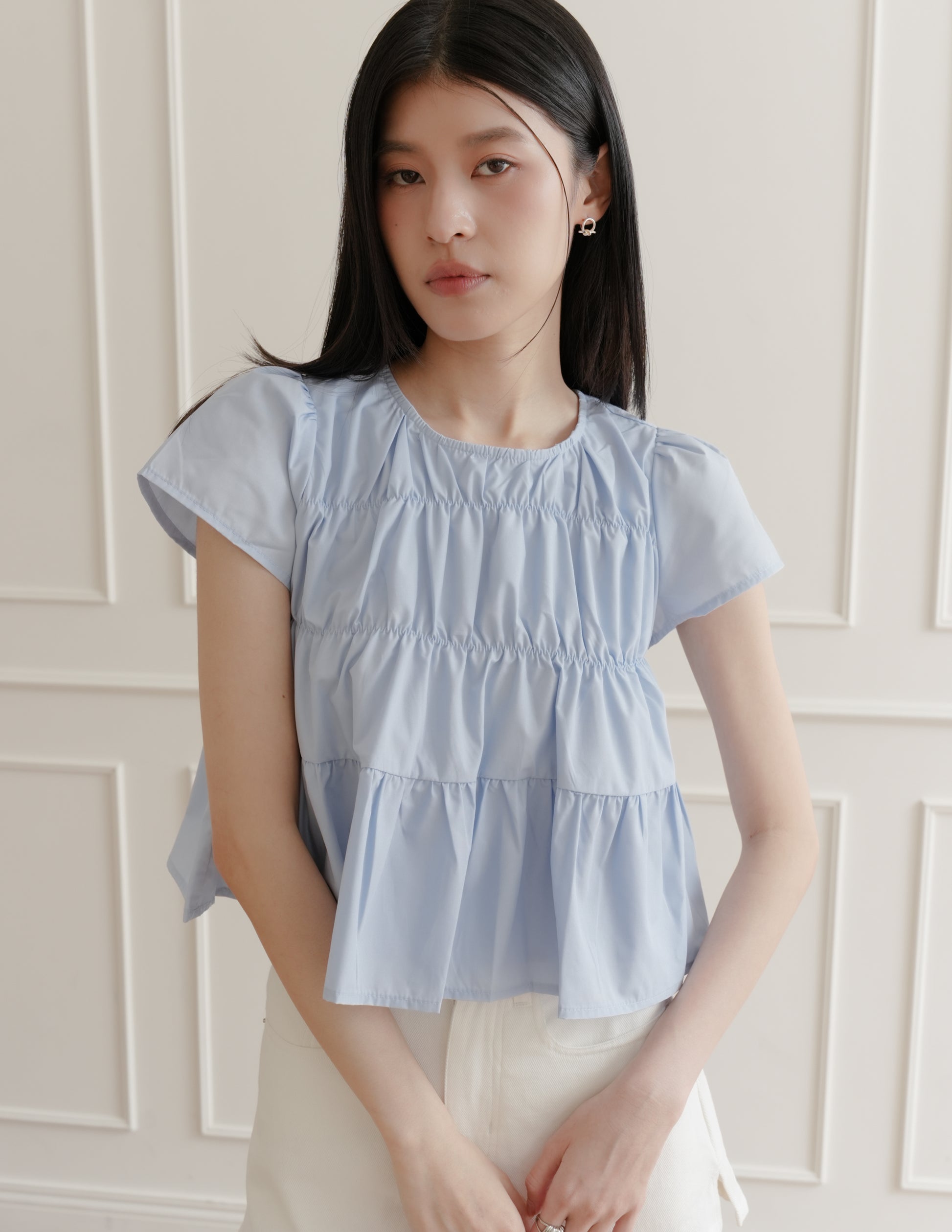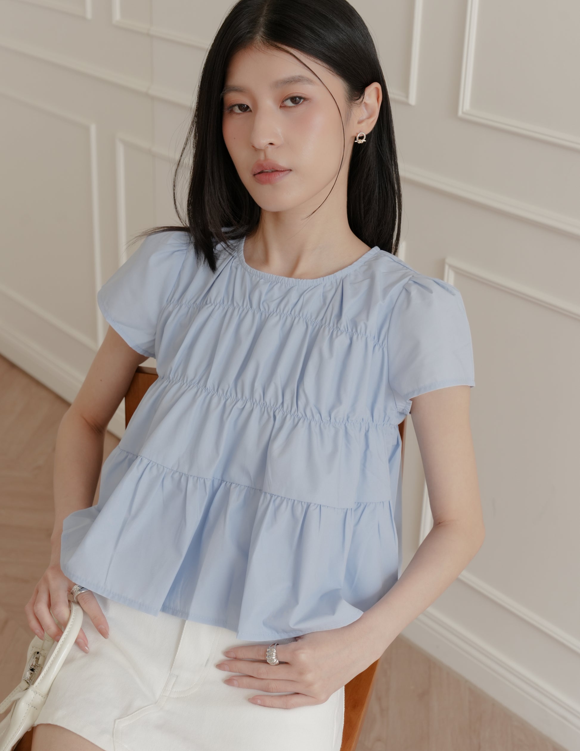 Kimberly Tiered Babydoll Top in Blue