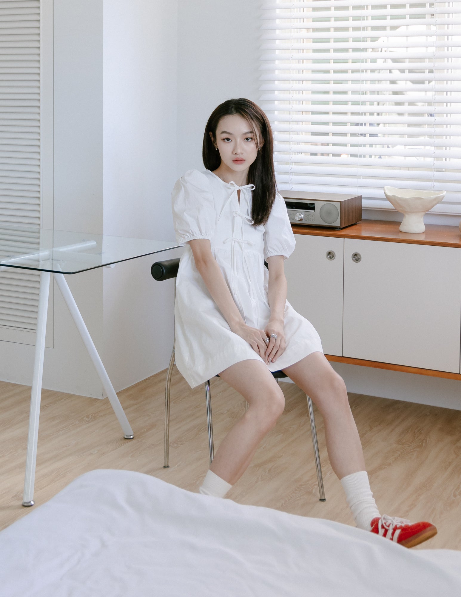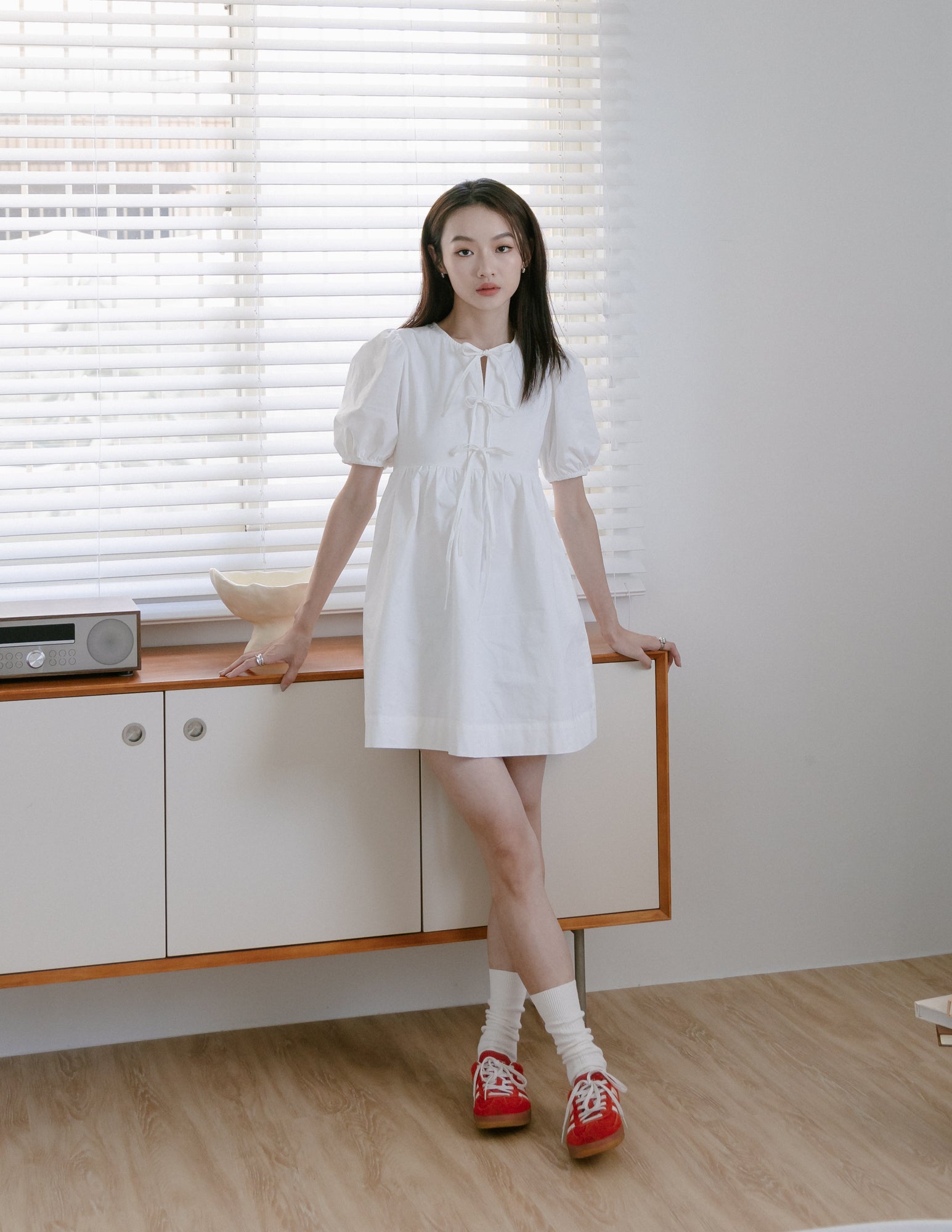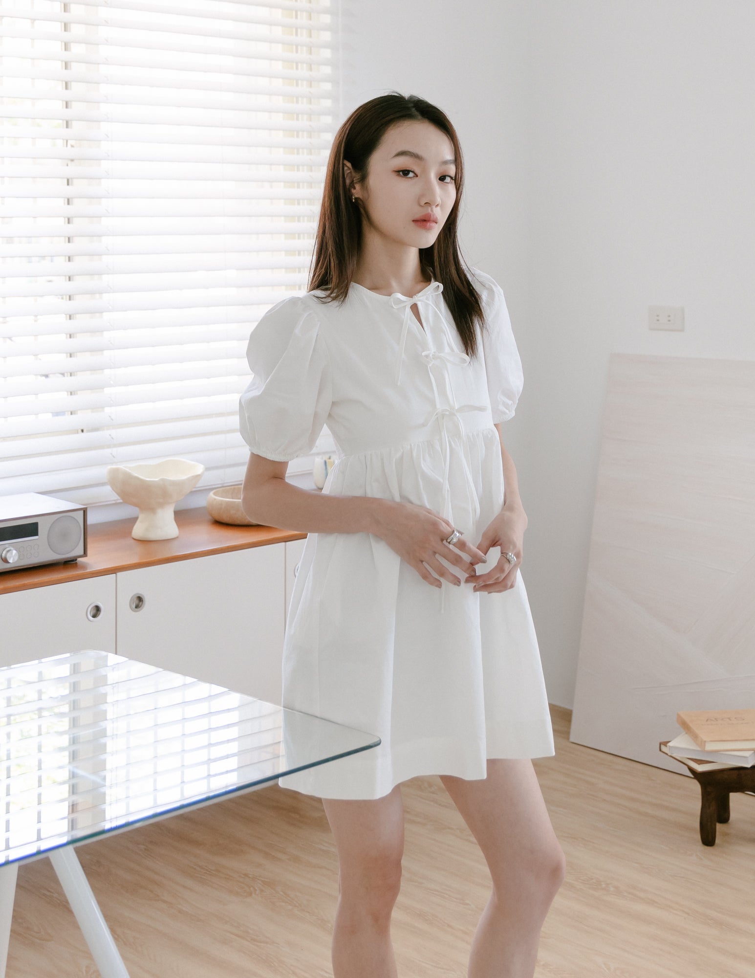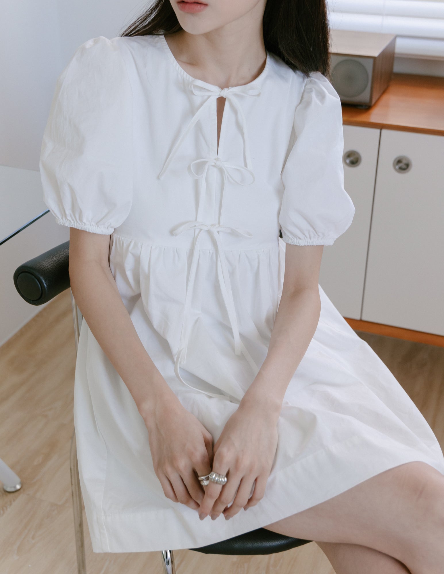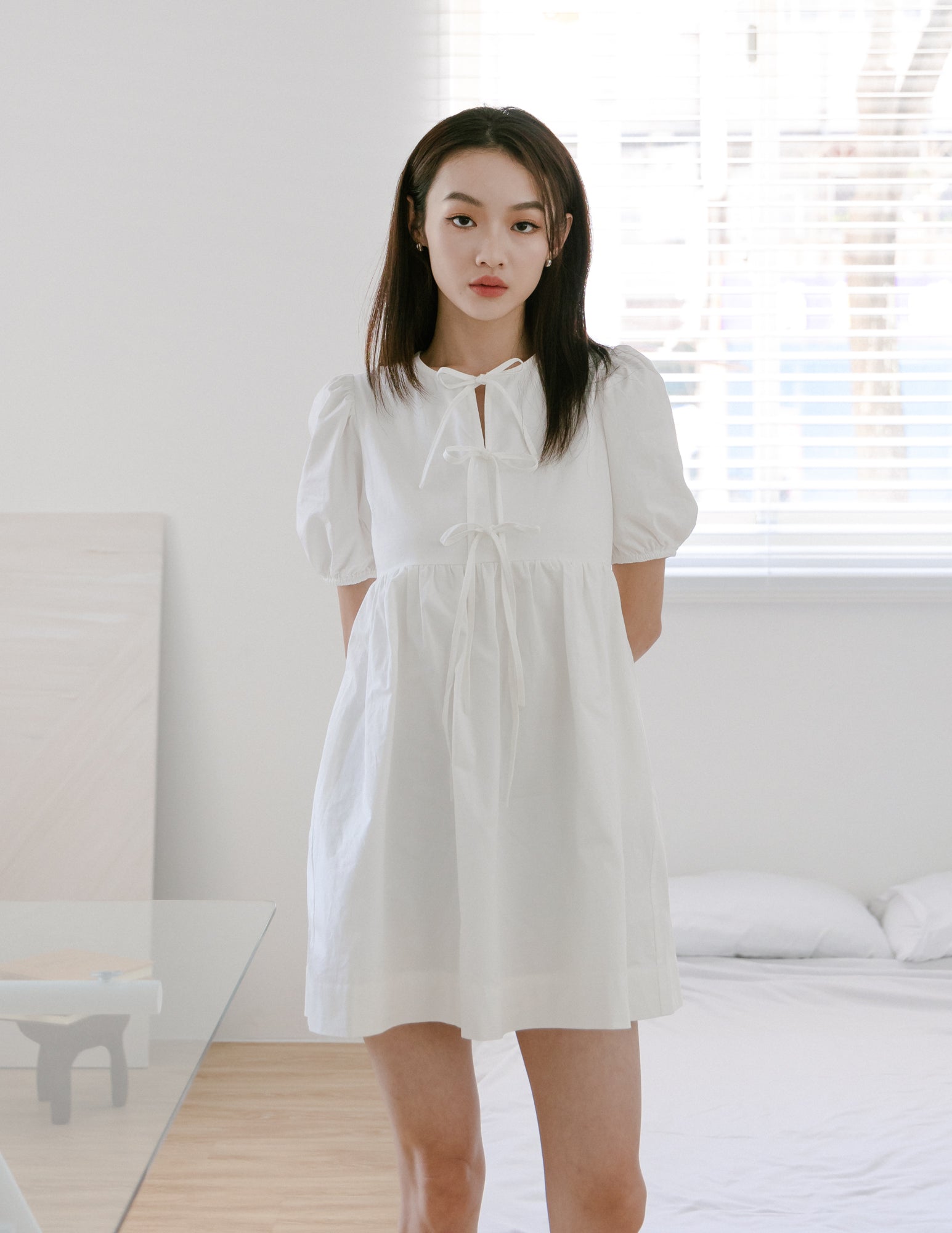 Laura Tie Front Babydoll Dress in White