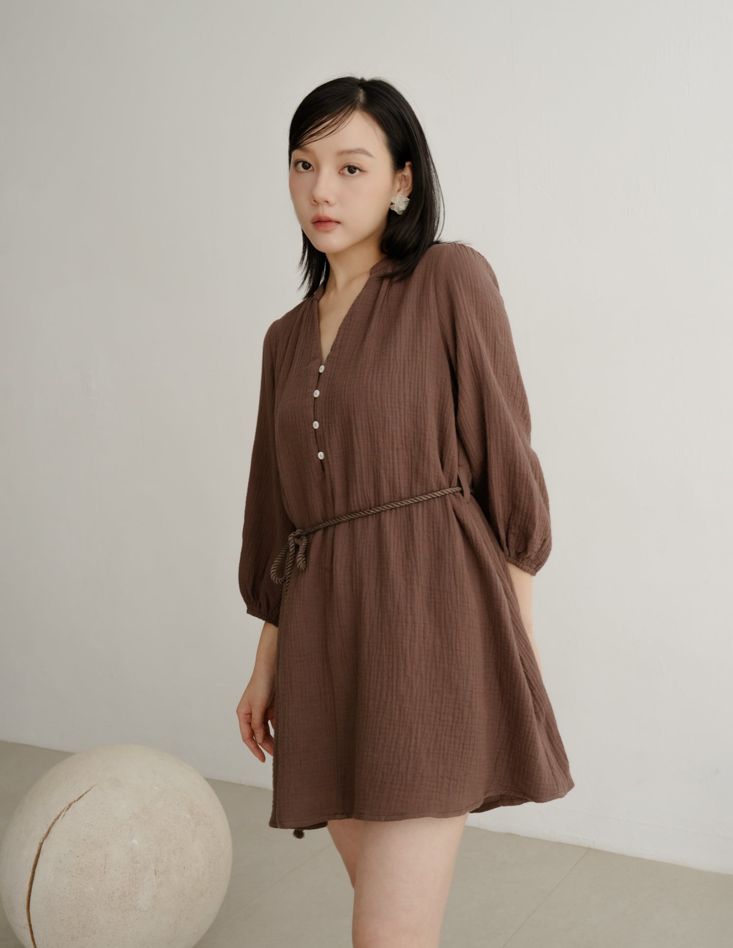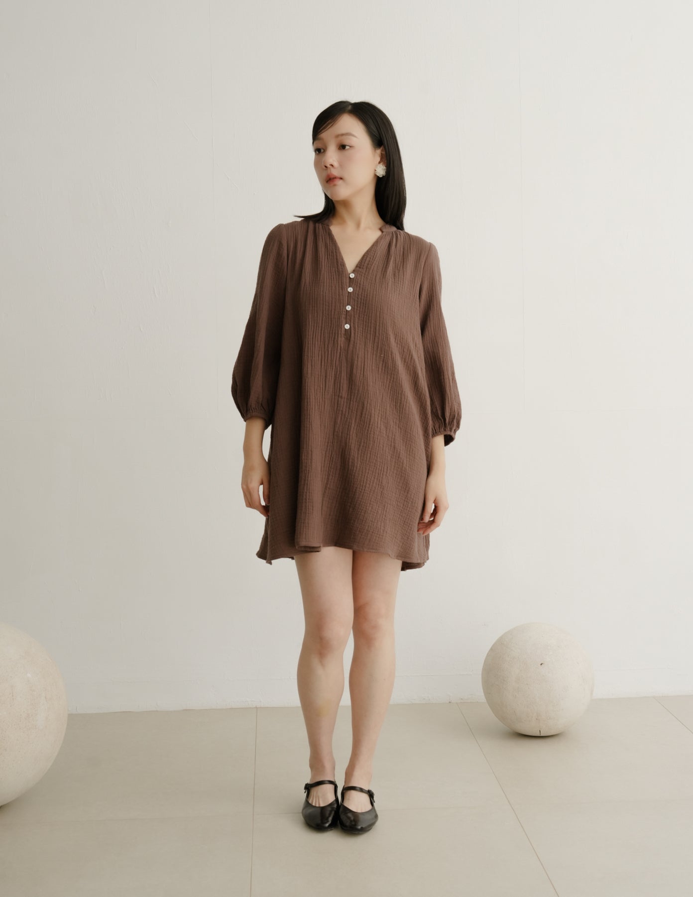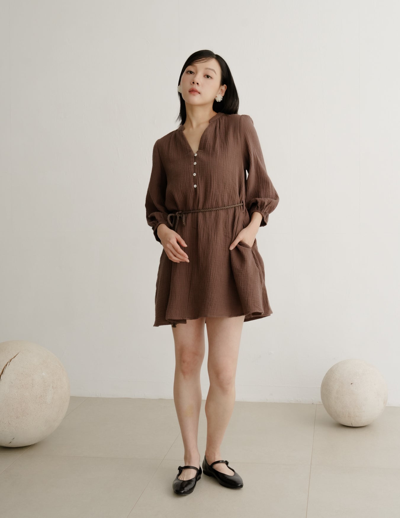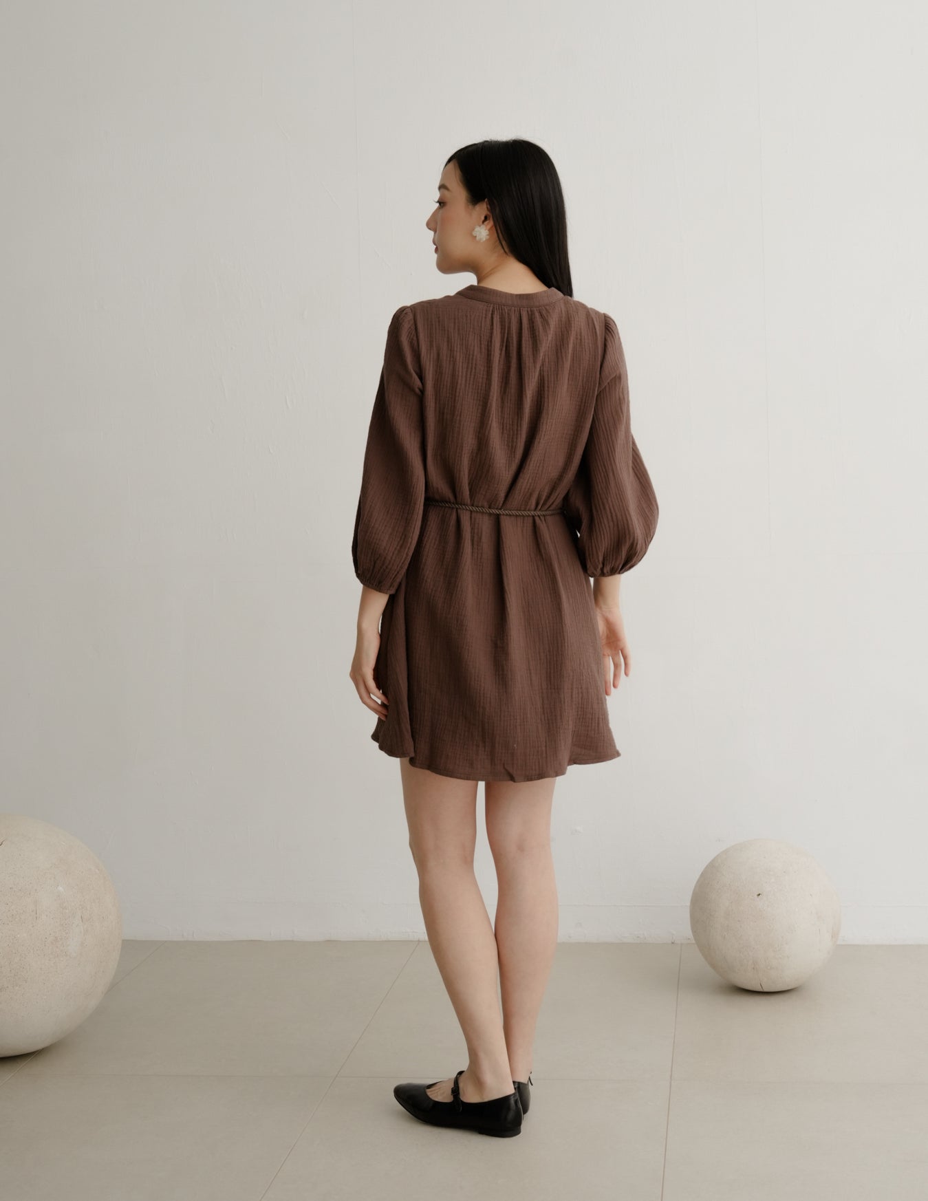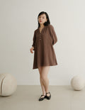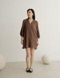 Lillie Muslin Mini Dress in Brown