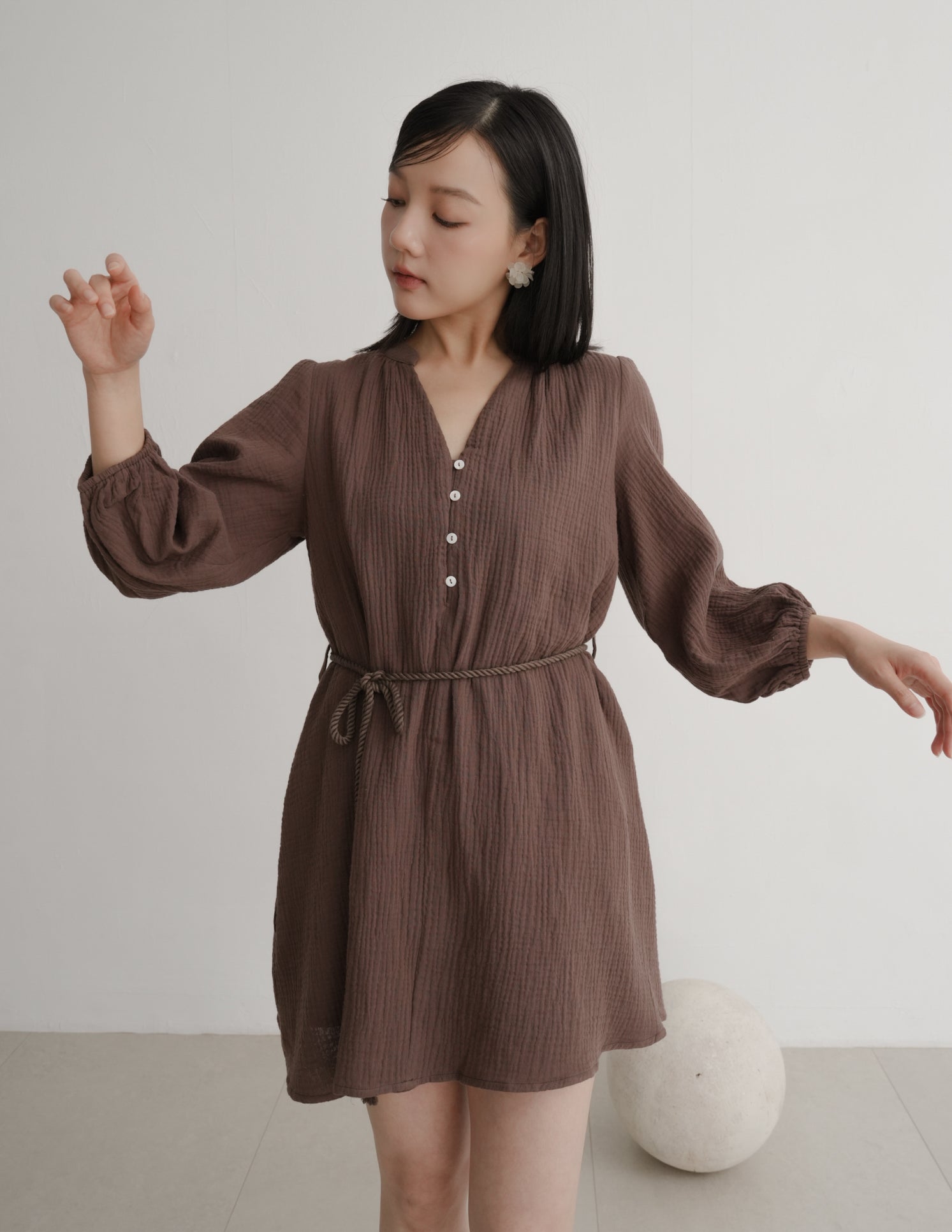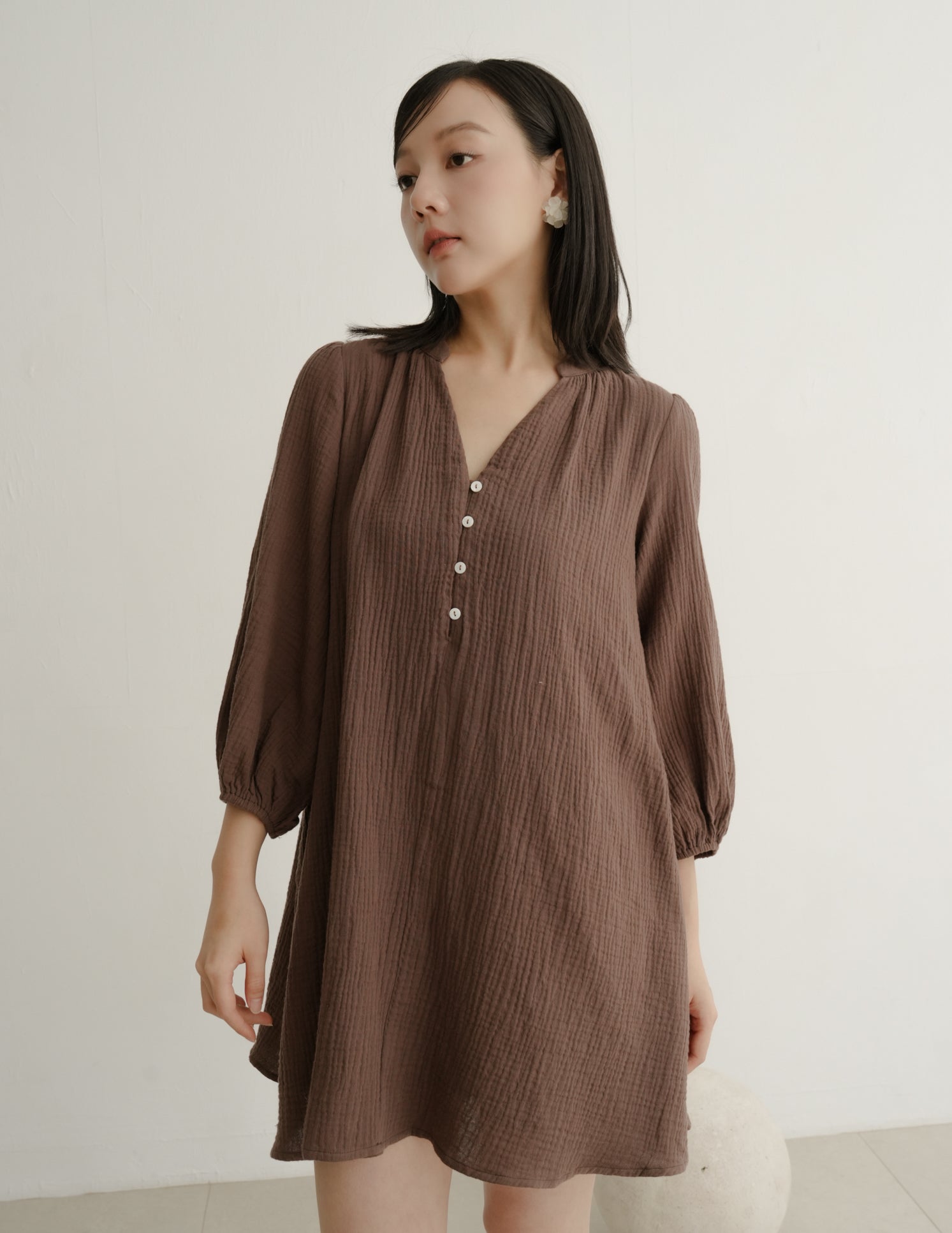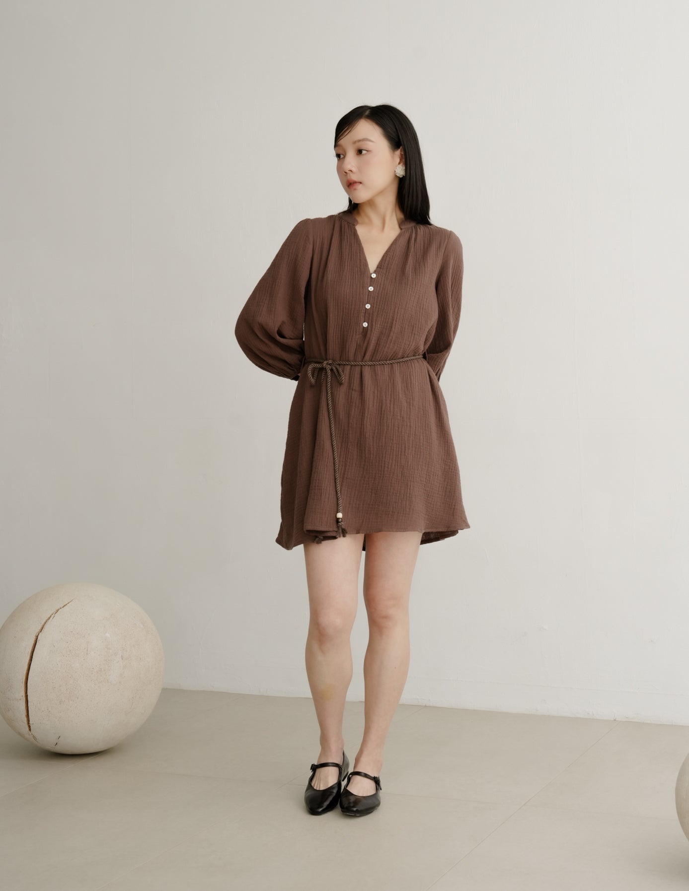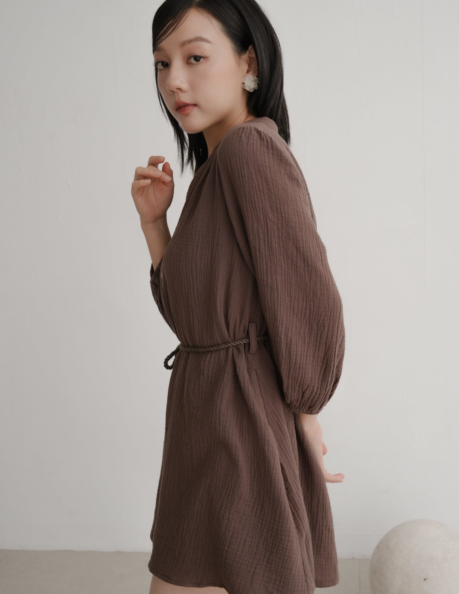 Lillie Muslin Mini Dress in Brown