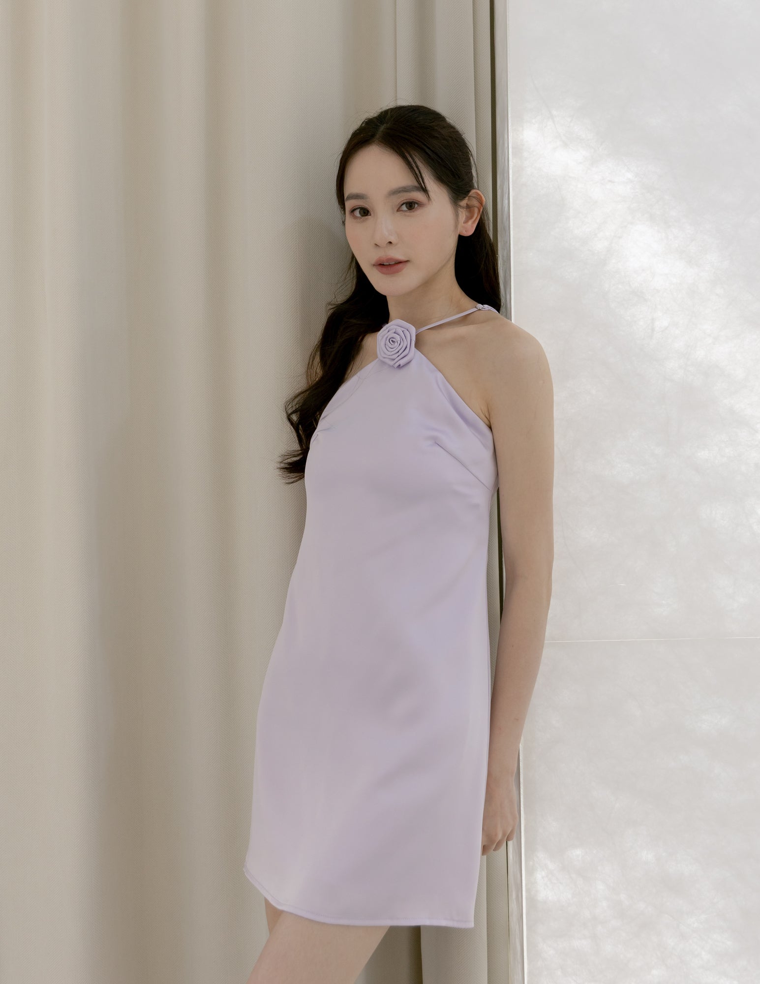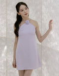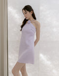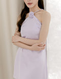 Lyra Satin Halter Dress in Lilac
