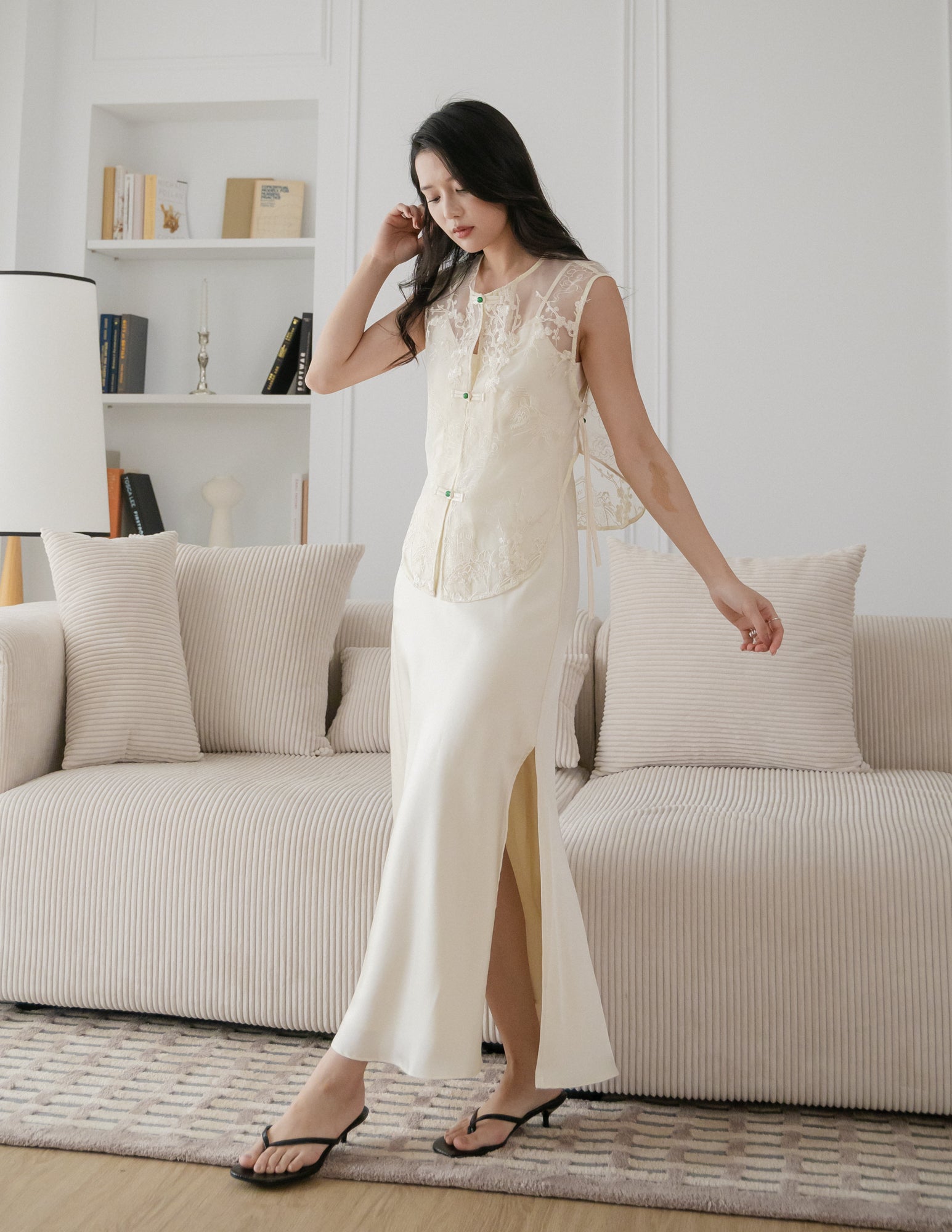 Maggie 2-Piece Oriental Maxi Dress in Ivory