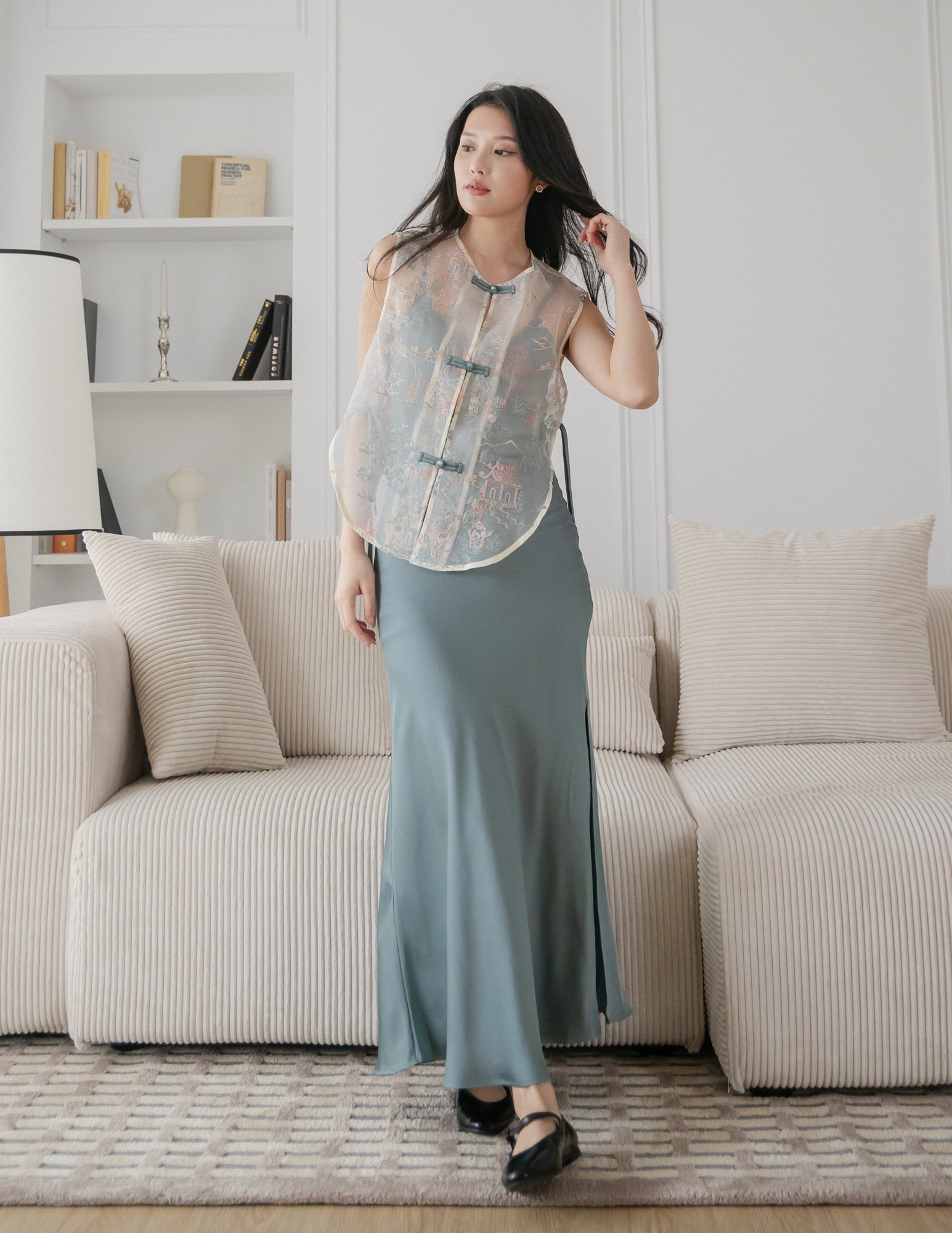 Maggie 2-Piece Oriental Maxi Dress in Teal