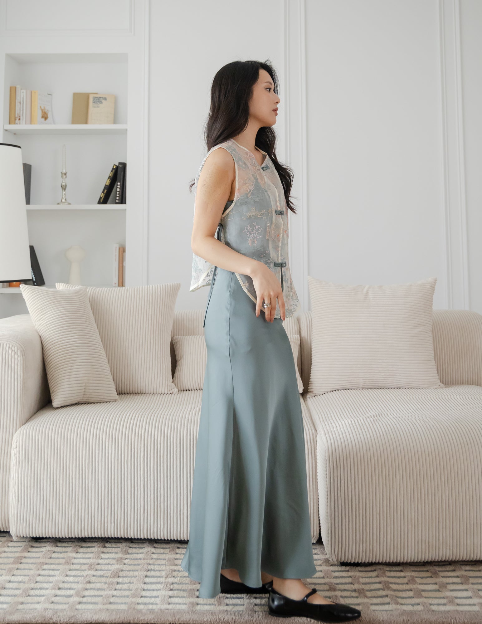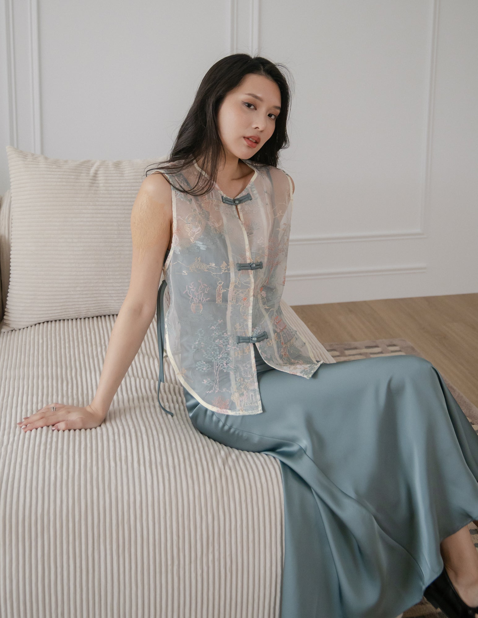 - Zi En 165cm (15.0" PTP, 12.5" Waist, 17.5" Hip) wears Size XS