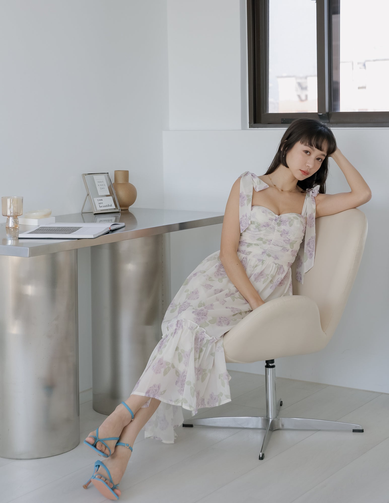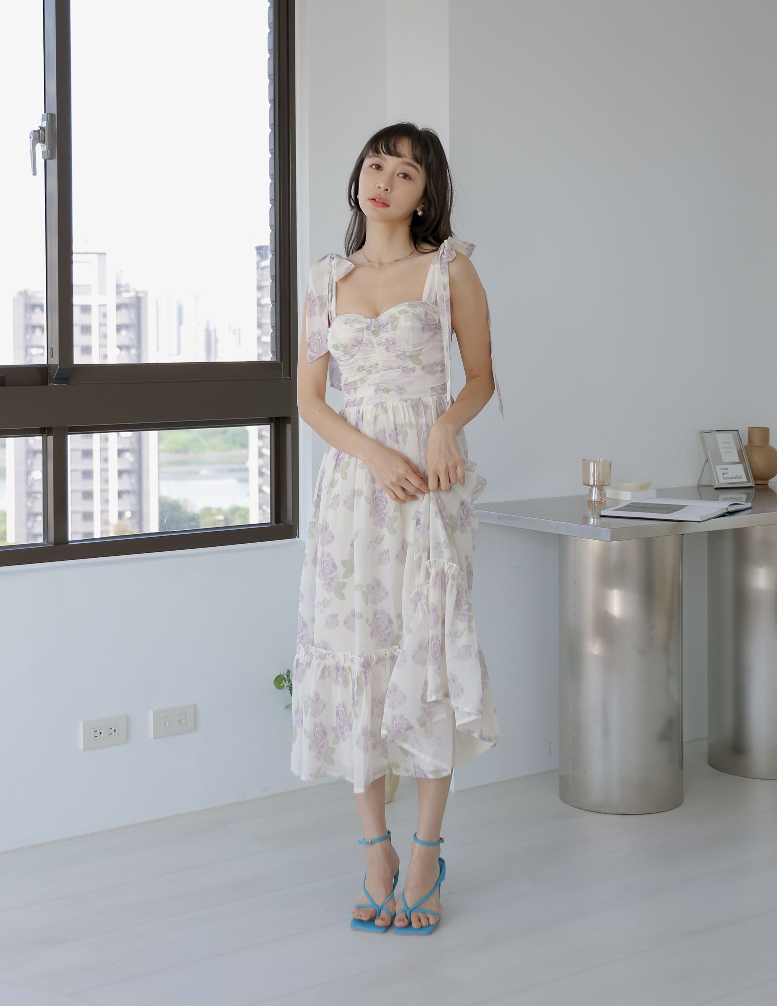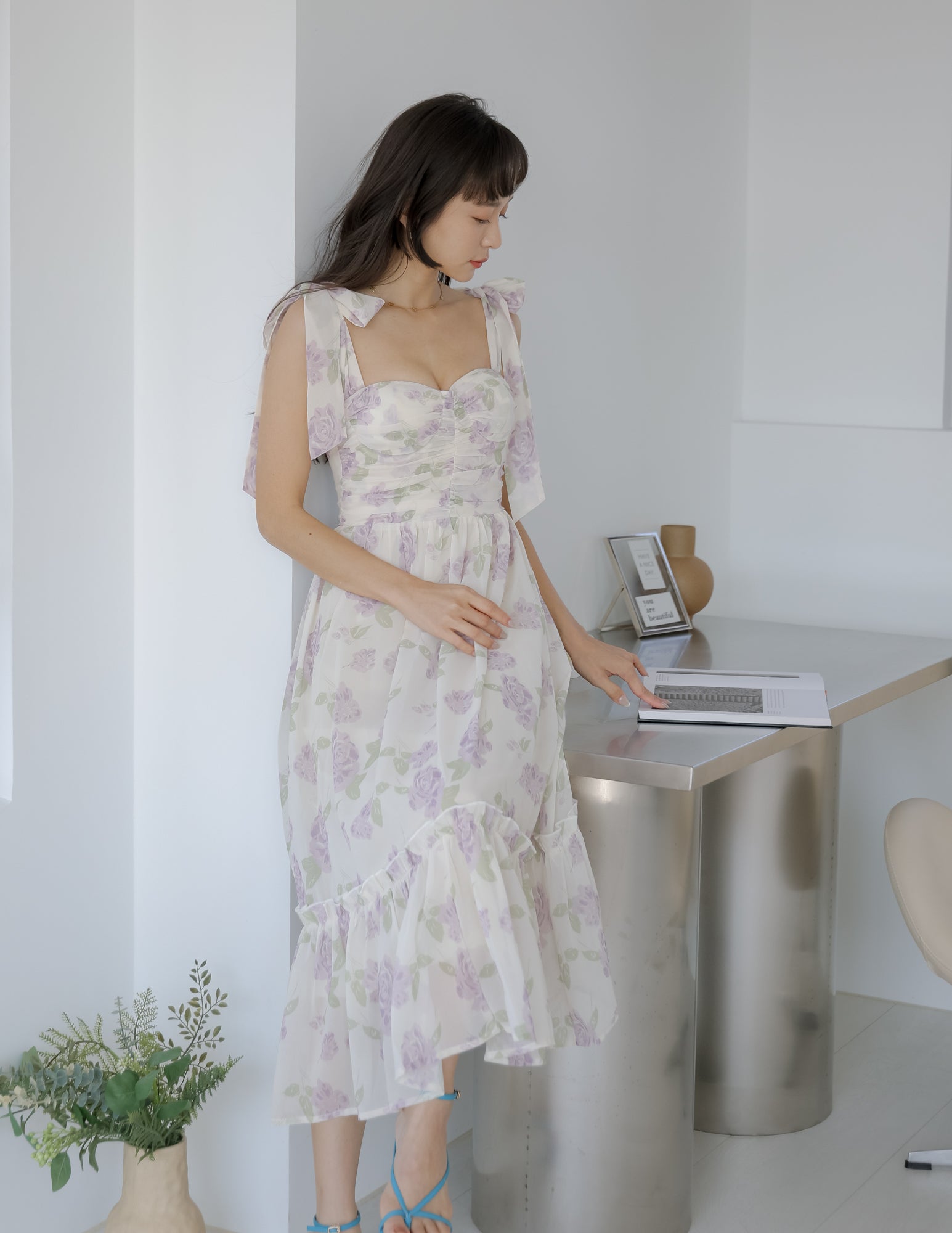 Melissa Floral Padded Dress in Purple