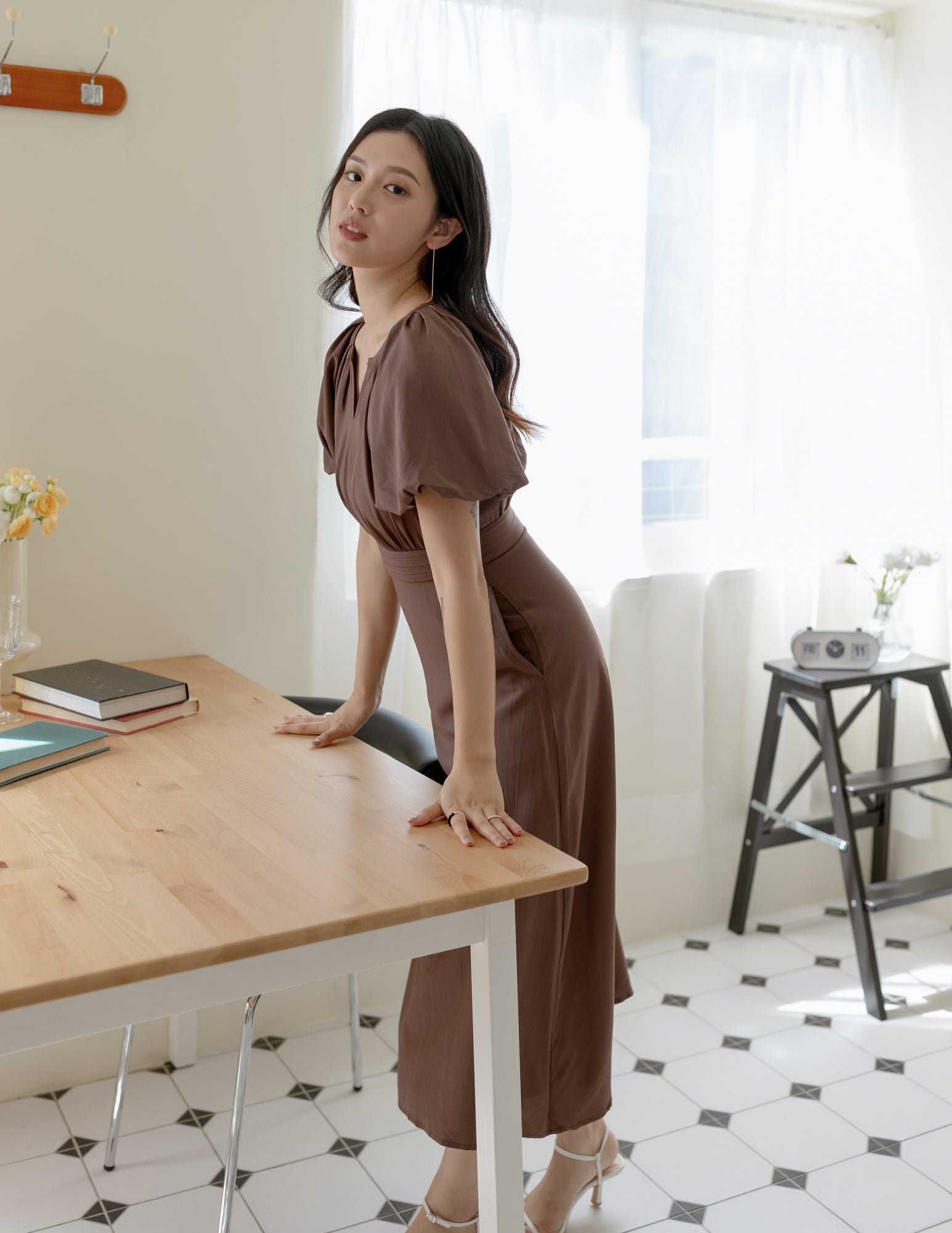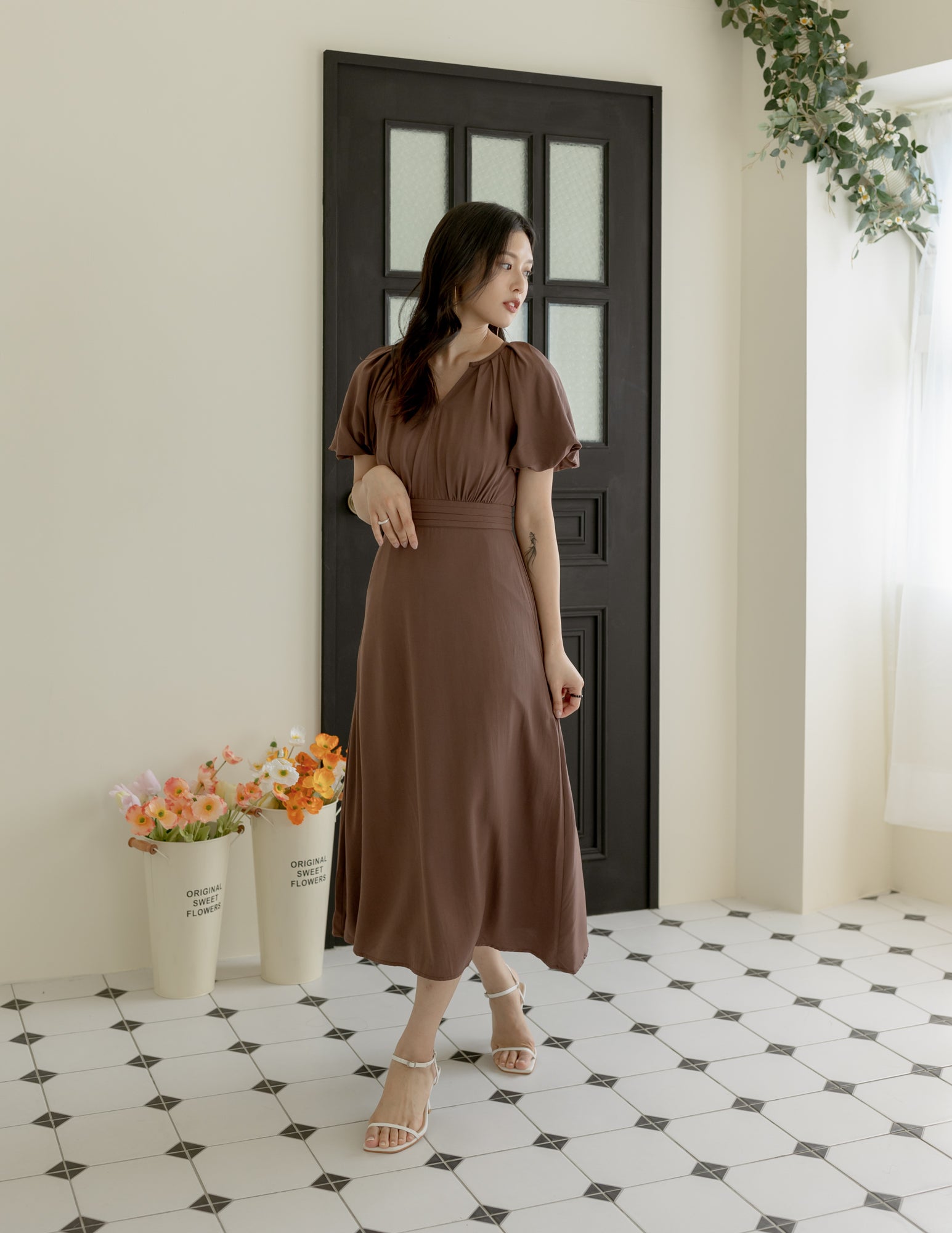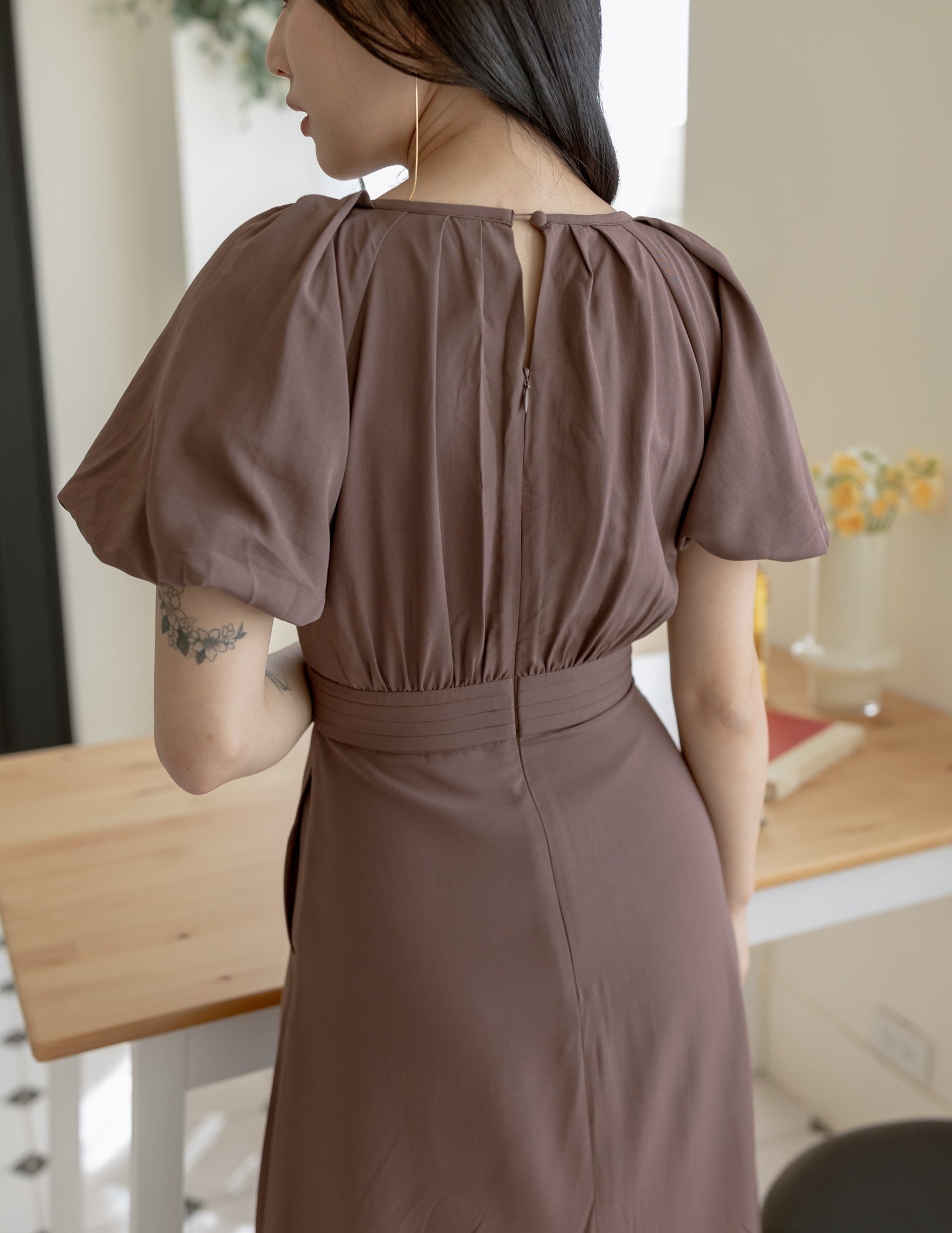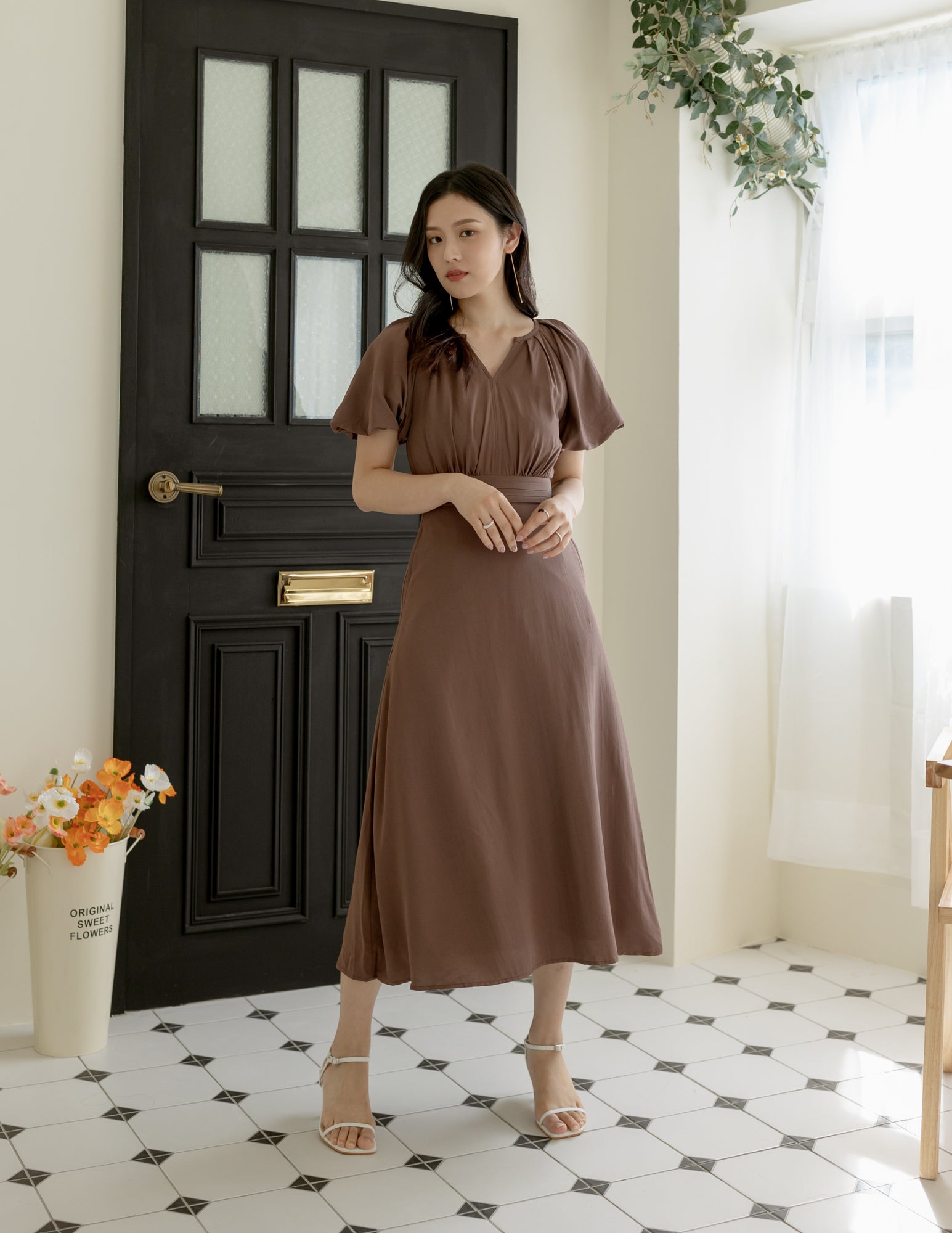 Ophelia Midi Dress in Brown