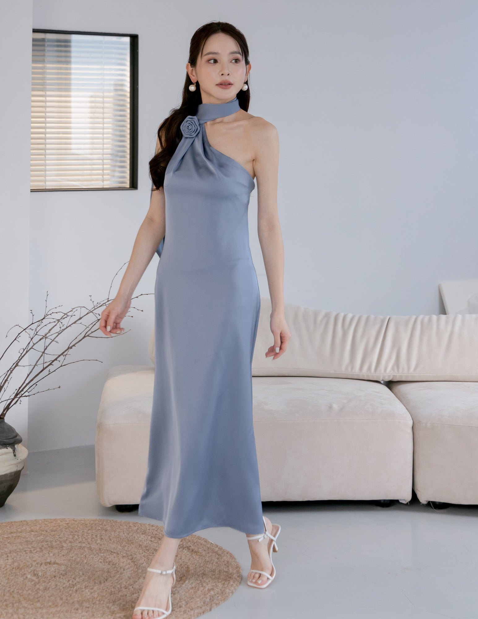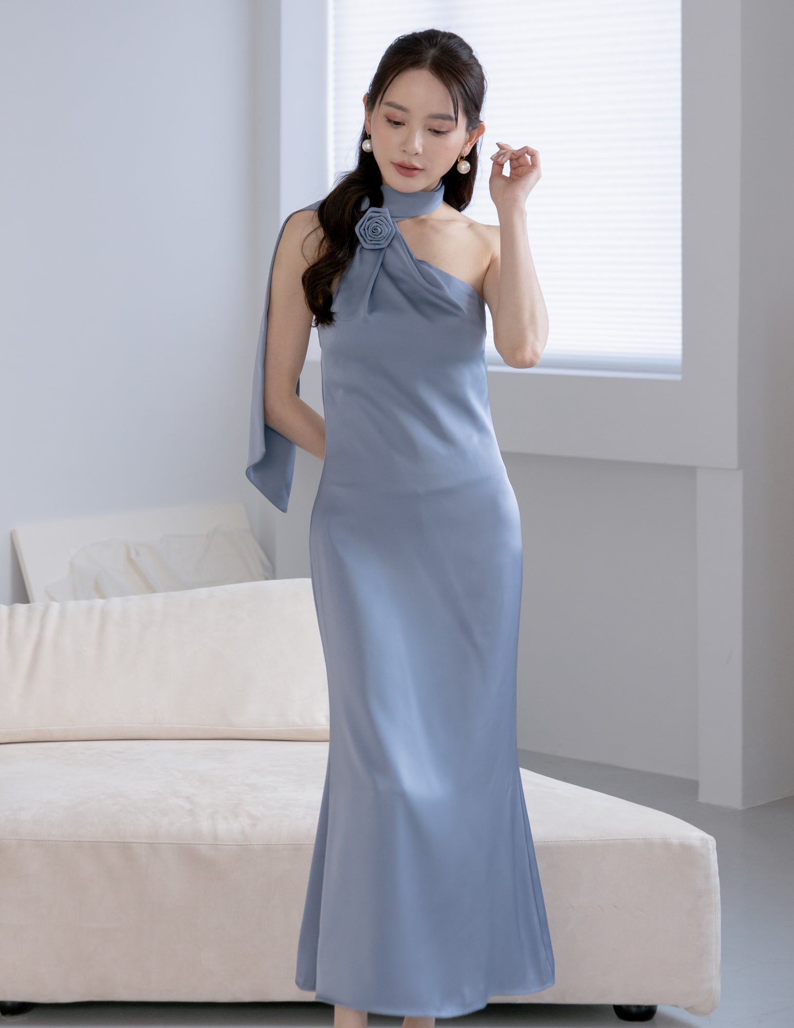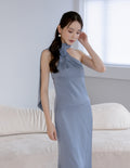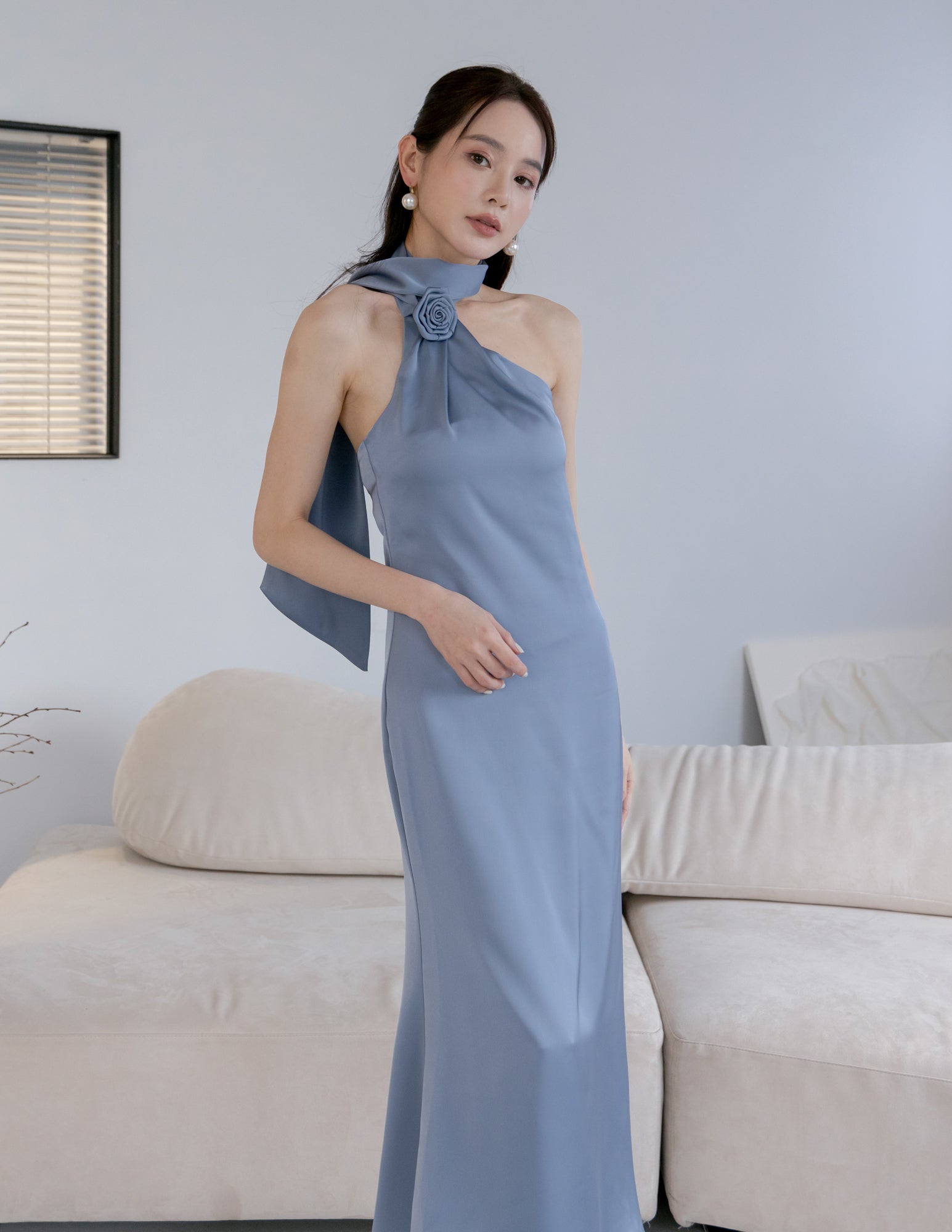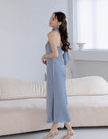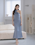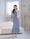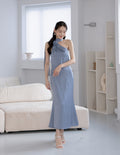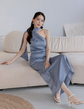 Paulina Toga Satin Dress in Blue