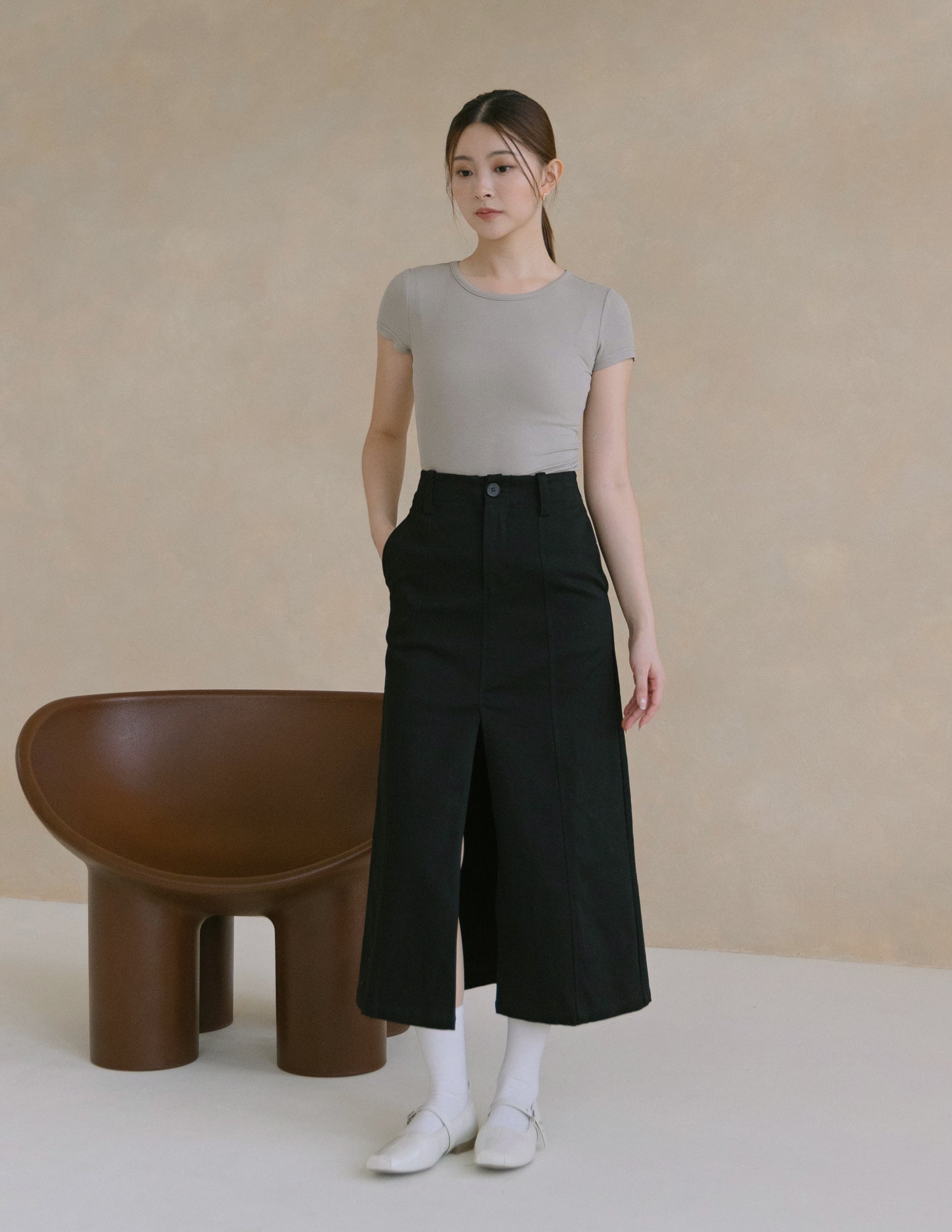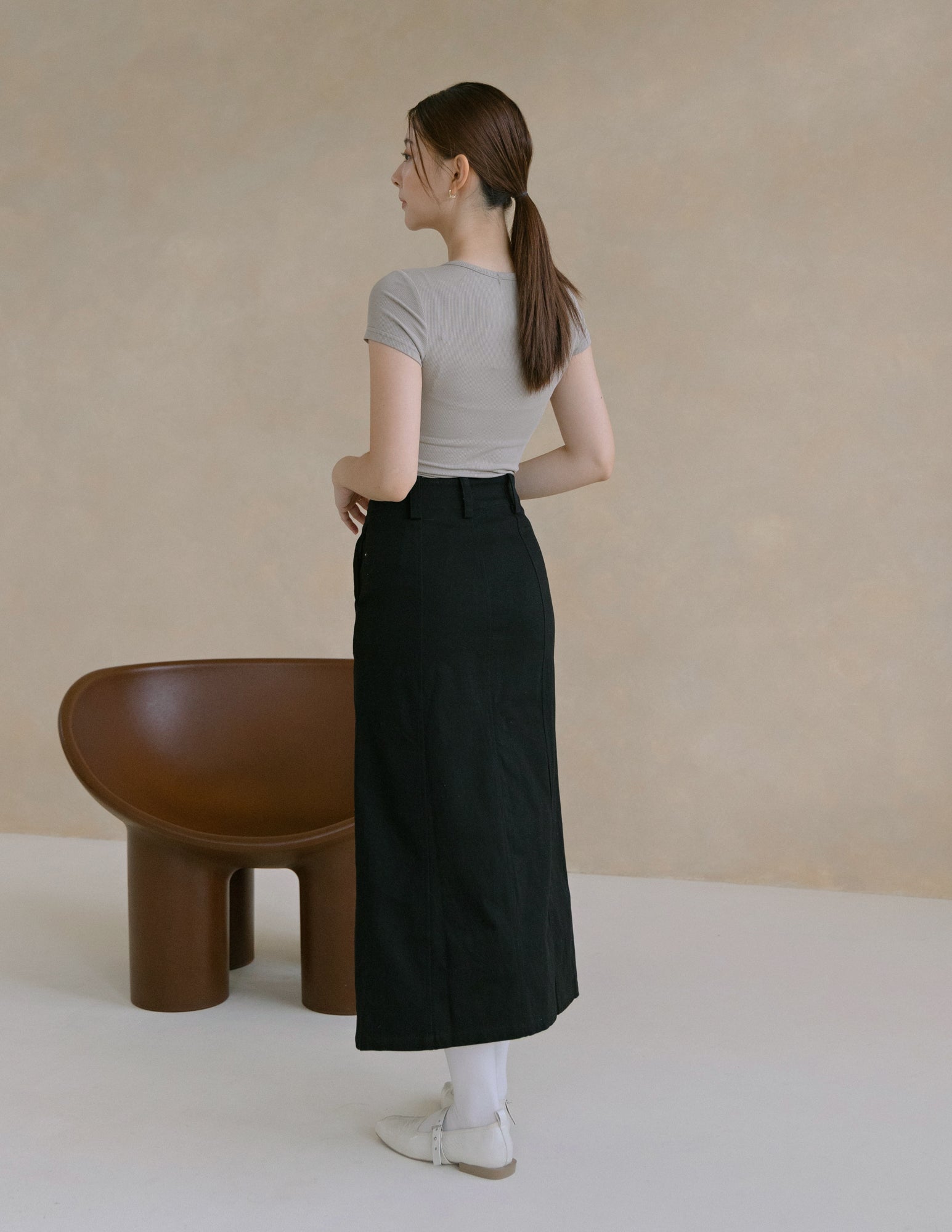 Model is 1.62m, (15.0" PTP, 11.5" Waist, 16.5" Hip), wearing size XS