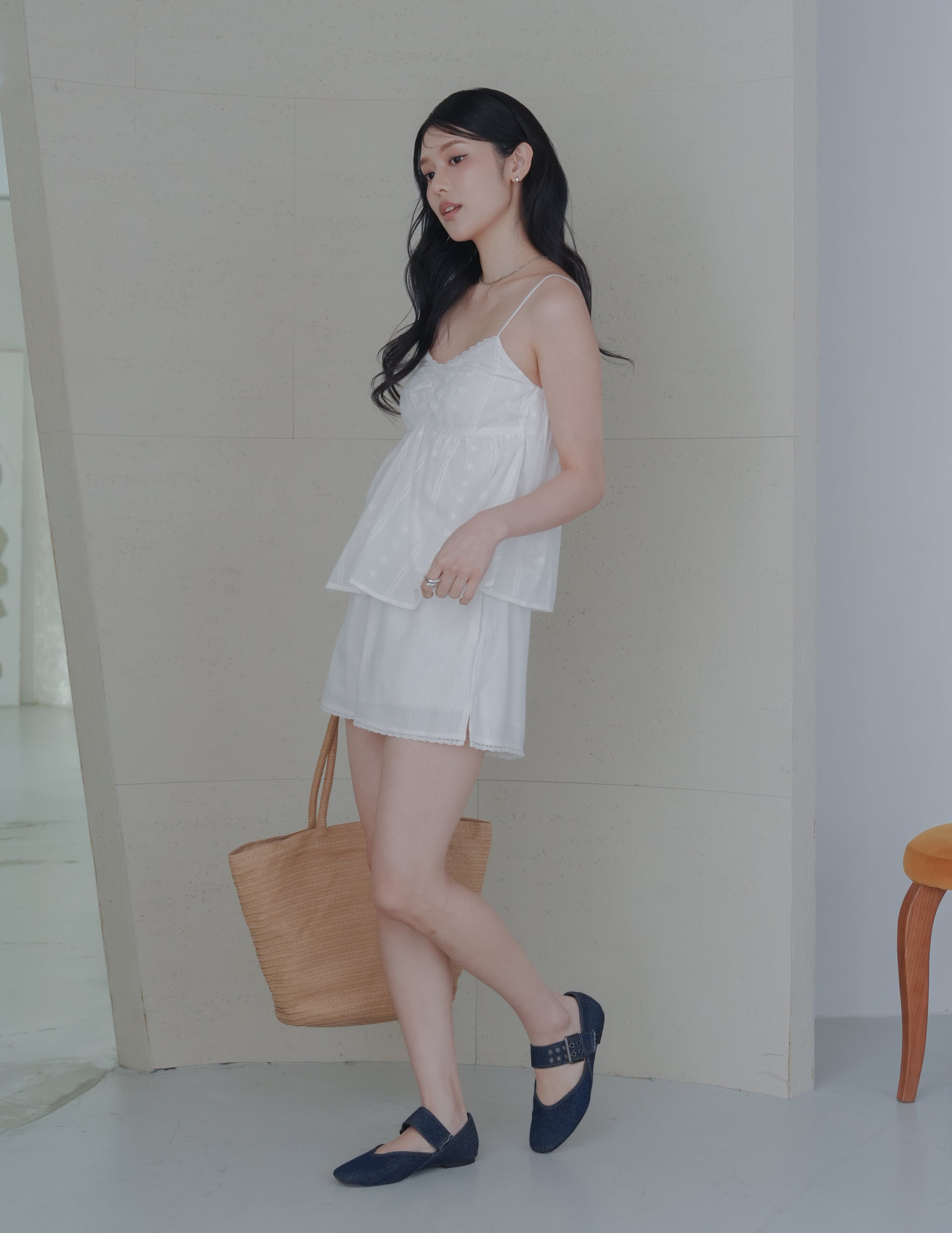 Rita Padded Babydoll Top in Eyelet