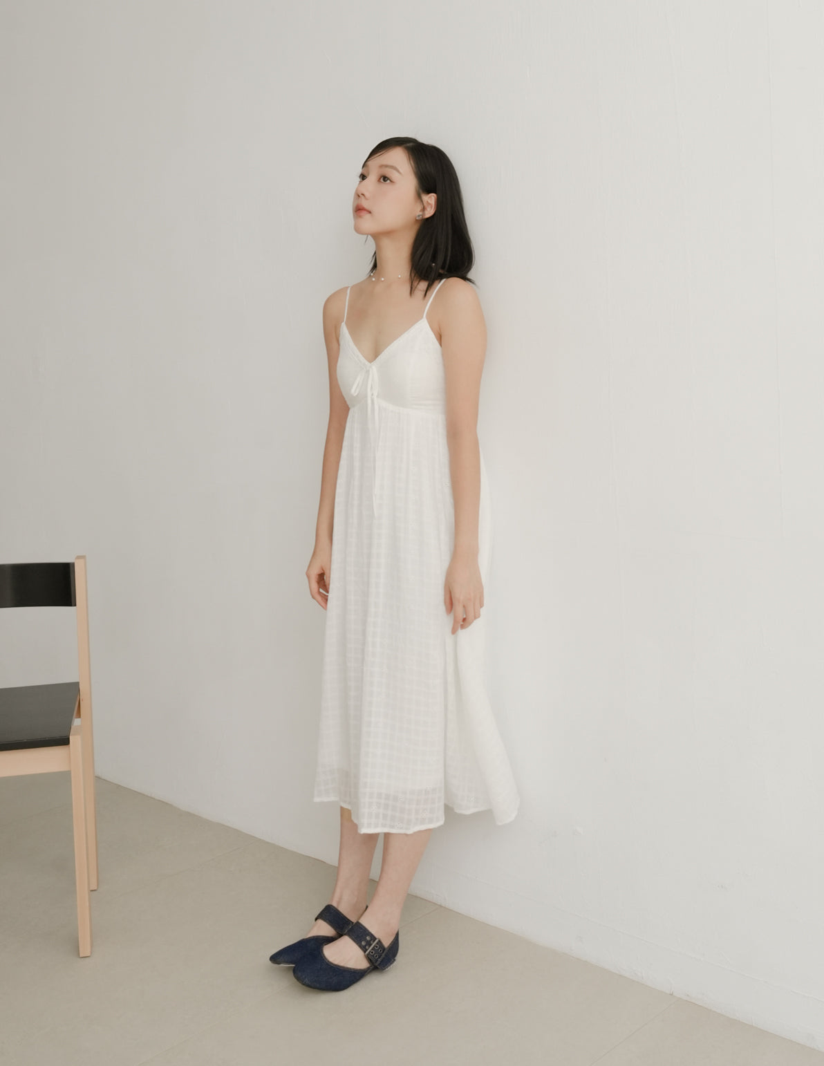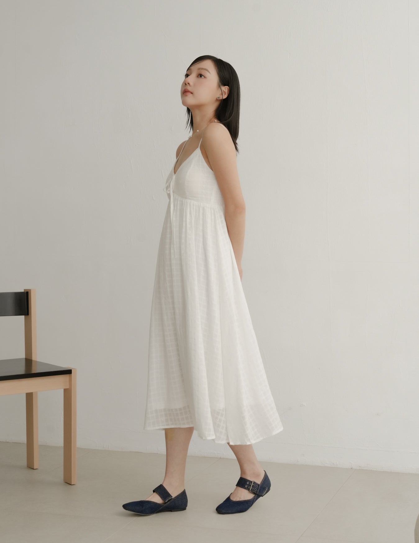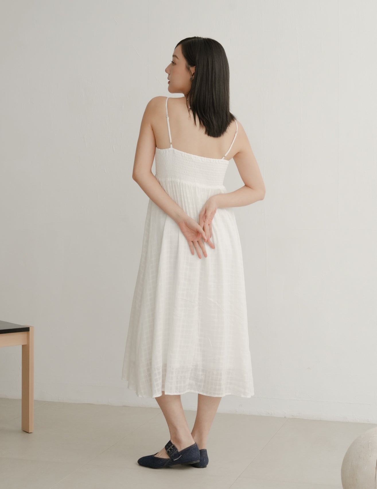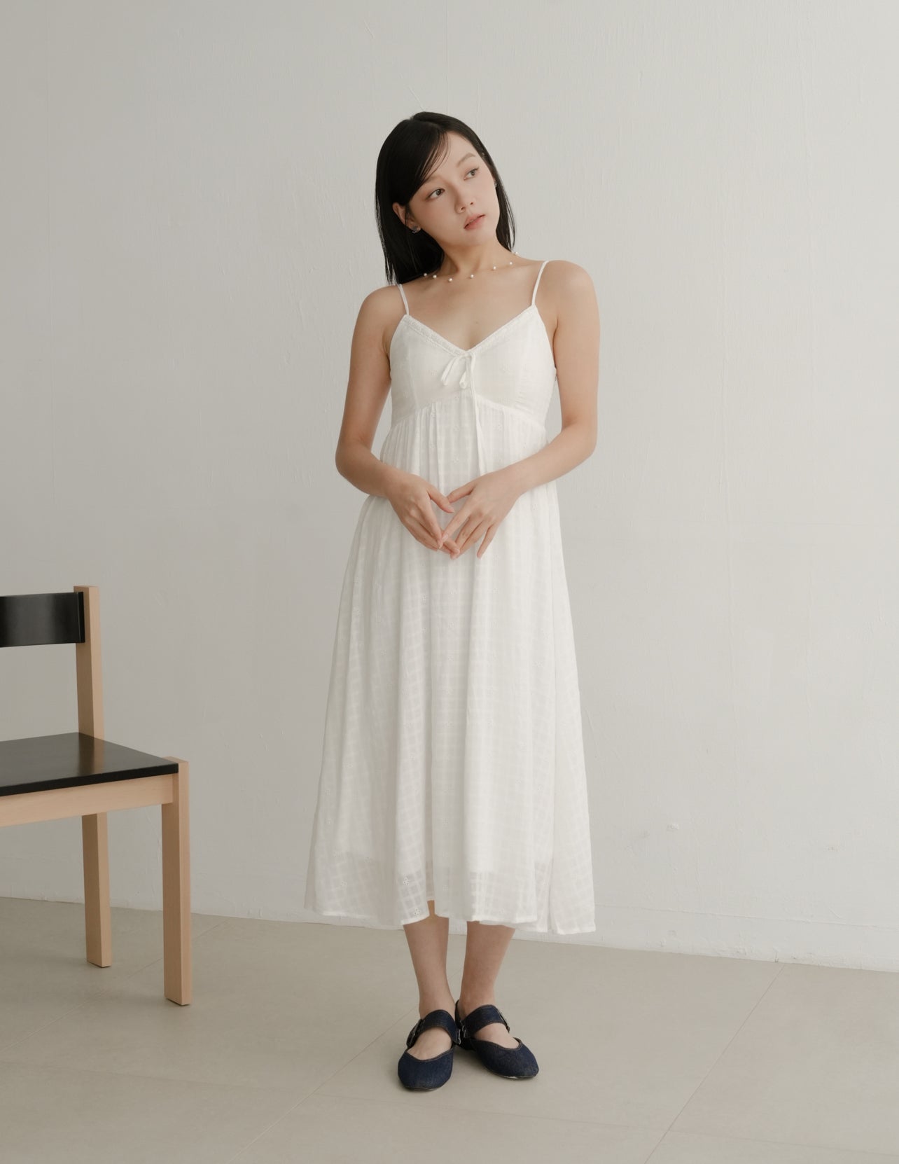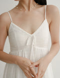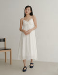 Thalia Lace Ribbon Midi Dress in Eyelet