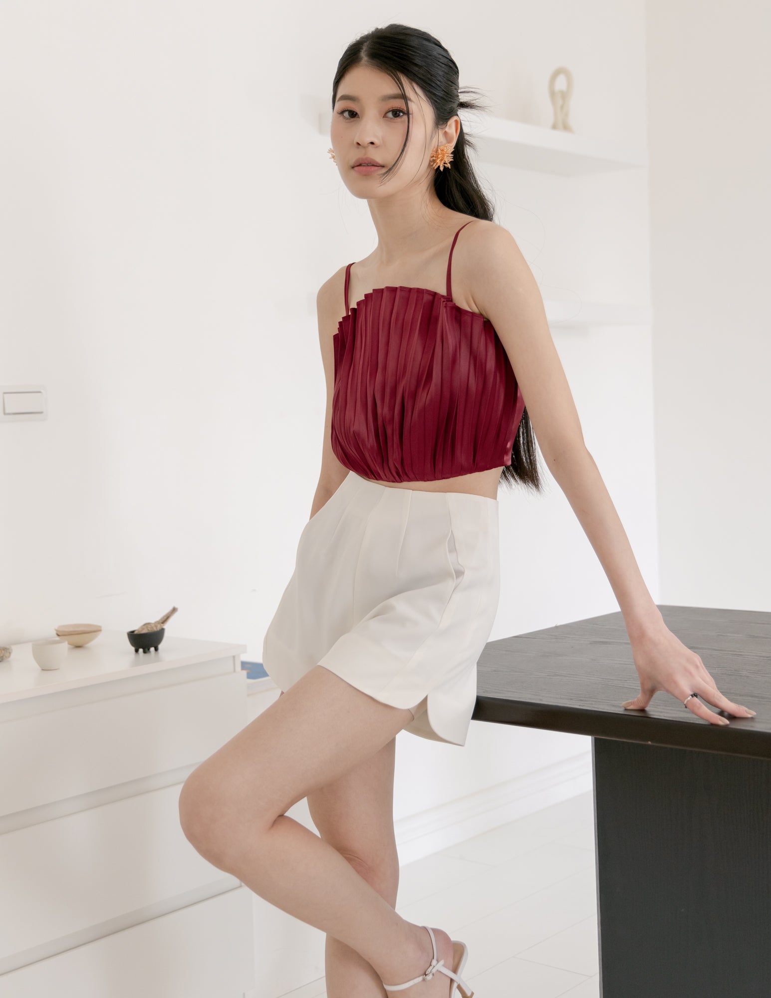 Zoya Pleated Top in Wine